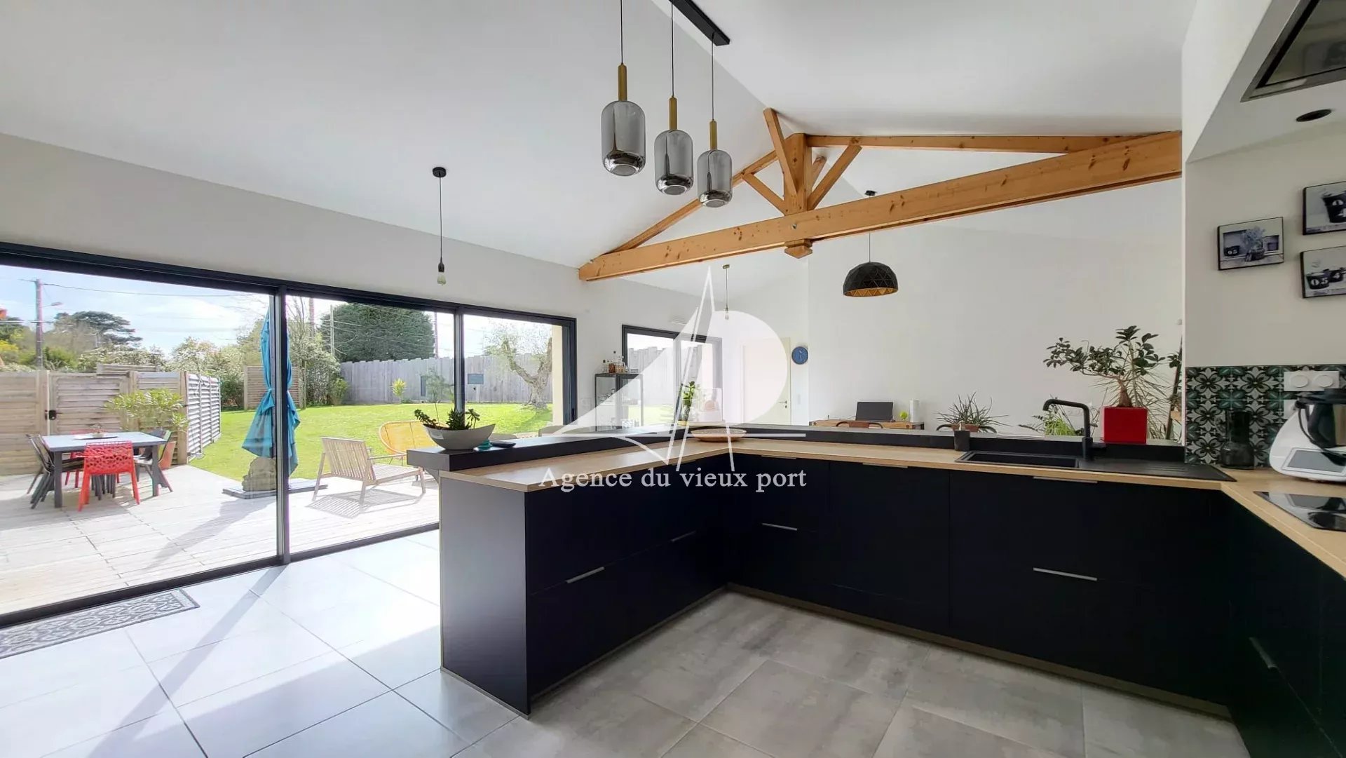 A 900 mètres du bourg et de la plage, maison d'environ 187 m2 entièrement rénovée en 2022. Elle offre à la fois le charme de l'ancien et le confort moderne.