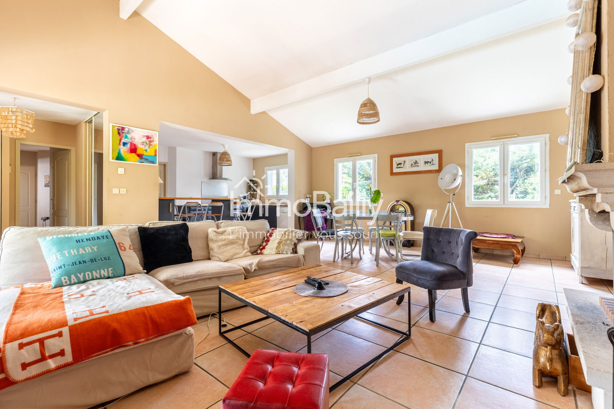 Surface de vie spacieuse de 62m2 : Séjour de 50 m2 avec double exposition et plafond cathédrale, et une cuisine ouverte entièrement équipée de 12 m2