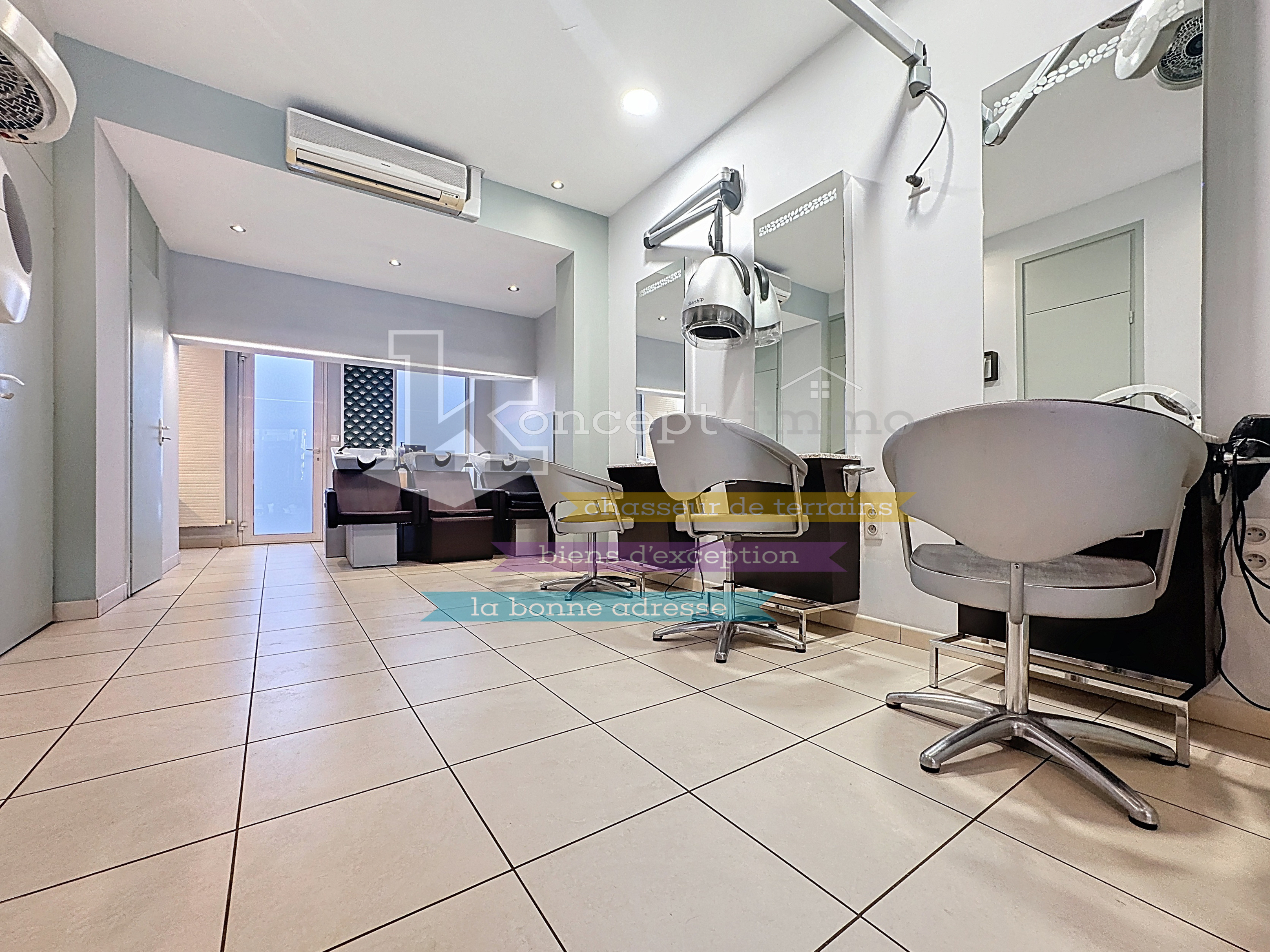 Au rez-de-chaussée, un local commercial d'environ 55,13m² : entrée avec espace accueil et boutique, un WC indépendant avec lave mains, des placards de rangements avec un espace buanderie ainsi qu'un espace technique.