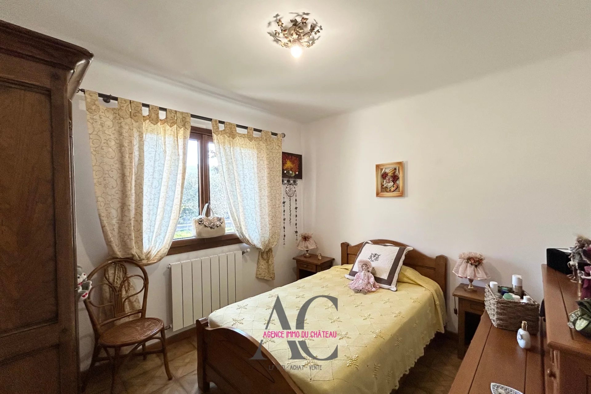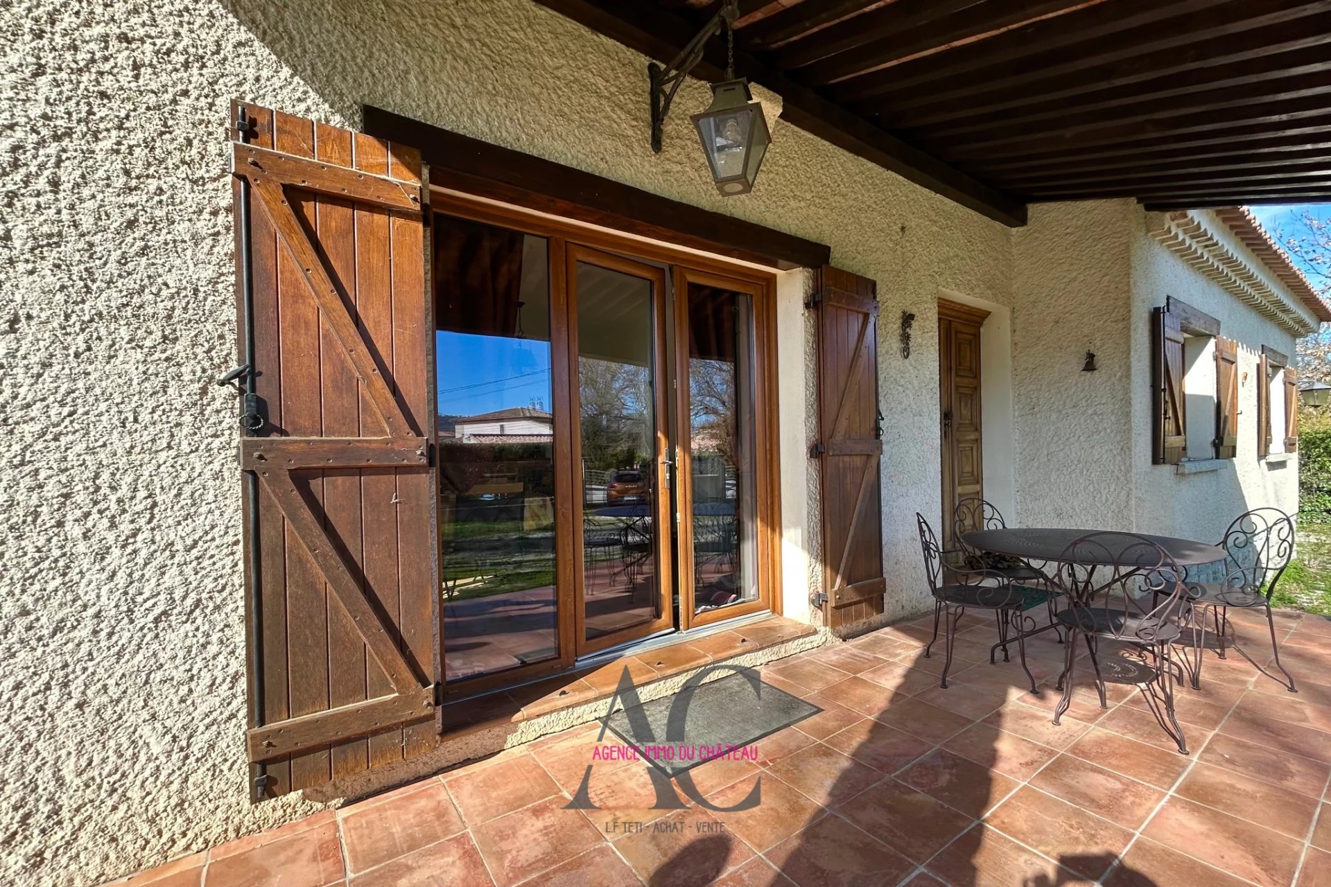 La maison se compose d’un véritable hall d’entrée, d’un séjour lumineux avec cheminée ouvrant sur une agréable terrasse couverte, ainsi que d’une cuisine indépendante aménagée et équipée, également prolongée par une terrasse couverte.