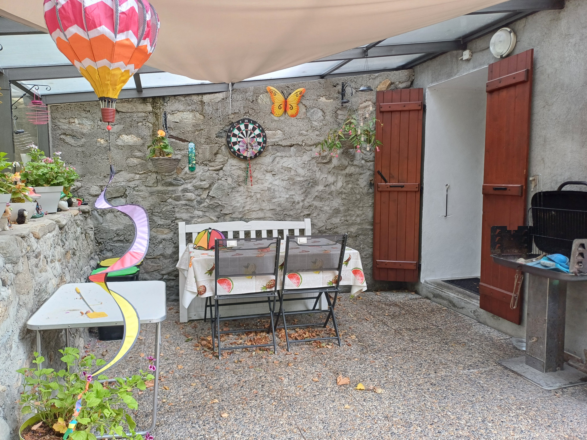 RDC : p. de vie ouverte sur coin repas extérieur. Grande cuisine équipée. 1 ch. SDB et WC. Entièrement rénové