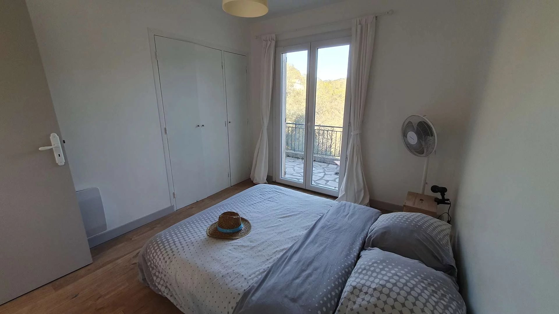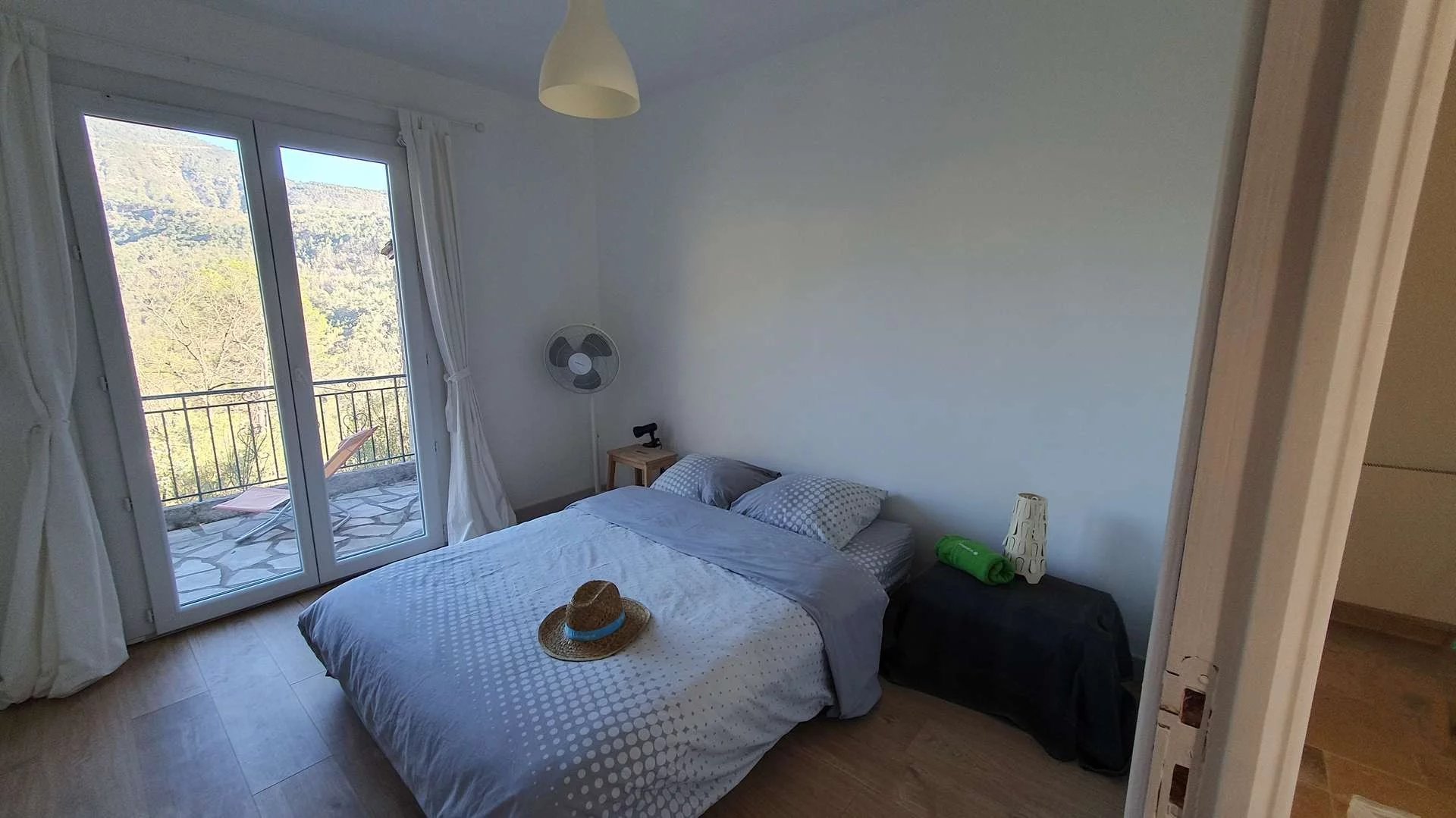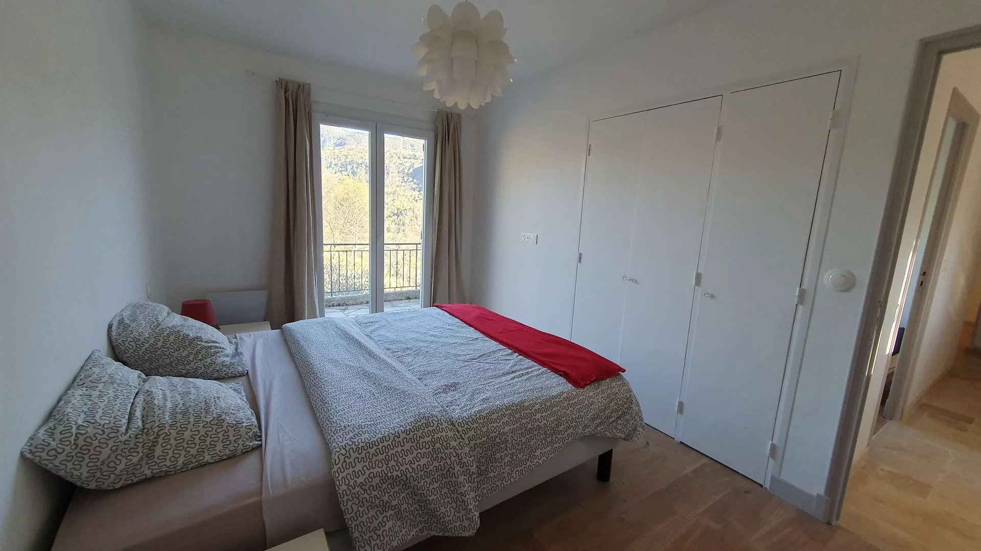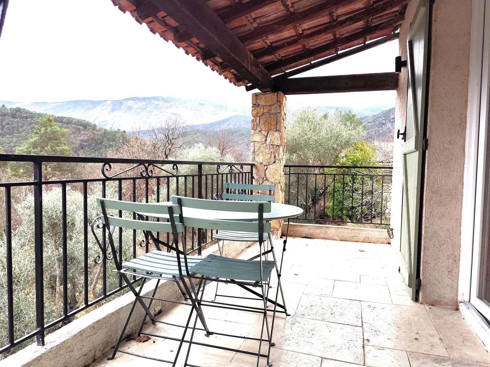 Ce bien se compose de plain-pied, d'un hall d'entrée, cuisine aménagée équipée ouverte sur le séjour et salon bénéficiant d'une cheminée avec insert et s'offrant sur une terrasse avec une vue magique, deux belles chambres bénéficiant l'accès au balcon, une salle de douche/wc.