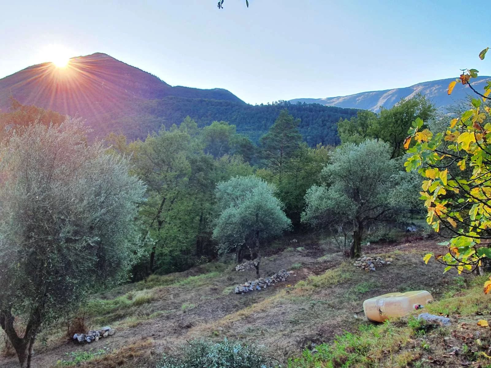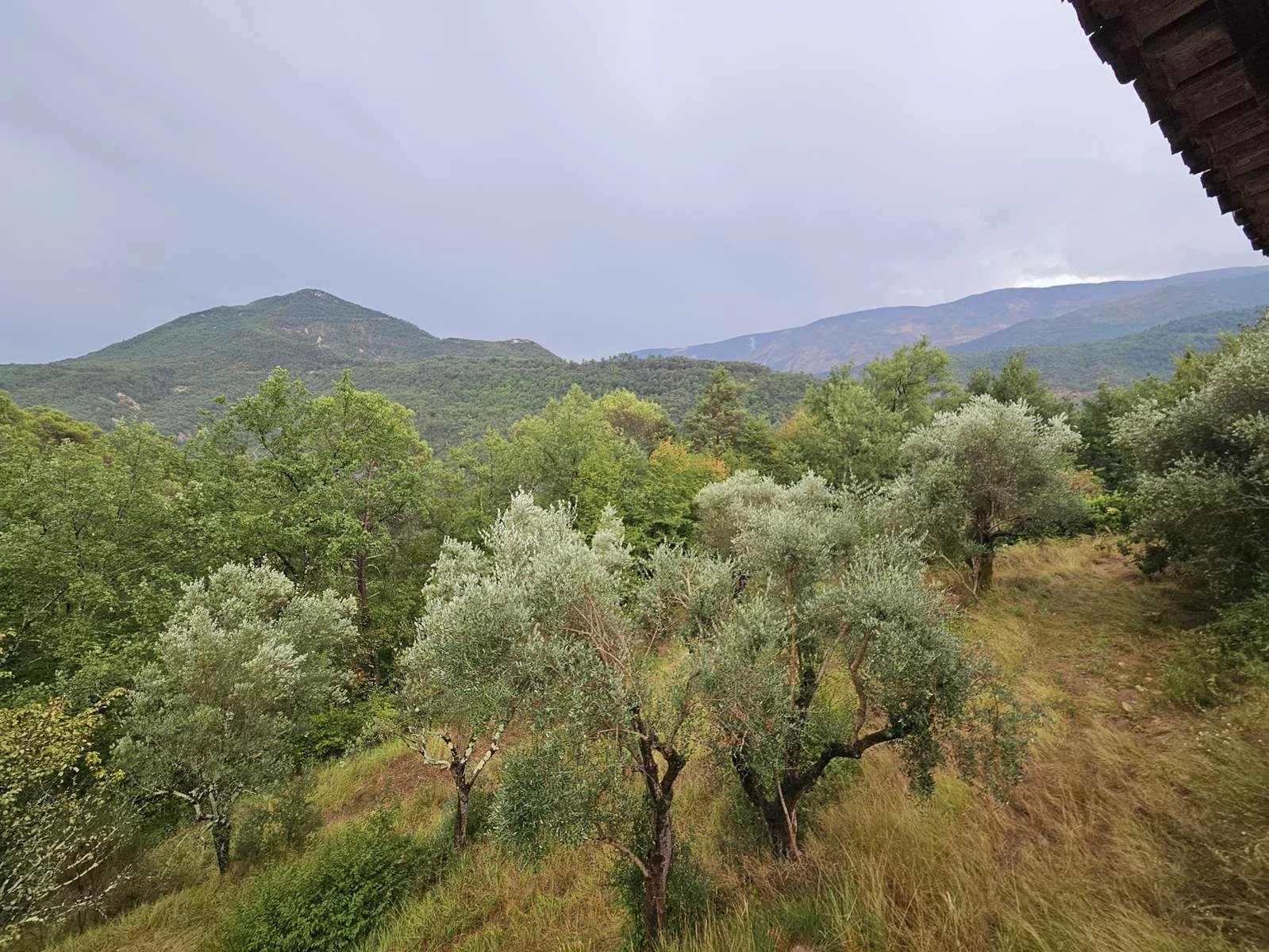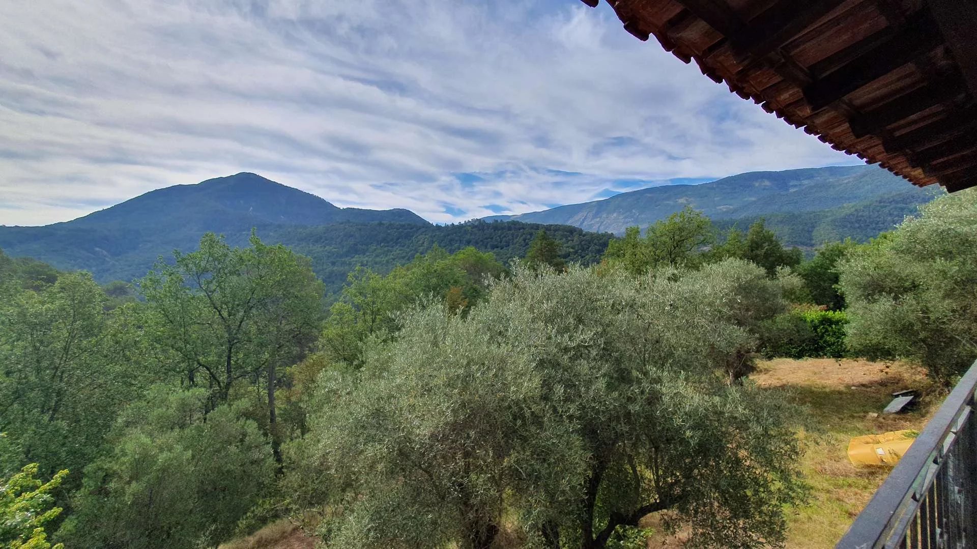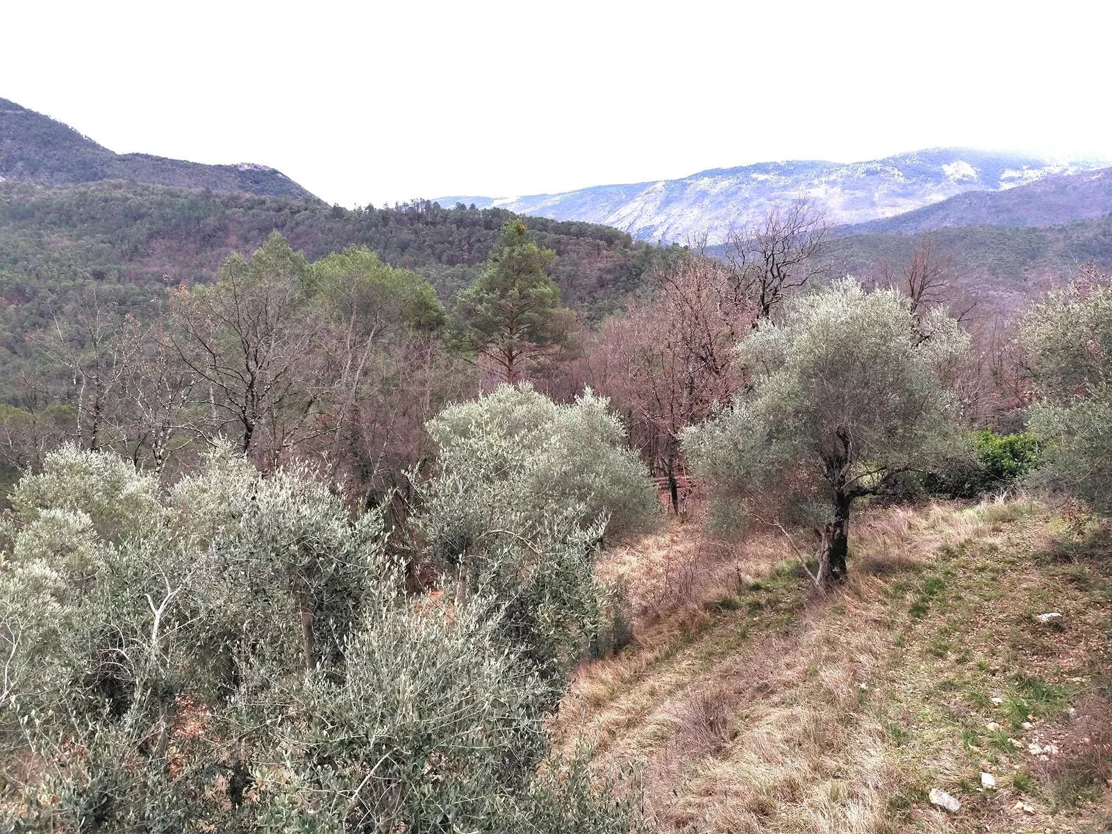 A l'extérieur vous découvrez 6945 m² de terrain arboré d'oliviers, une abri voiture, places de parking privées devant l'entrée de la propriété.
