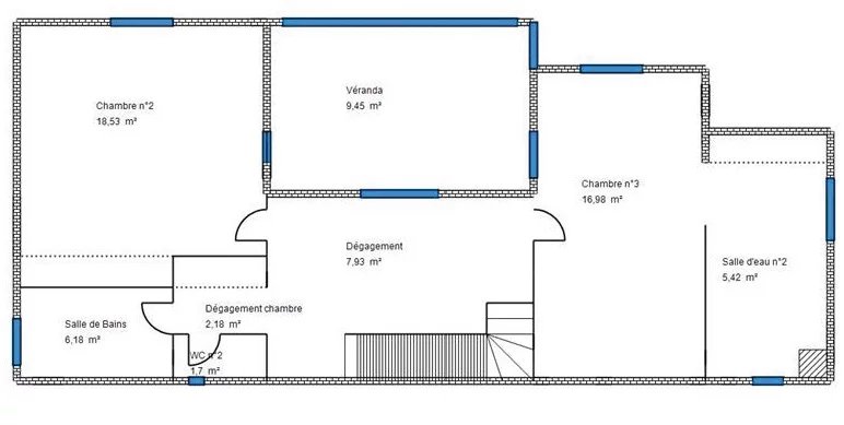 A l'étage, on trouve une chambre avec une salle d'eau, et une seconde avec salle de bain un espace bureau, une véranda.