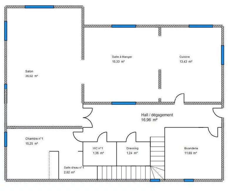 - Au rez de chaussée : un vaste hall d'entrée avec dressing, une buanderie, une cuisine indépendante, une salle à manger, un vaste salon avec un grand espace bibliothèque et cheminée, le tout donnant accès à une belle terasse, une chambre de maître avec salle d'eau et toilettes.