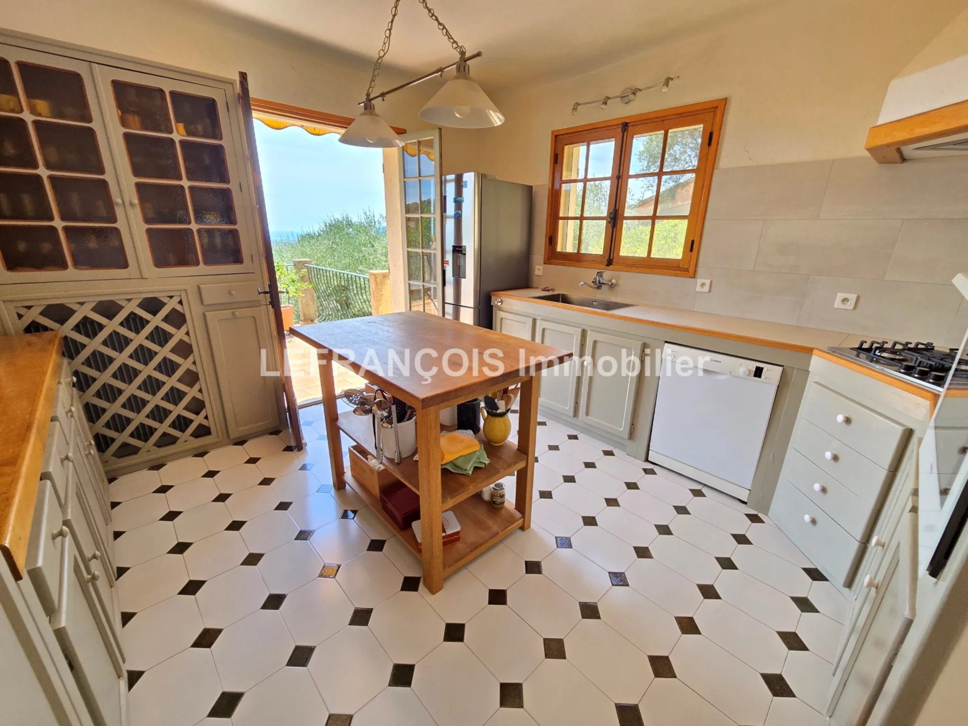 Implantée sur une ancienne oliveraie avec de magnifiques restanques de 1286m2 au bout d'une impasse, très jolie villa de 173m2 plus 52m2 d'annexes proposant