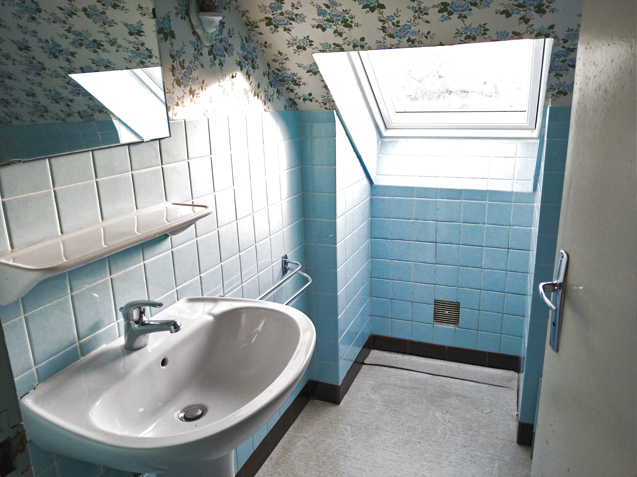 A l'étage, trois chambres de moins de 9 m2 avec posibillité de faire 2 chambres de 10 m2, une salle de bains et un WC.