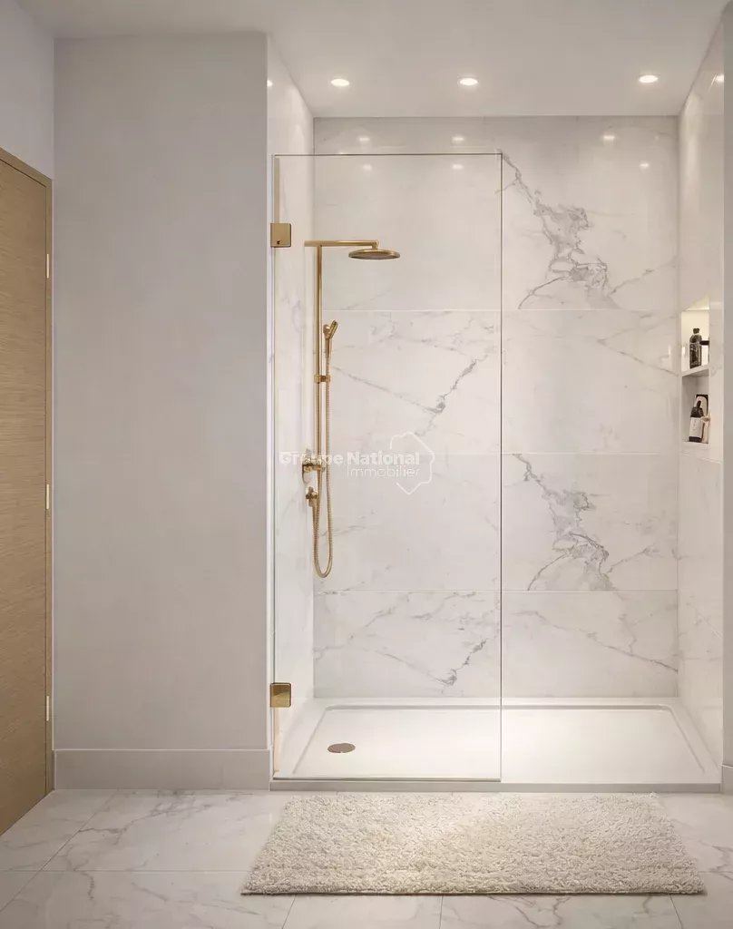 Ce duplex allie parfaitement confort, élégance et prestations haut de gamme : menuiseries bois de type patrimoine avec double vitrage, excellente isolation phonique, sols en béton ciré, climatisation réversible gainable silencieuse avec thermostats d’ambiance, accès sécurisé par badge et jardin privatif.