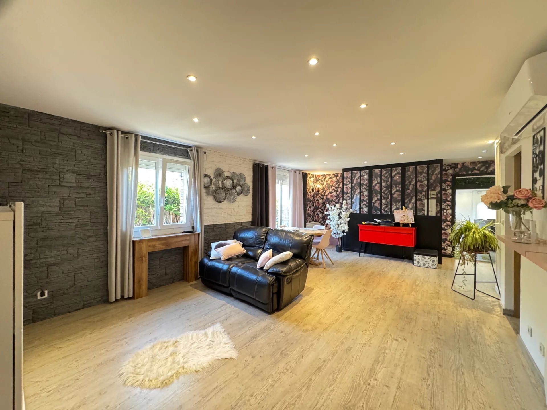 A VENDRE Entre ROUEN EST ET LES AUTHIEUX PORT SAINT OUEN - Dans un environnement agréable, PAVILLON Individuel vivable de plain-pied de 167m², Habitable sans frais et offrant de très beaux volumes, comprenant cuisine aménagée et équipée, salle à manger de 30 m2, salon cathédrale de 50 m2, 3 chambres dont 1 avec dressing (chambre supplémentaire possible), bureau (bel espace pour télé travail), 2 salles de douches, chauffage PAC, Buanderie, garage 2 voitures + parking terrasse, l'ensemble sur une parcelle de terrain de 1121 m2. BELLES PRESTATIONS.
