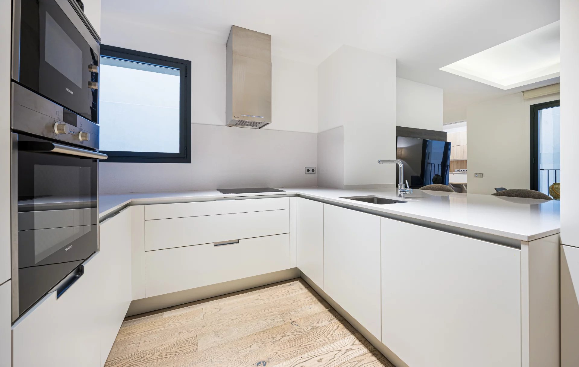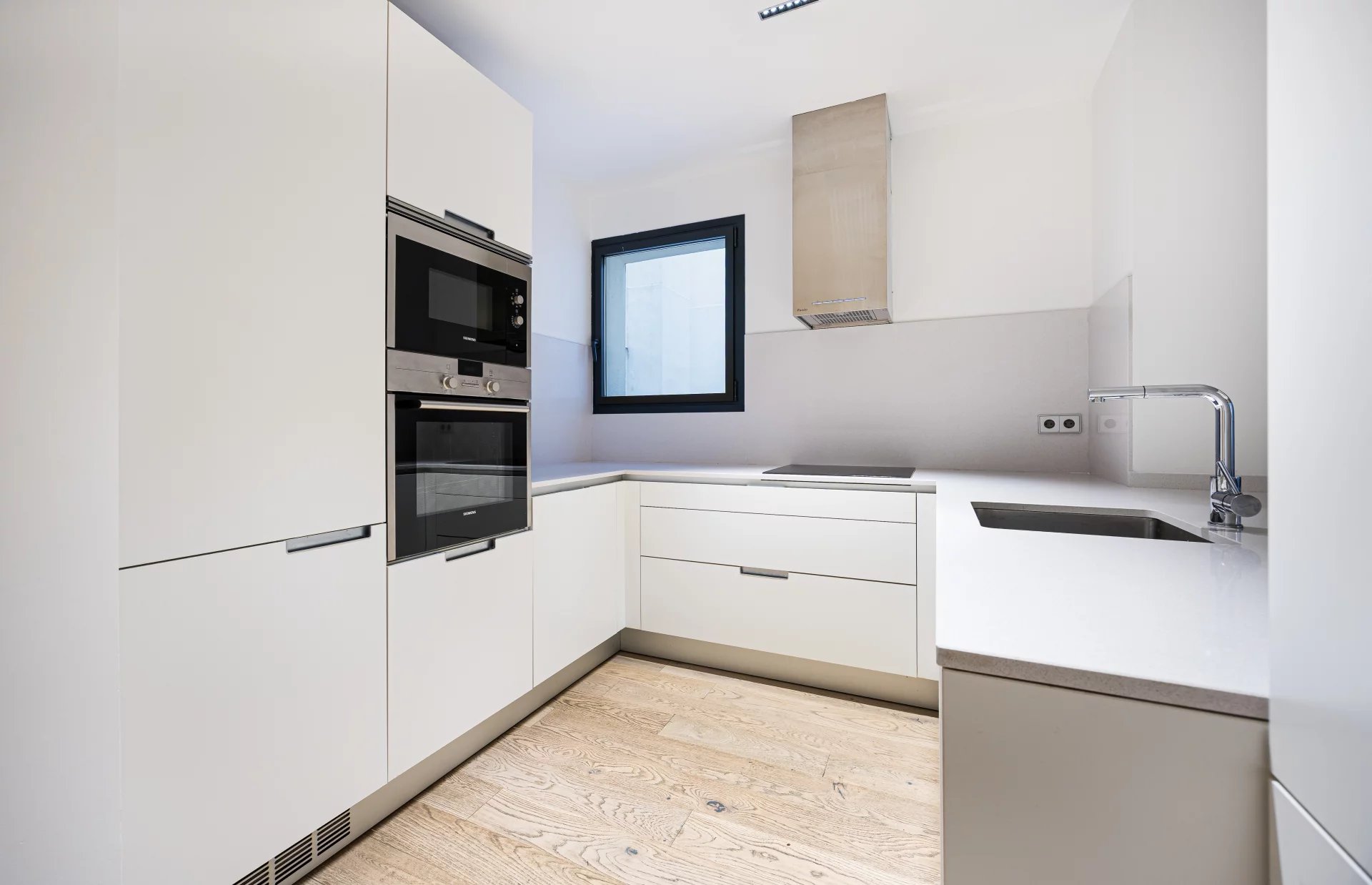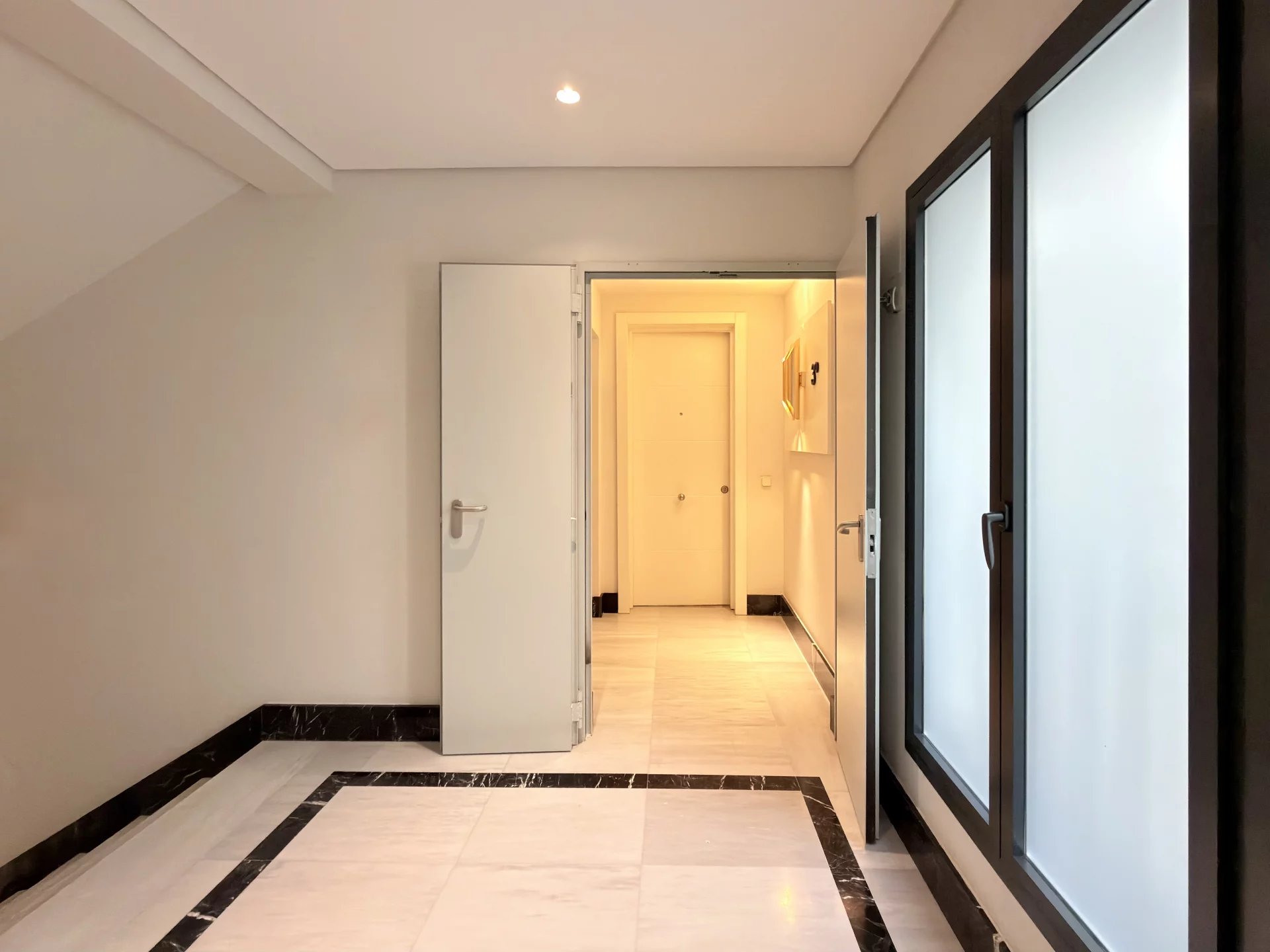 The home features a comfortable living‑dining area with contemporary open‑plan kitchen, high‑quality finishes and all the comfort of a modern building. Residents enjoy outstanding communal areas—top‑notch party room, fully equipped gym, 24‑hour security and meticulously maintained shared spaces—delivering a true high‑end living experience in Madrid’s prime Golden Mile.