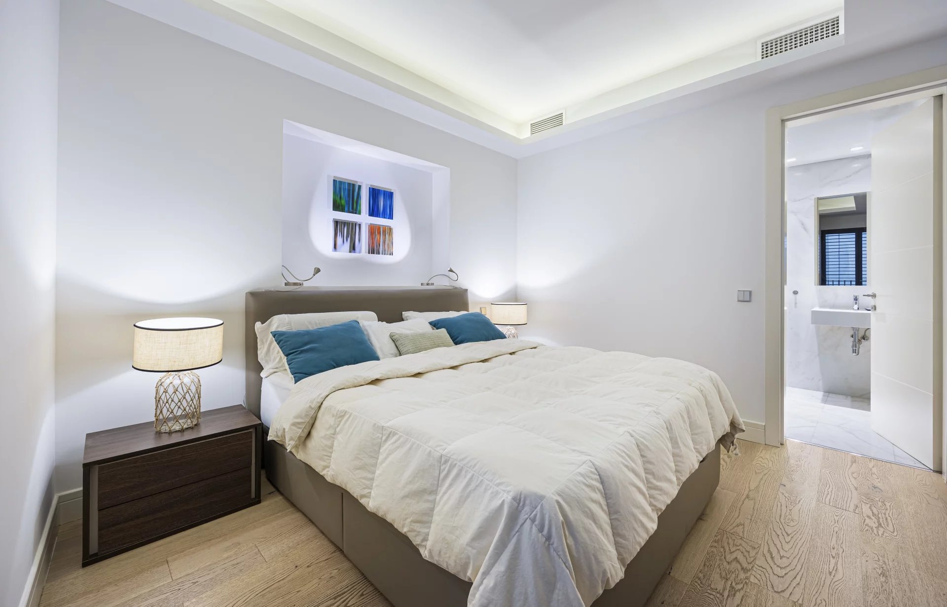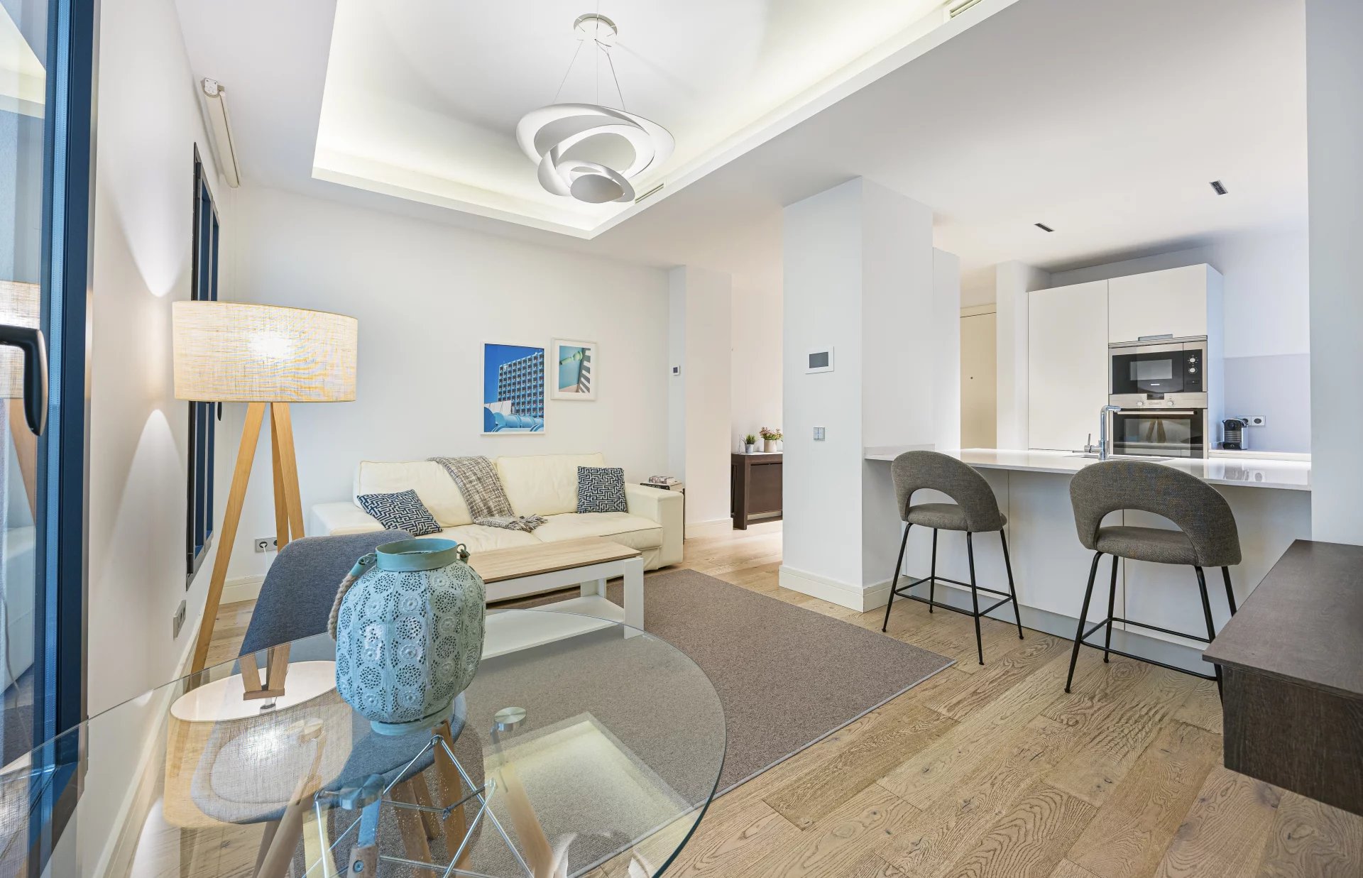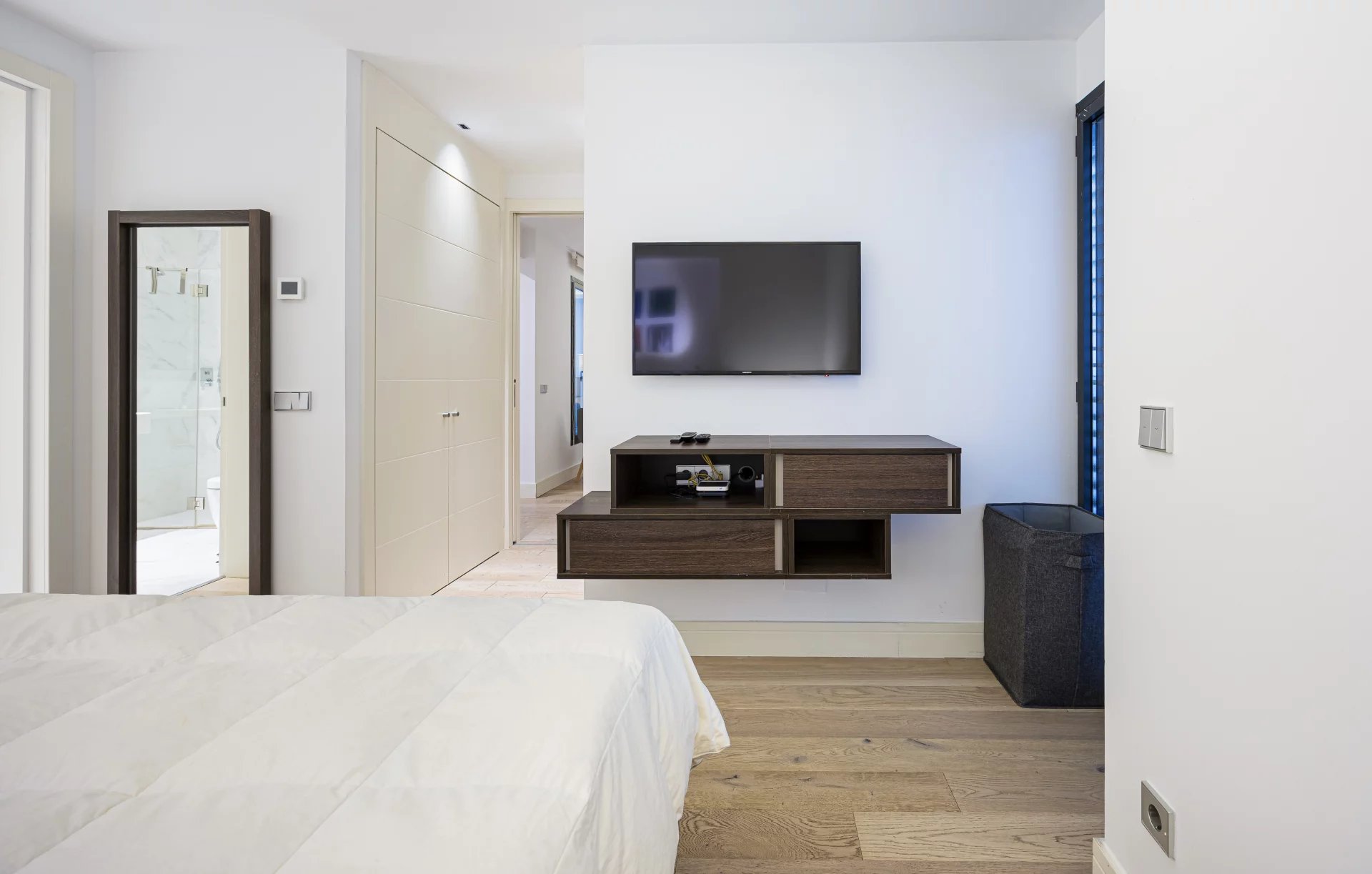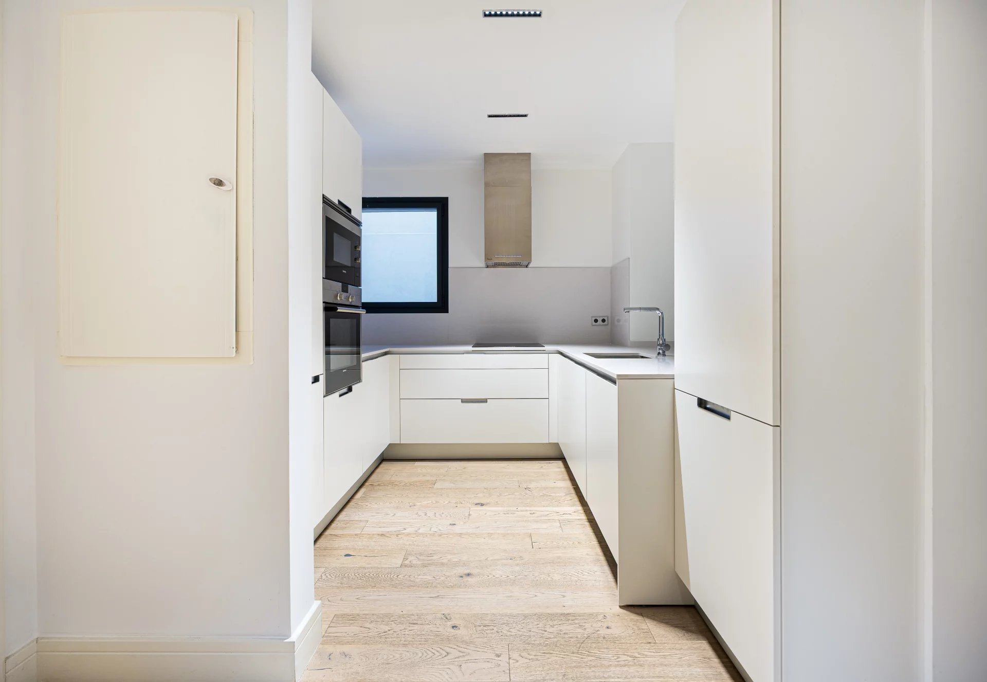 The home features a comfortable living‑dining area with contemporary open‑plan kitchen, high‑quality finishes and all the comfort of a modern building. Residents enjoy outstanding communal areas—top‑notch party room, fully equipped gym, 24‑hour security and meticulously maintained shared spaces—delivering a true high‑end living experience in Madrid’s prime Golden Mile.