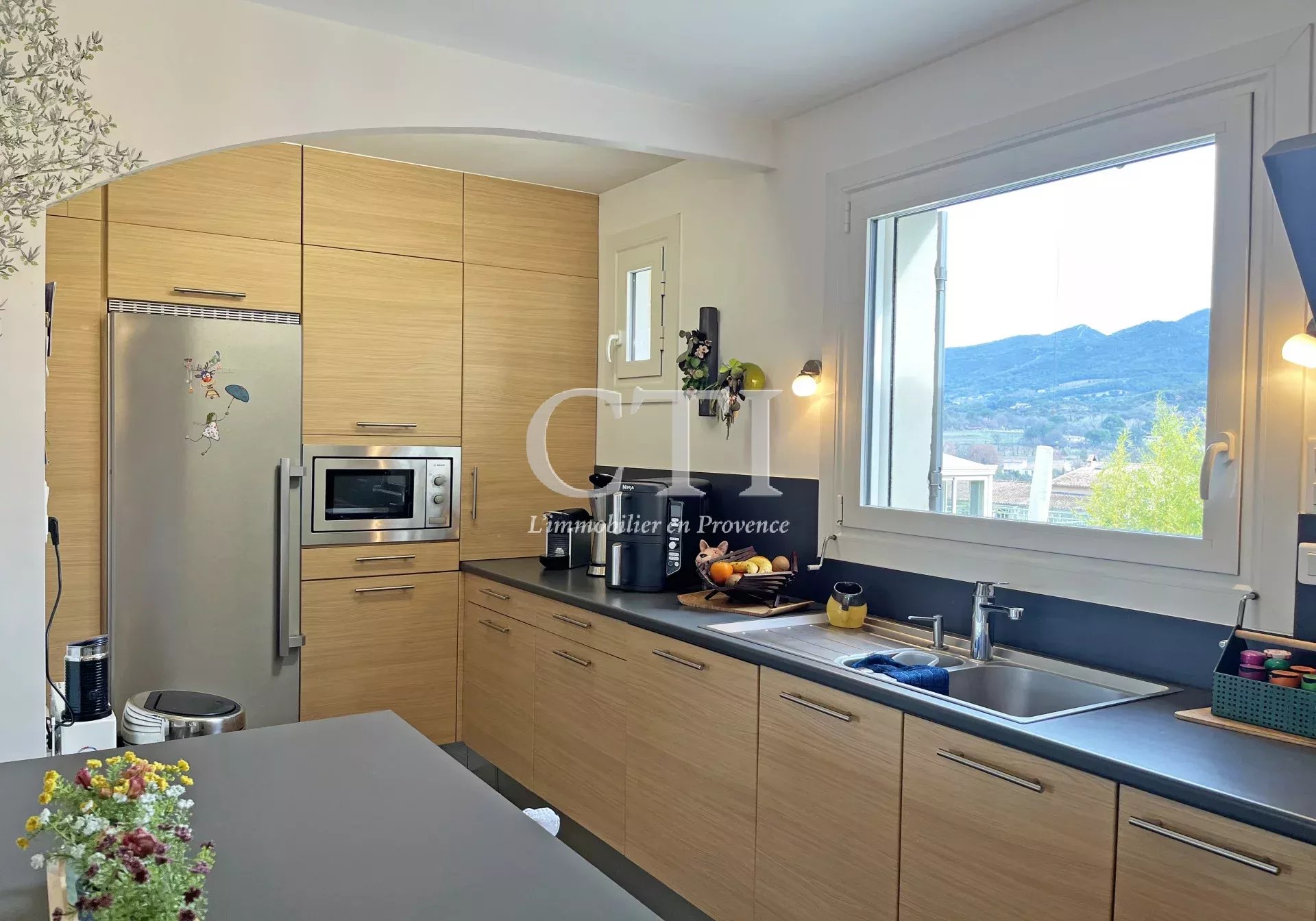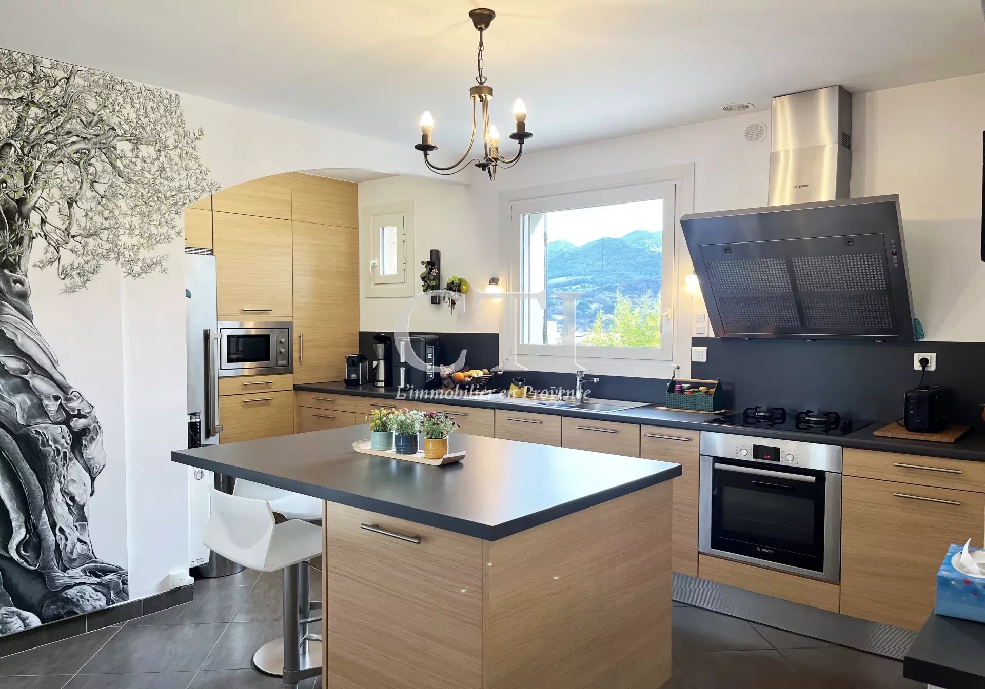 A 15 minutes de Vaison-La-Romaine. Dans un environnement privilégié à proximité des commerces à pied, à l’abri des regards et baignée de lumière, cette élégante propriété en pierre d’env. 170 m² habitables séduit immédiatement par son authenticité, son raffinement et sa situation dominante offrant une vue panoramique imprenable sur les montagnes environnantes.