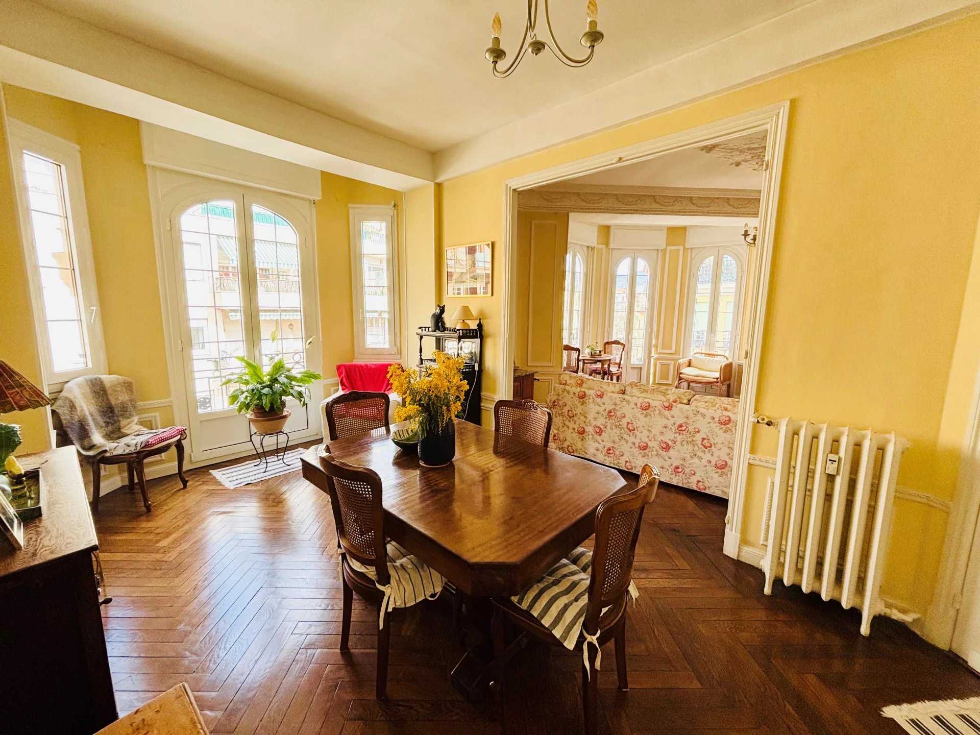 L'appartement nécessite quelques travaux, les Parquets d'origine, sont en bon état, Tomettes à rafraichir, Granito d'origine à poncer et cristalliser. Redistribution possible. Les peintures sont à refaire, il y a des très belles moulures (murs et plafonds) parfaitement conservées. Double vitrage dans tout l'appartement. Cuisine et Salle d'eau à moderniser. Climatisation réversible. Appartement rare sur le secteur qui dispose de nombreux atouts! Charme, Cachet, Lumière, Calme, Immeuble en parfait état, le tout au pied des commerces, du Marché de la Libération et du Tram. Exclusivité C&B