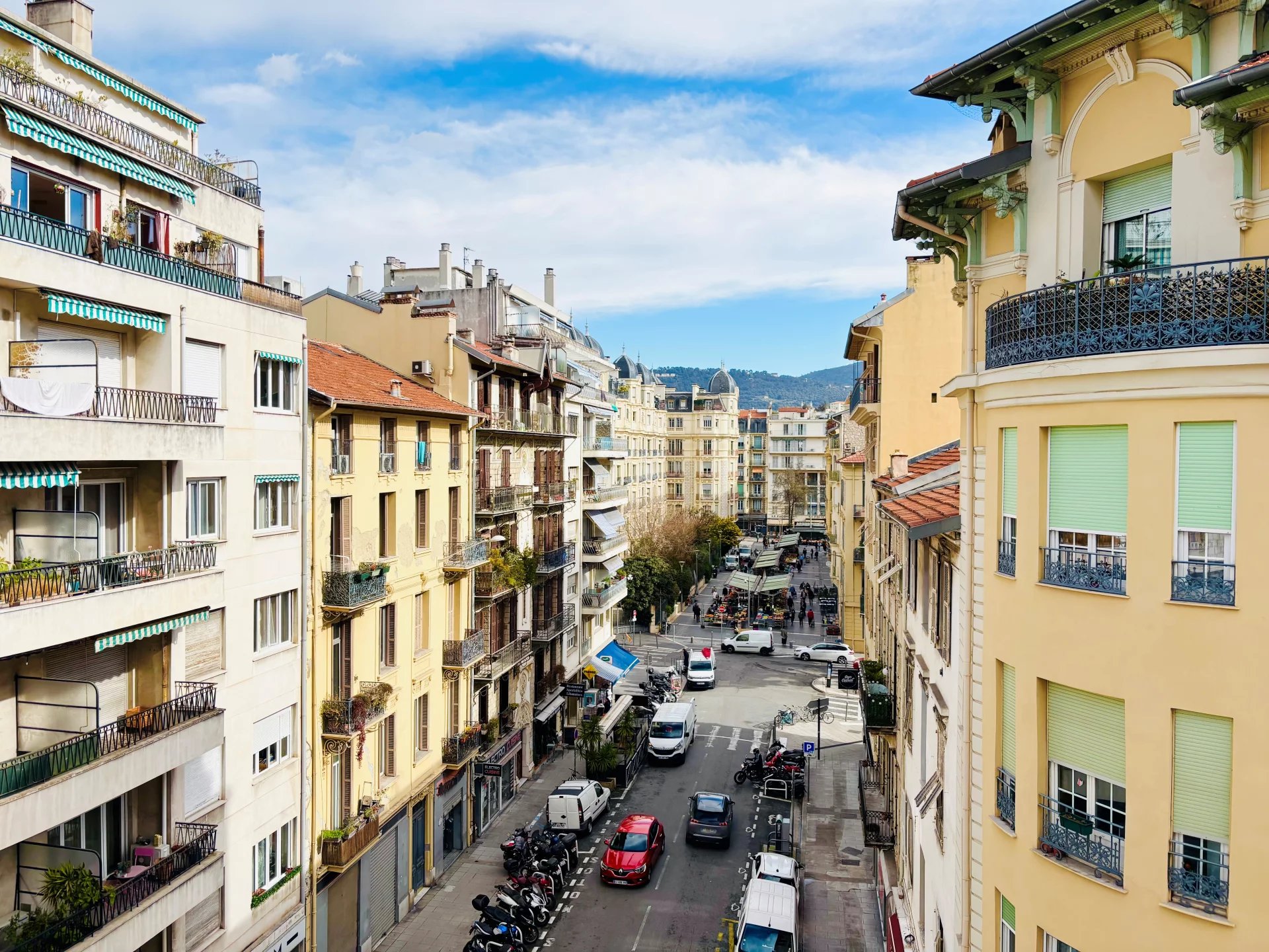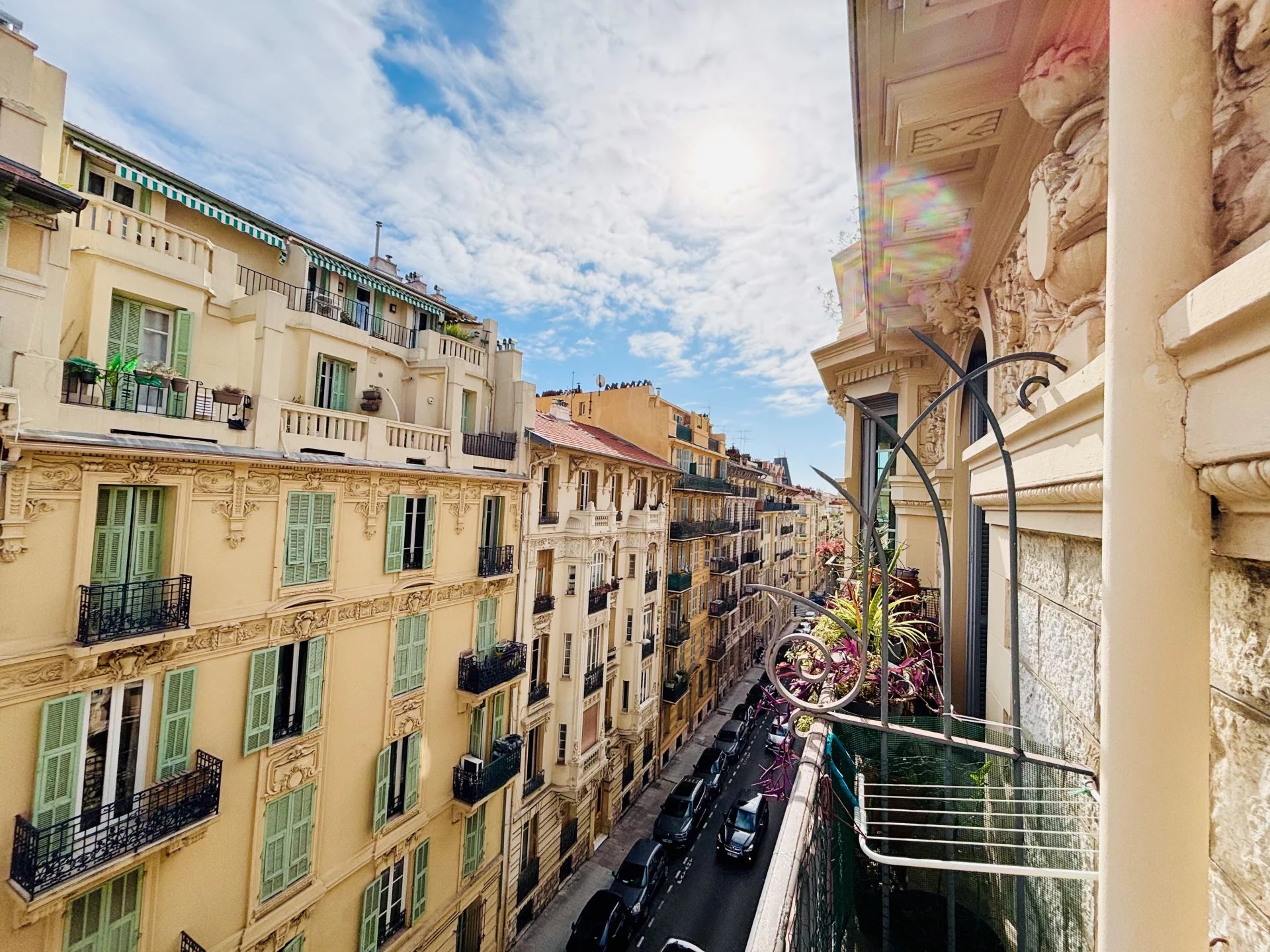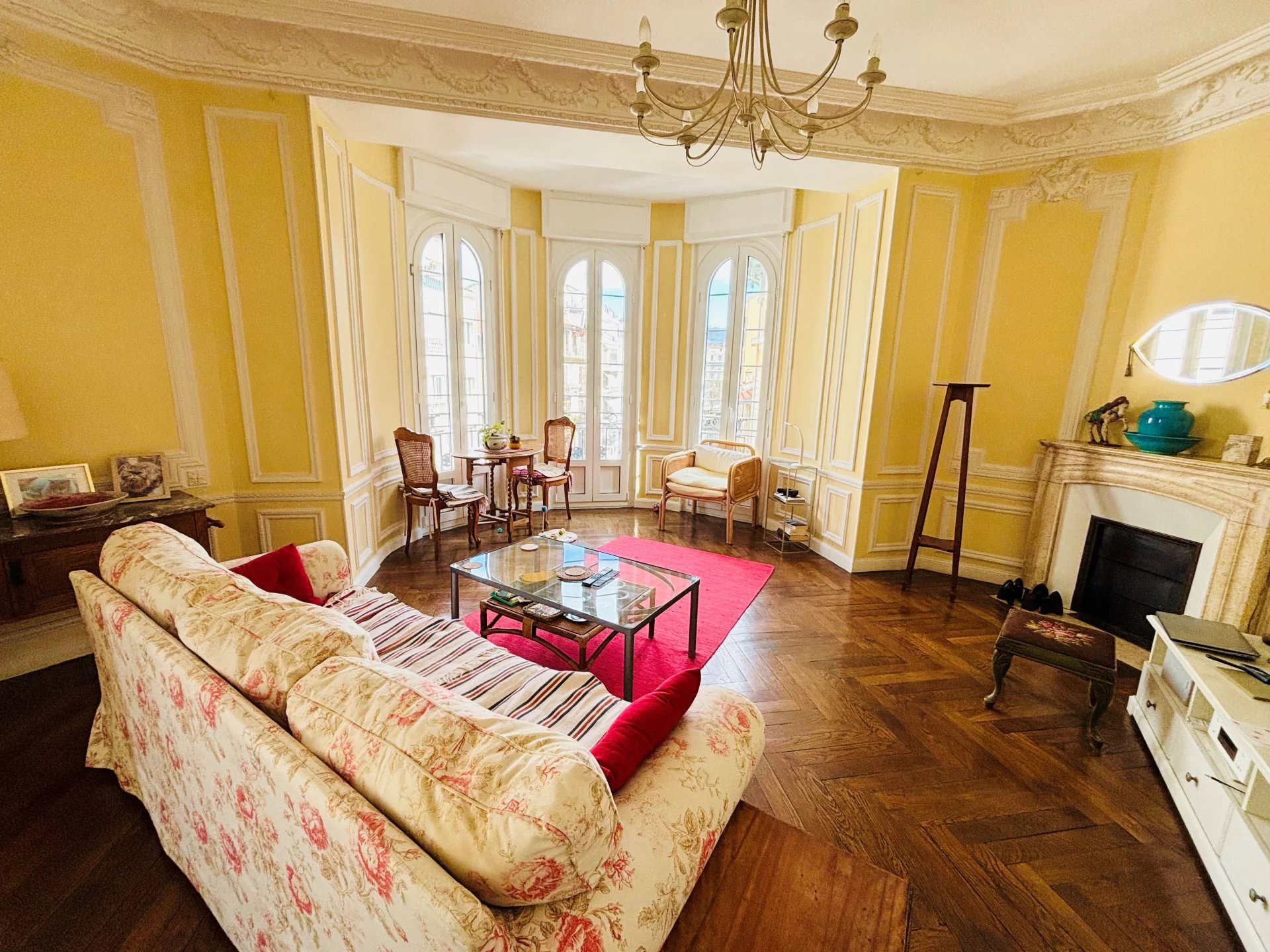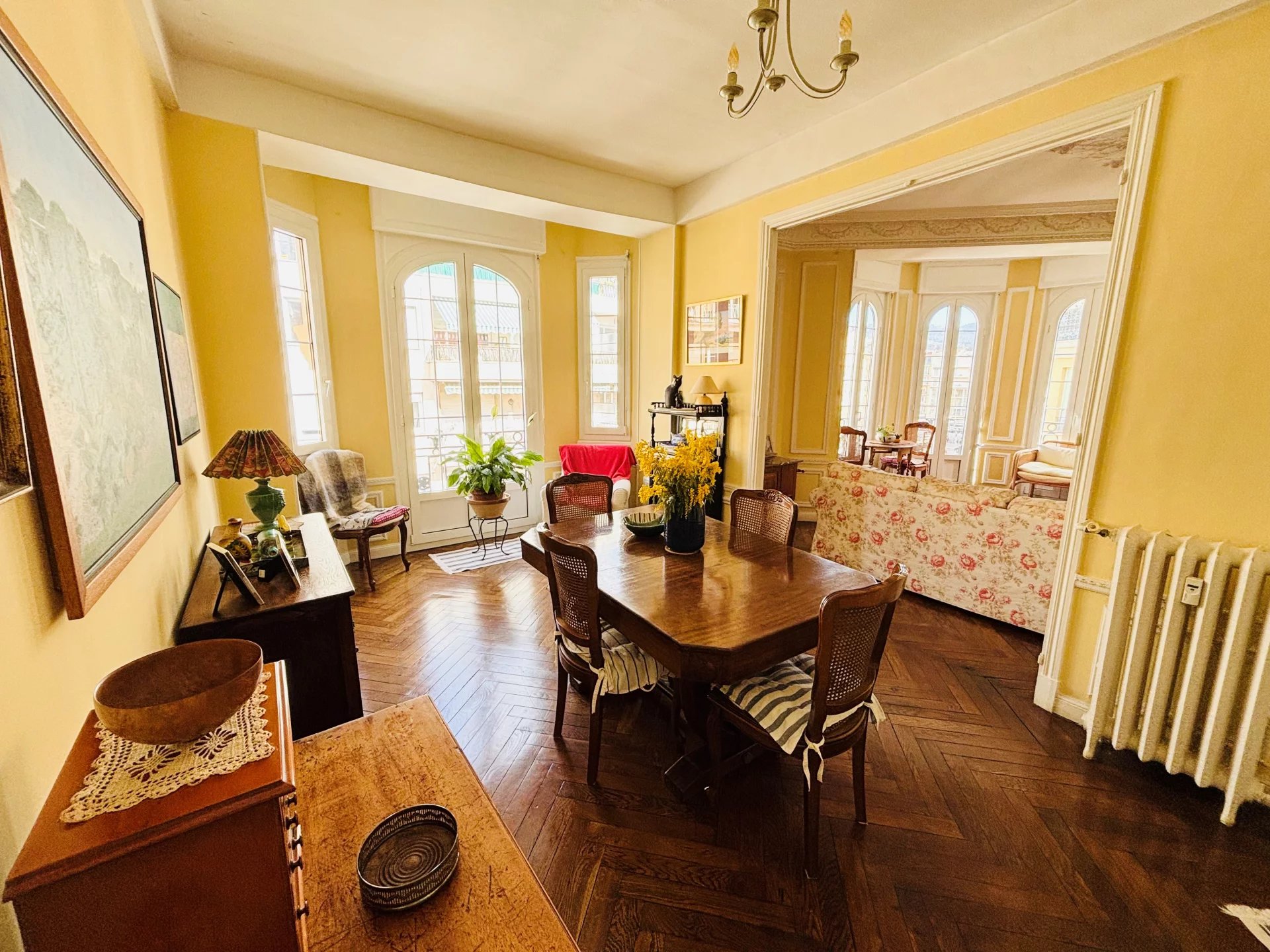 NICE CENTRE/MALAUSSENA : Appartement situé au quatrième étage d'un beau Palais Bourgeois, avec Ascenseur. D'une superficie de 107.13m².Il se compose d’une Entrée desservant les espaces, à droite un Dressing aménagé, et une spacieuse Chambre ouvrant sur Balcon Est, puis une seconde Chambre avec Bow-windows (Est), un Séjour/Salle à manger d'angle avec cheminée et Bow-windows, offrant une vue jolie dégagée sur les collines et une partie du Marché de la Libération. Enfin, une Cuisine indépendante (10m2), des WC individuels et une Salle d'eau, ces 2 dernières pièces ouvrent sur un puits de lumière.