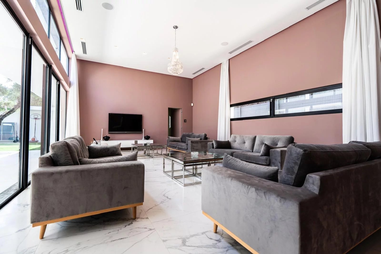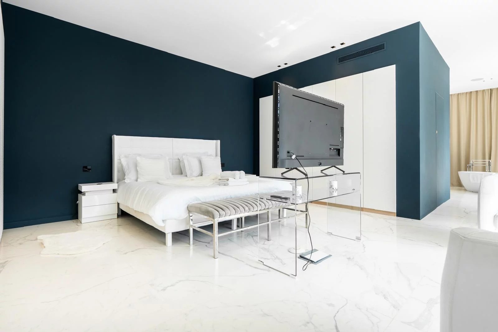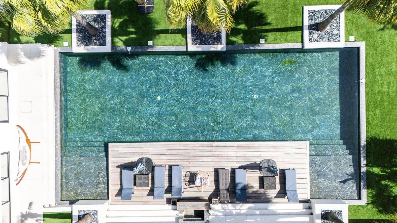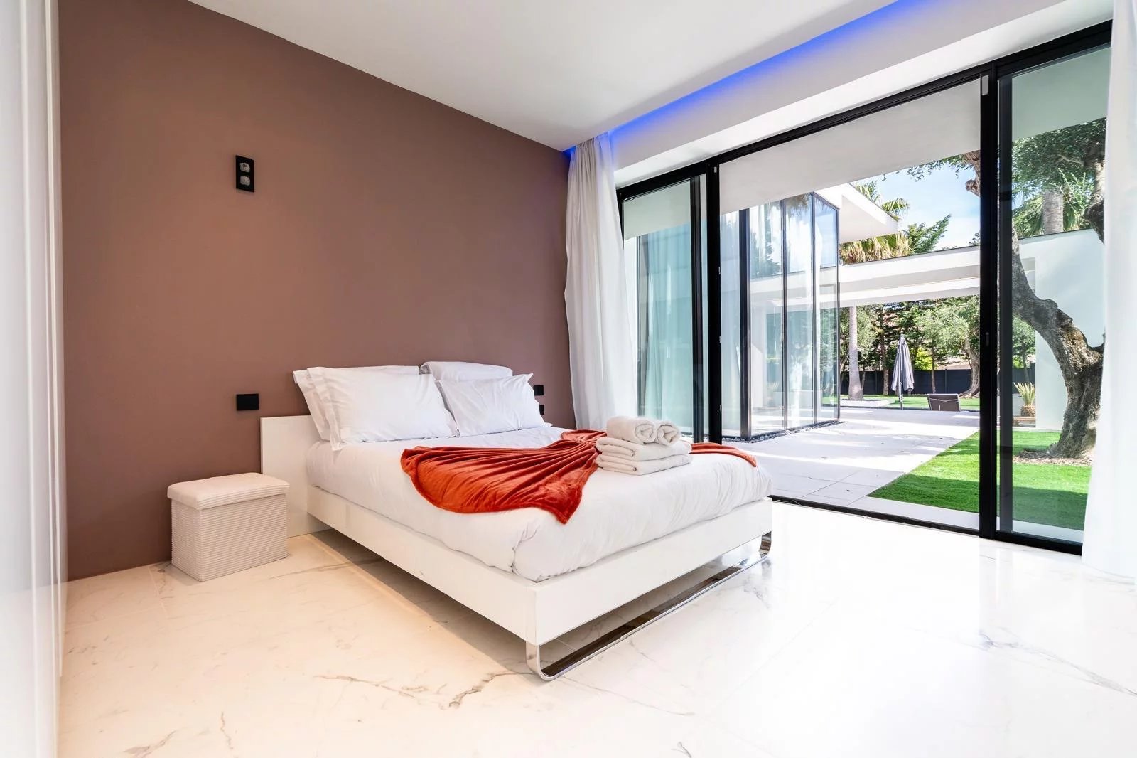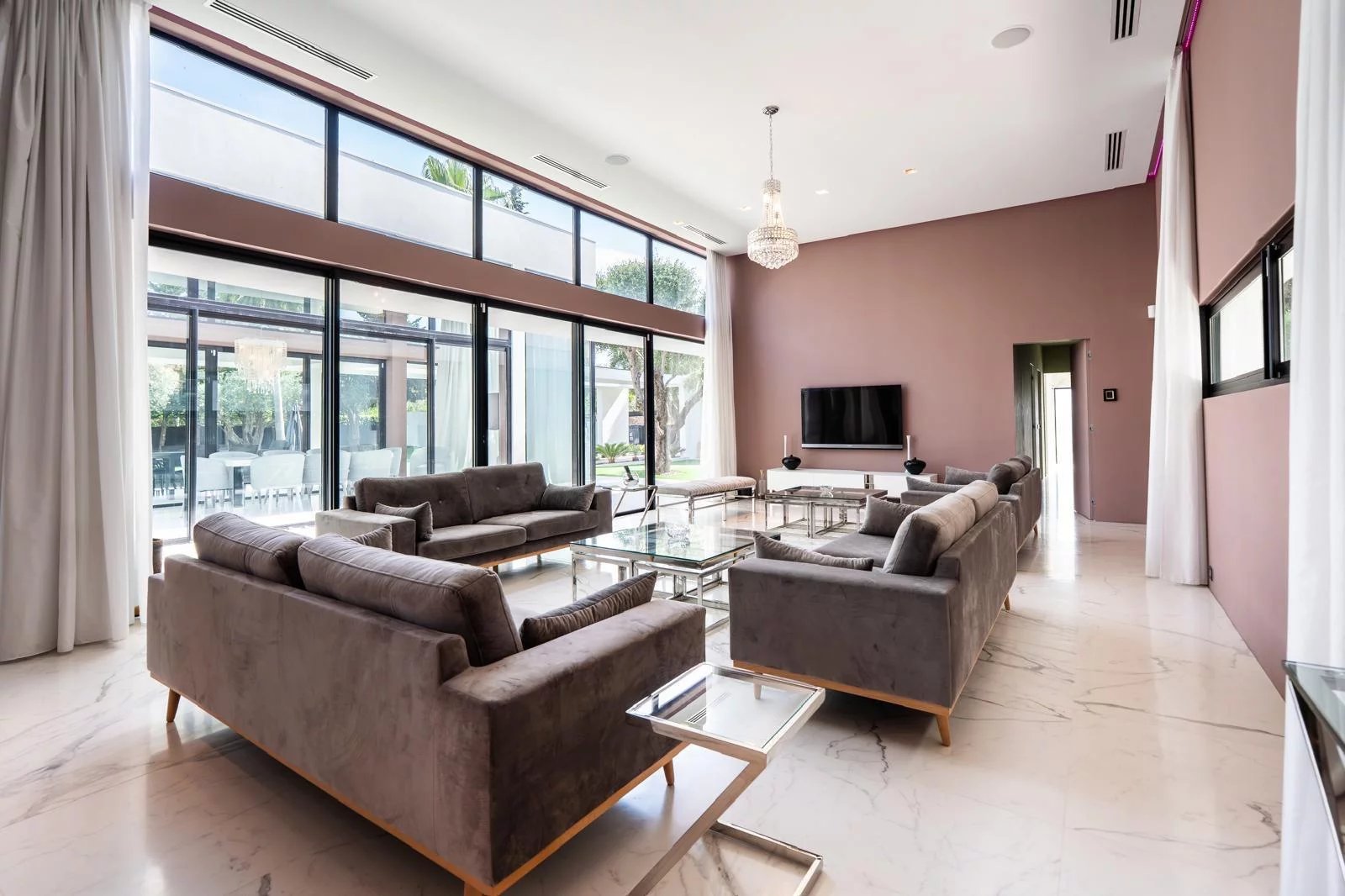 Dès l’entrée, la villa séduit par son architecture contemporaine et ses volumes généreux, baignés de lumière grâce à de vastes baies vitrées ouvrant sur des extérieurs magnifiquement aménagés.