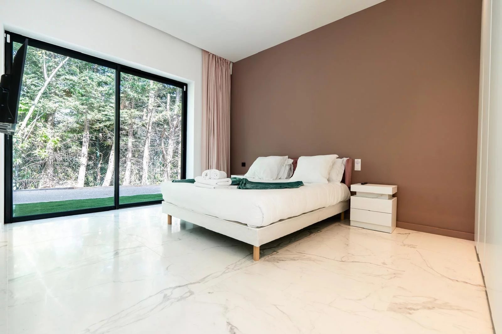 Elle offre 5 suites spacieuses, chacune dotée de sa salle de bain privative, ainsi qu’un système de climatisation intégral, garantissant un confort irréprochable en toute saison.