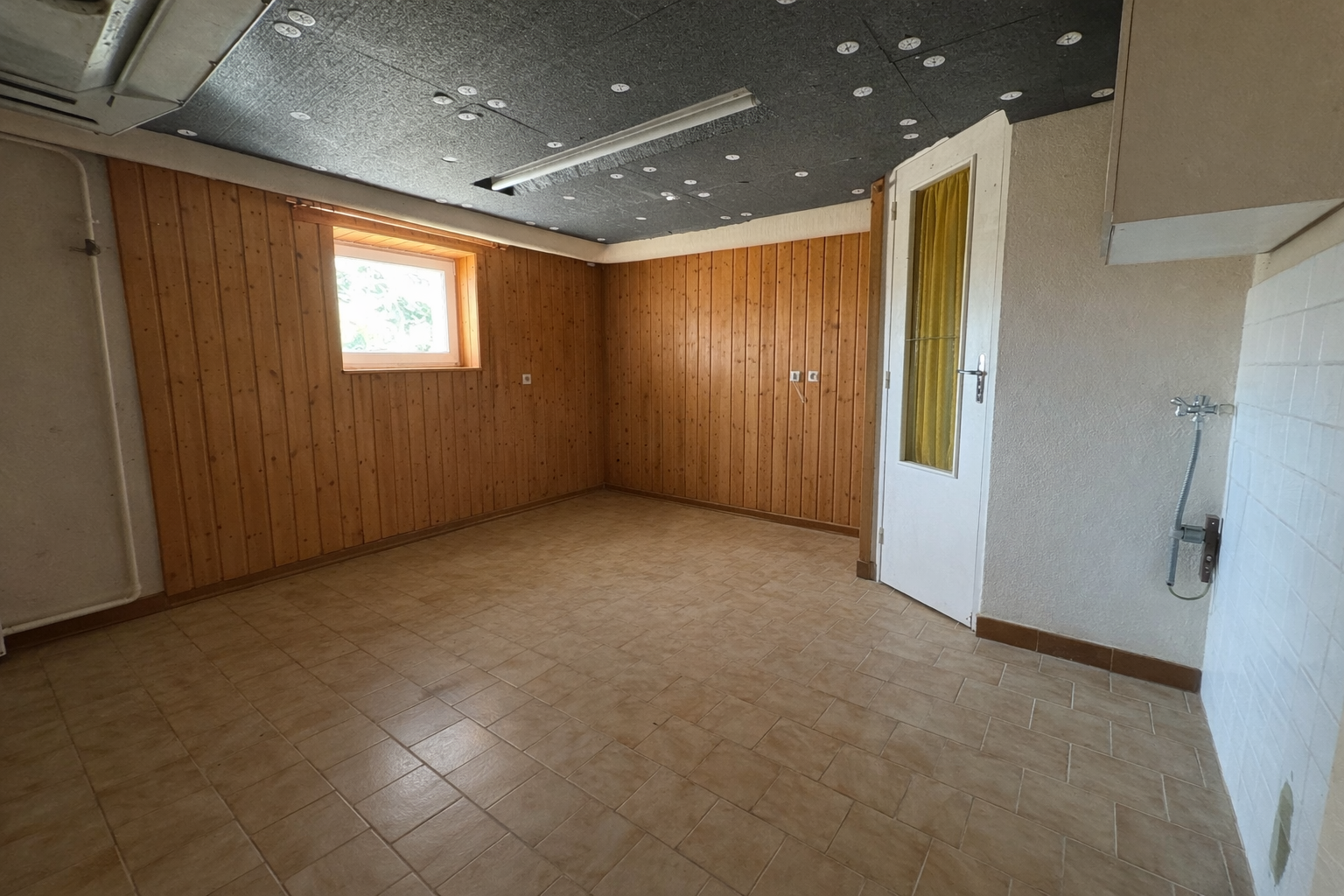 Maison individuelle composée au rez-de-chaussée de deux chambres, salle de bain et WC séparés, double séjour et cuisine separés. À l'étage, 3 grandes chambres et une salle d'eau avec espace dressing. Cave complète avec double garage, buanderie etc.