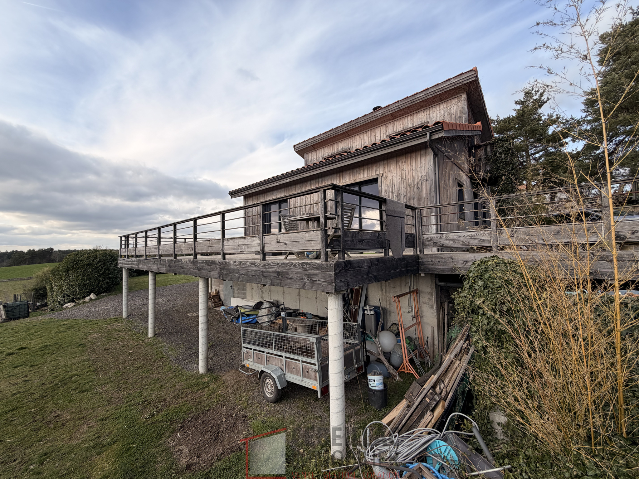 Côté pratique, la maison dispose également d'un garage intérieur, d'un grand carport et d'une cave, parfait pour faciliter le quotidien. A l'extérieur, vous profiterez d'une magnifique terasse de 60m2 ainsi que d'un terrain de 2044m2, véritable écrin de verdure propice à la détente, aux projets paysagers ou à de futurs aménagements. Une possibilité d'agrandissement s'offre à vous selon vos envies. Aucun travaux à prévoir : il ne vous reste plus qu'à poser vos valises et savourer immédiatement ce bien rare, alliant calme, espace et vue exceptionnelle.