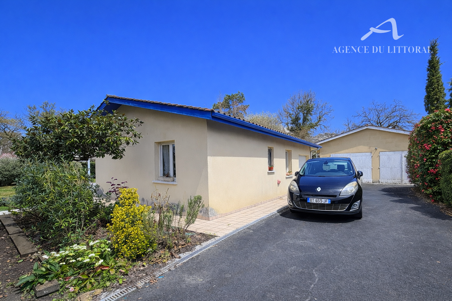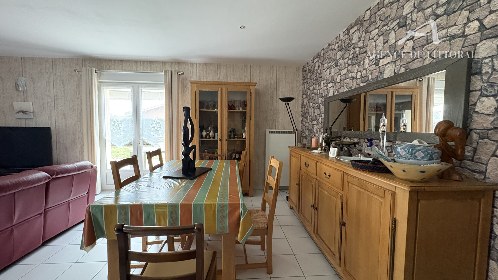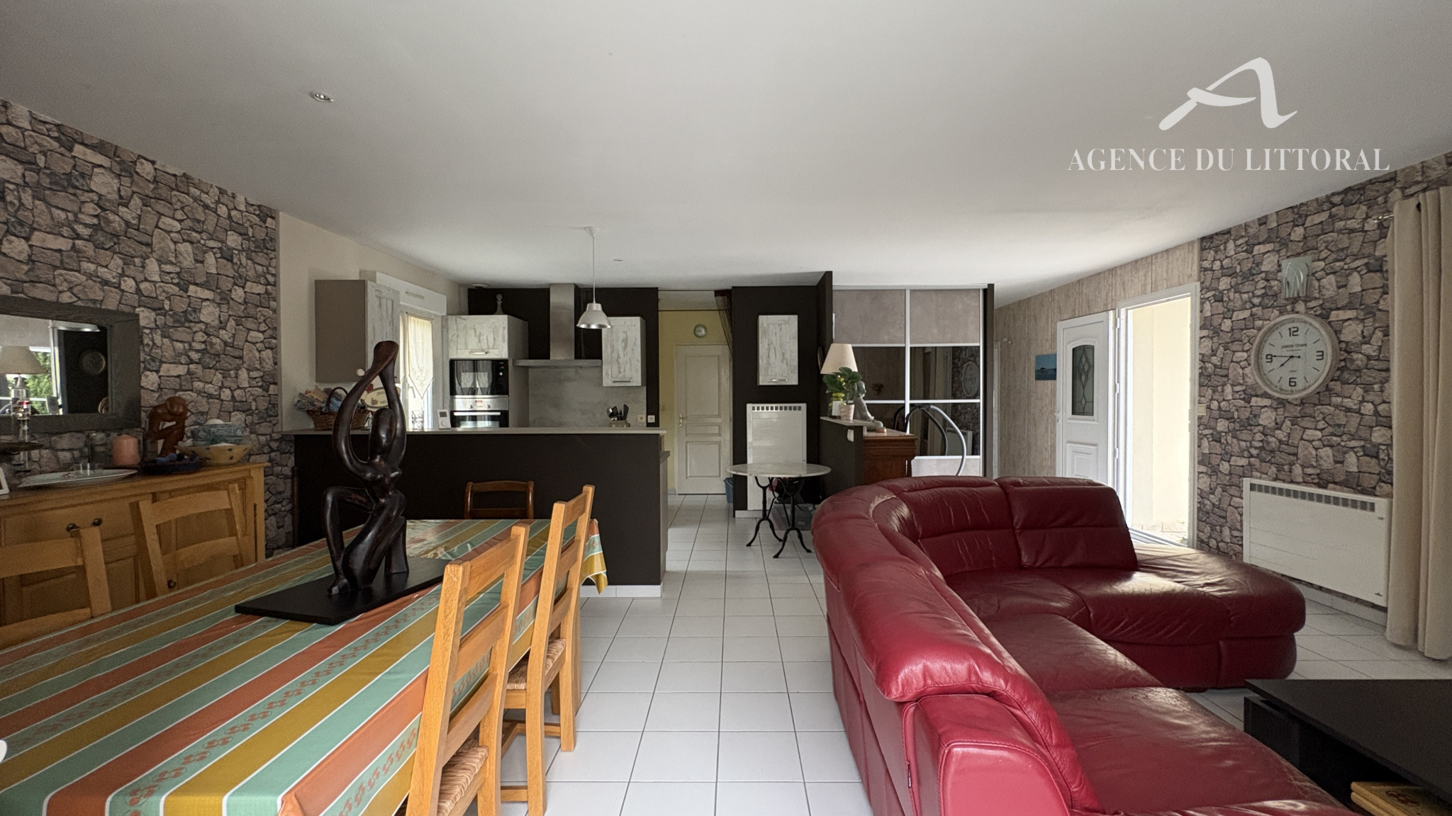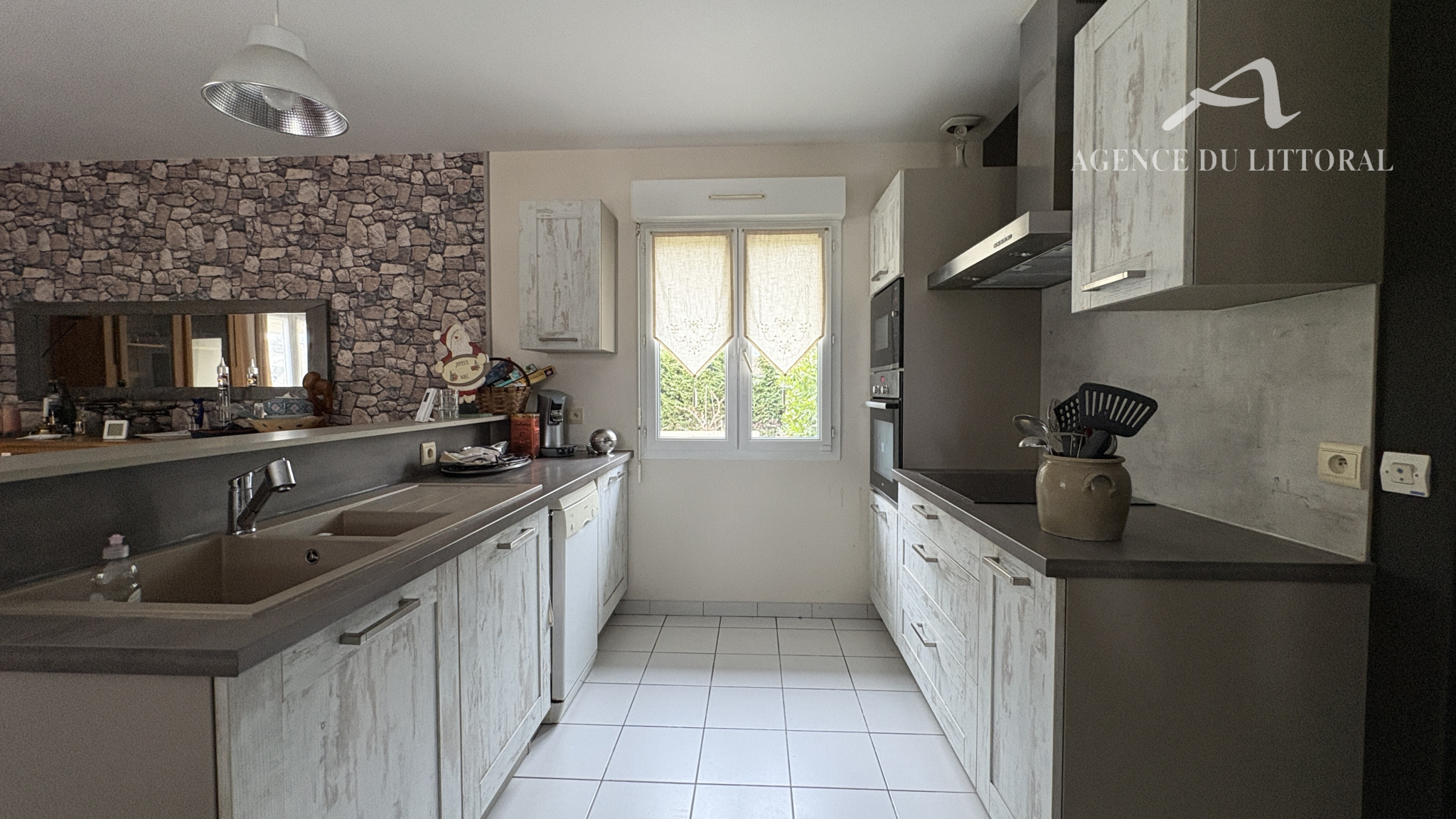 L'Agence du Littoral vous propose cette maison construite en 2001 de plain-pied de 105 m2 sur un terrain de 801 m2 située au calme dans un secteur arboré. Elle se compose d'une pièce à vivre de 43,52 m2, une cuisine équipée/aménagée, un cellier, une buanderie de 14 m2, trois chambres, une salle de bains avec douche et baignoire, un wc séparé. En fond de parcelle un garage double de 40 m2.