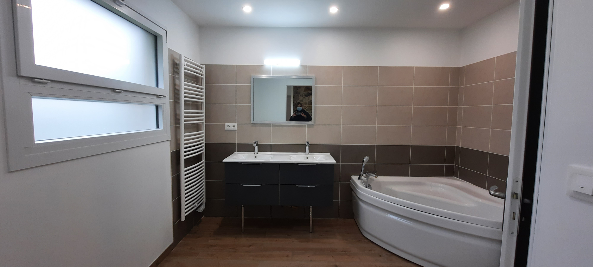 Au rez-de-chaussée, vous trouverez une cuisine ouverte sur le séjour, un WC indépendant, un cellier, ainsi qu'une chambre avec sa salle de bains privative et WC.