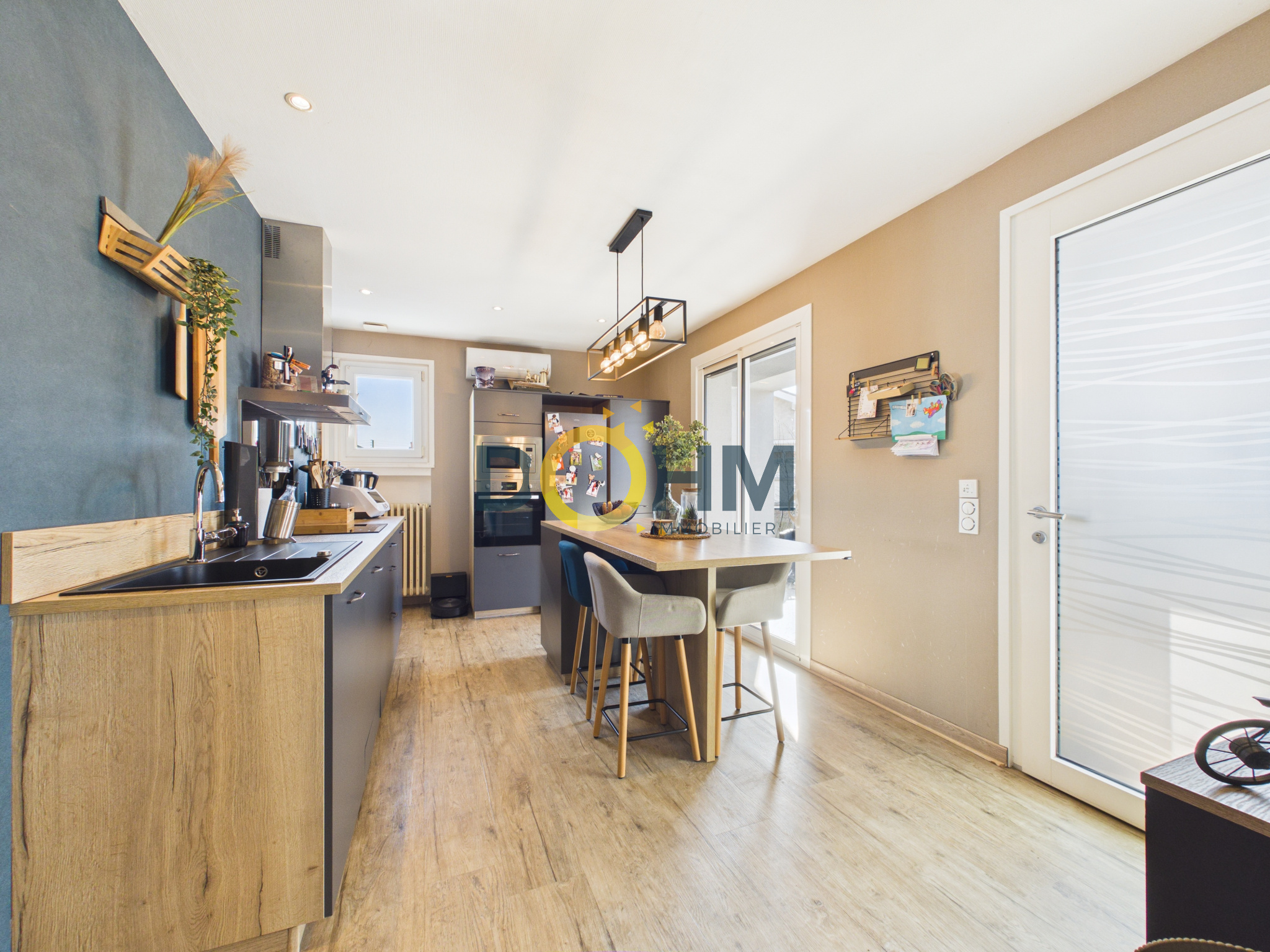 Exclusivité DOHM IMMOBILIER, Belle maison individuelle de 1966 entièrement rénovée avec prestations de qualité développant 107 m2 habitables dont 80 m2 à l'étage comprenant un salon séjour lumineux avec cuisine moderne, 3 chambres et une salle d'eau avec douche meuble vasque et WC.