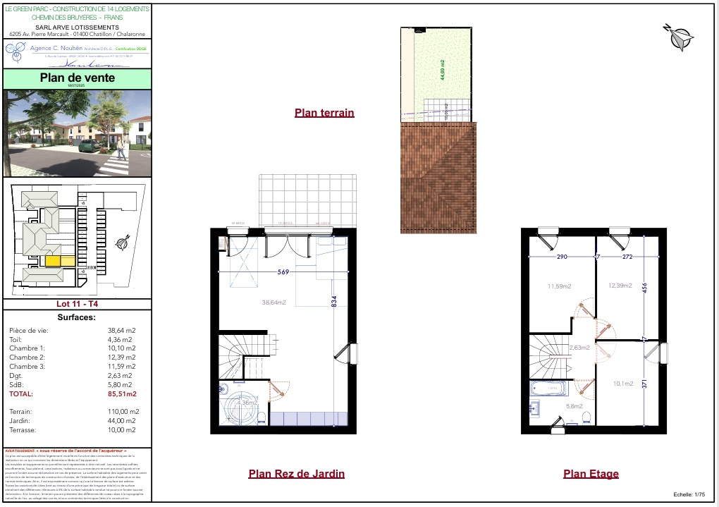 La copropriété sera composée de 14 maisons, les charges prévisionnelles sont estimées à 250 EUR par an.Vente avec frais de notaire réduits. Livraison estimée : fin 2027.
