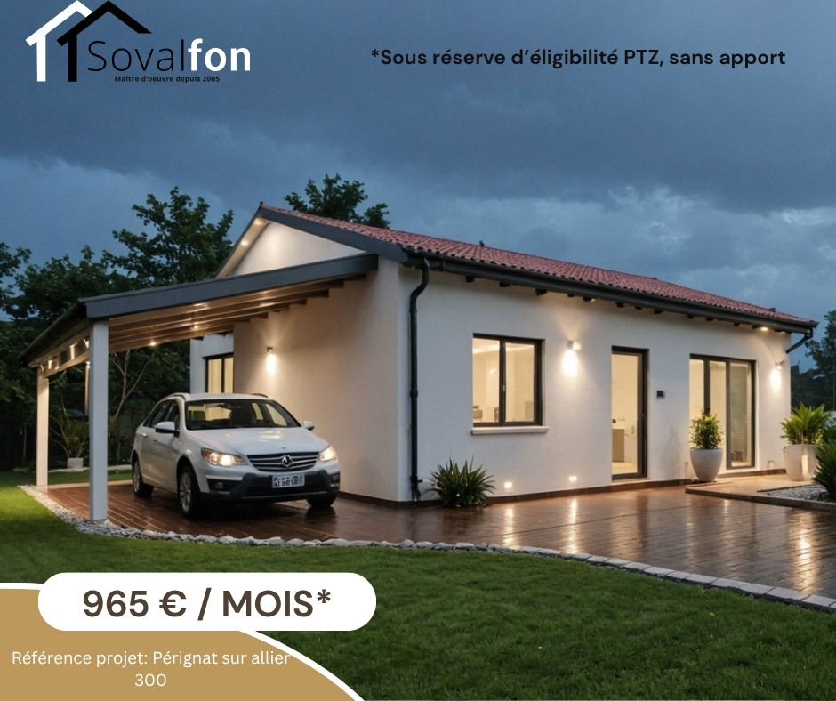 Sovalfon, maître d'oeuvre depuis 20 ans, vous propose cette maison moderne de 88 m2 habitables avec 3 chambres entièrement personnalisable, sur un terrain de 300m2 idéalement situé à Pérignat sur allier
