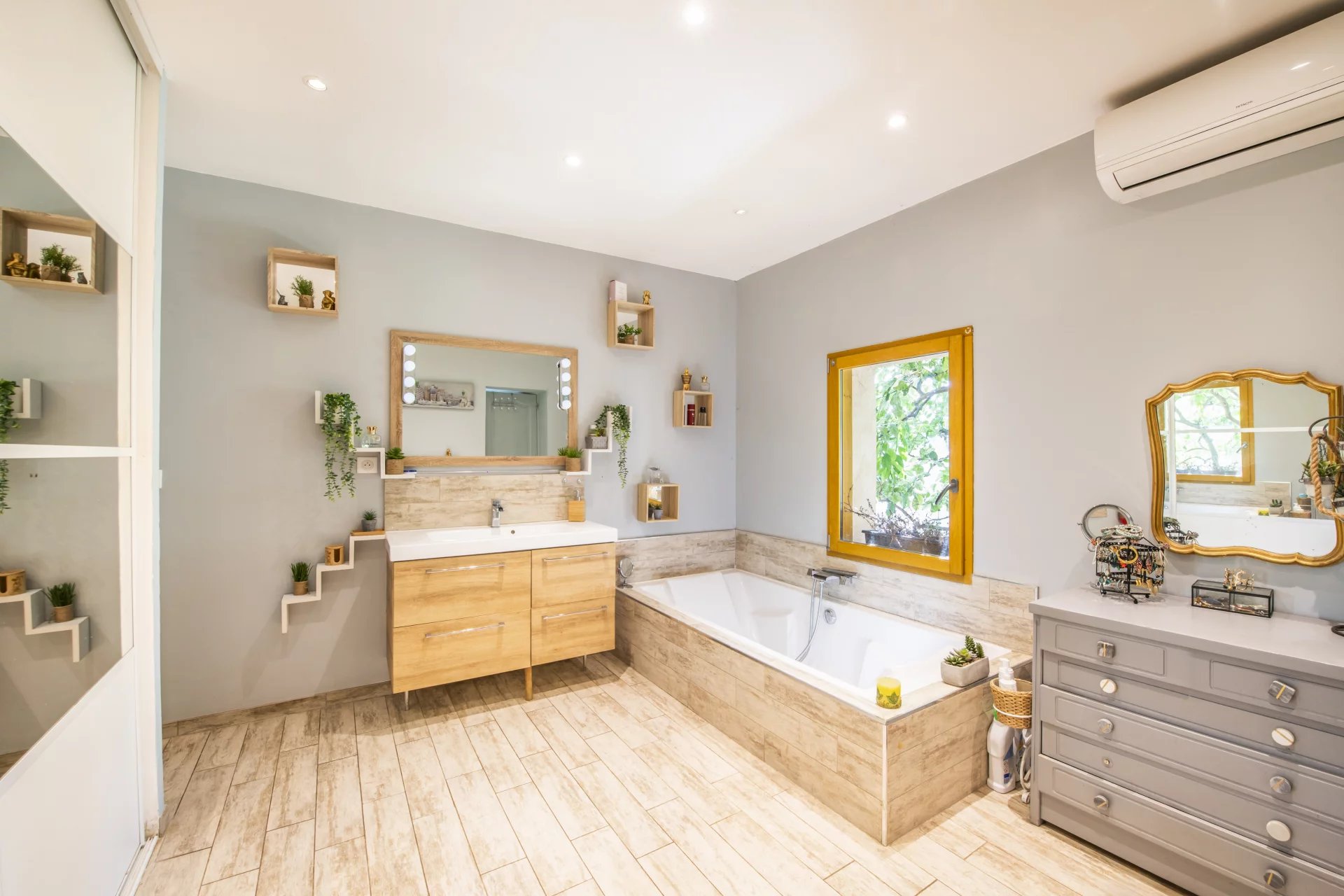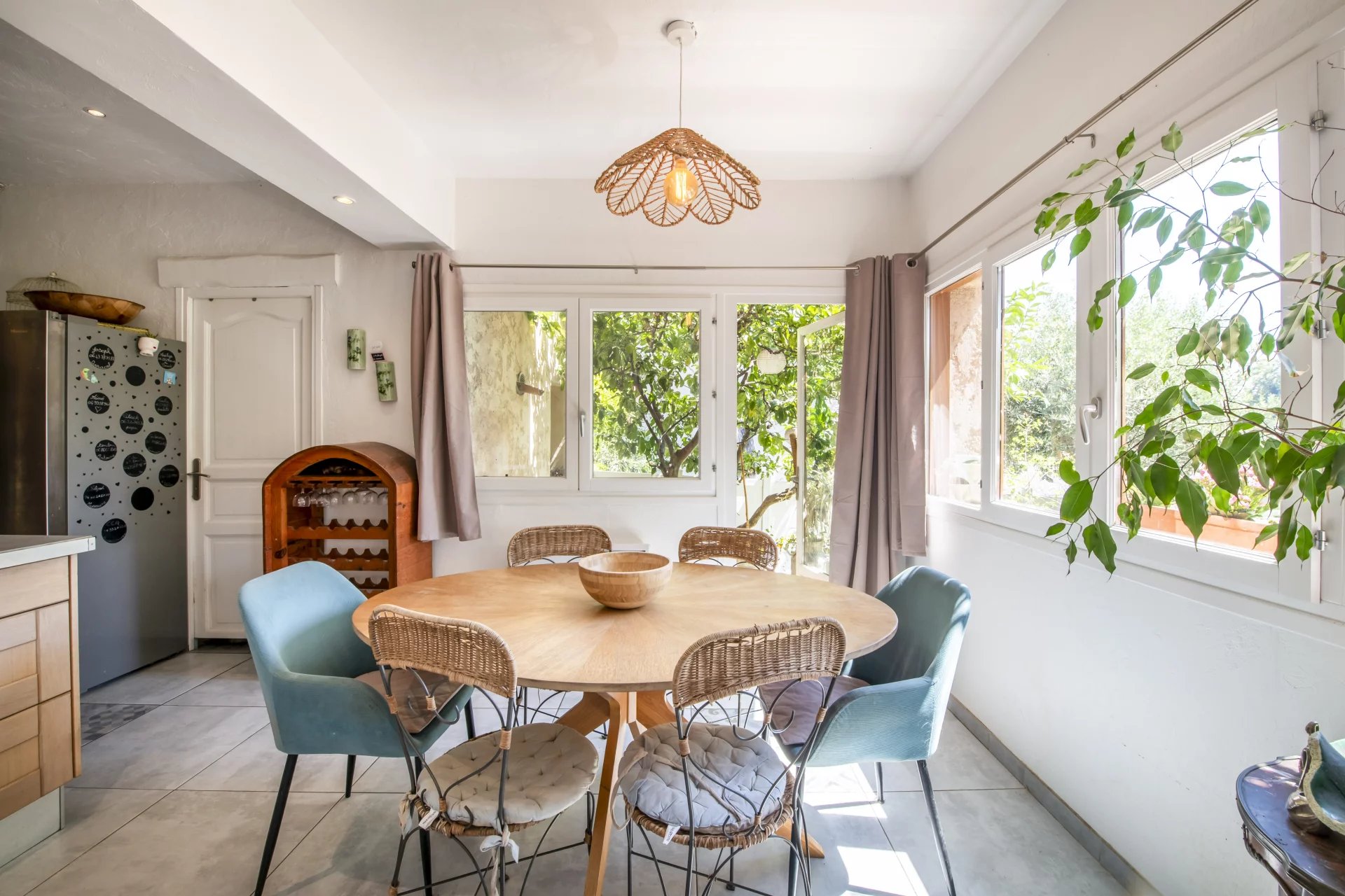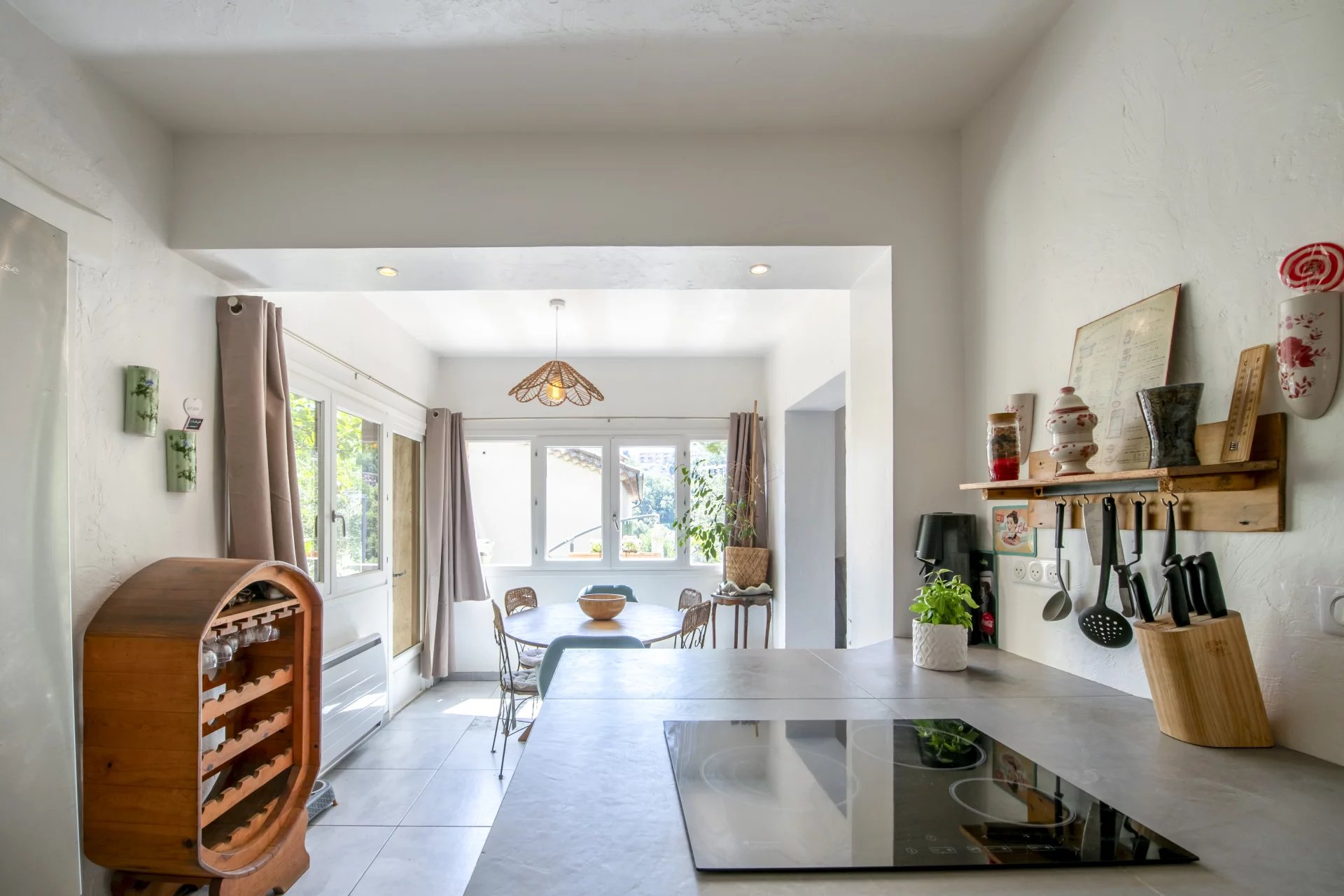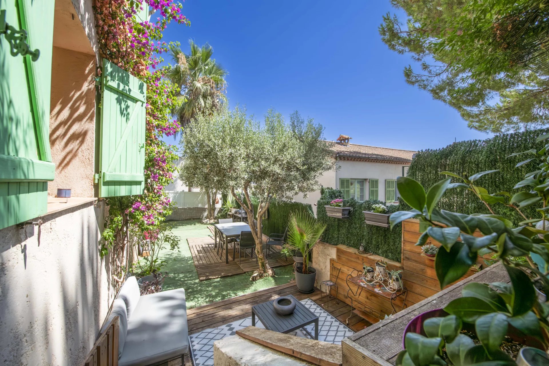 EXCLUSIVITÉ Venez découvrir cette charmante maison familiale située à Vence. Offrant de beaux volumes et un agencement fonctionnel, elle est parfaite pour une vie de famille confortable et paisible. Au rez-de-jardin, une entrée dégagée mène à un vaste salon lumineux avec coin bureau, puis à une cuisine semi-ouverte entièrement équipée, dotée d’un espace repas convivial. Ce niveau accueille également une suite parentale climatisée en duplex, comprenant une salle de bain, un espace buanderie et un accès indépendant, offrant une véritable intimité ou un espace autonome. À l’étage, trois grandes chambres lumineuses de 16 à 18 m², une salle d’eau avec coin buanderie, ainsi qu’un second accès indépendant à la maison offrent flexibilité et potentiel d’aménagement supplémentaire. Les extérieurs offrent deux espaces : l’une aménagée en coin repas avec barbecue, l’autre en espace salon terrasse pour recevoir. Deux places de stationnement extérieures complètent ce bien, avec plusieurs possibilités de stationnement pour les invités à proximité immédiate. La maison se situe à proximité des écoles Freinet et du Suve, et bénéficie d’une navette gratuite desservant toute la ville de Vence.