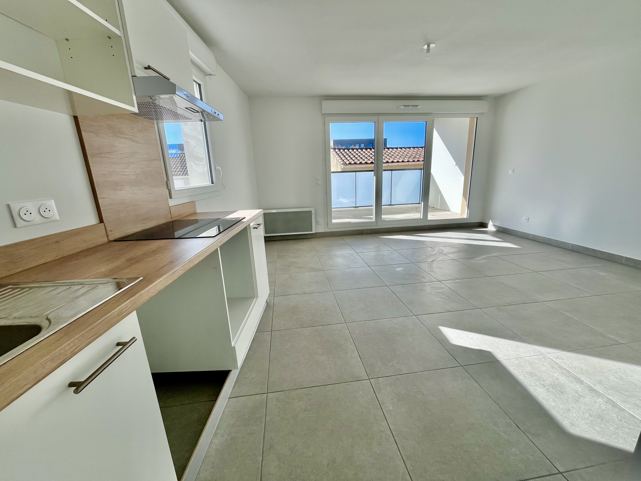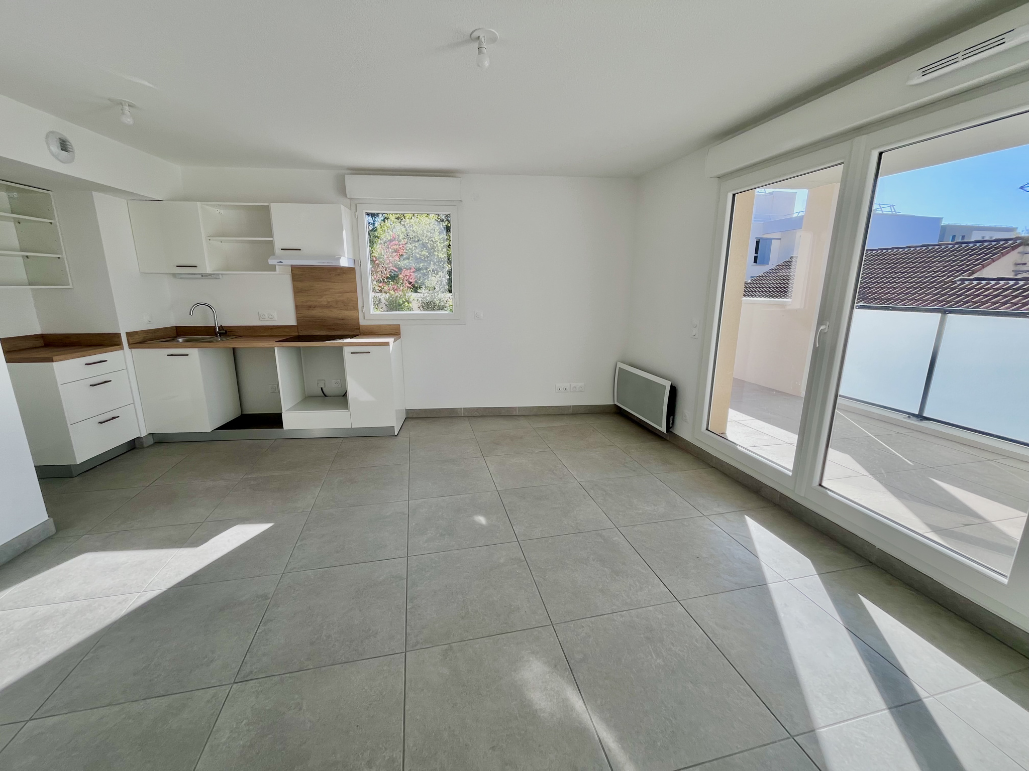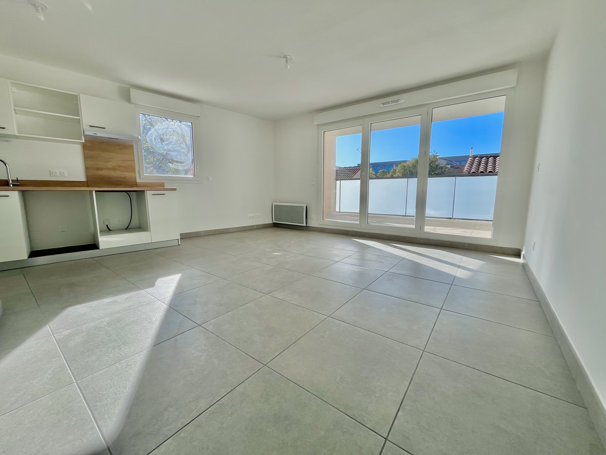 L'appartement est neuf et aux dernières normes, offre une pièce de vie lumineuse avec cuisine semi-équipée, deux grandes chambres, une salle de bain indépendante et un WC séparé. Vous profiterez d'une superbe terrasse de 27 m2, idéale pour les repas et moments de détente au calme.