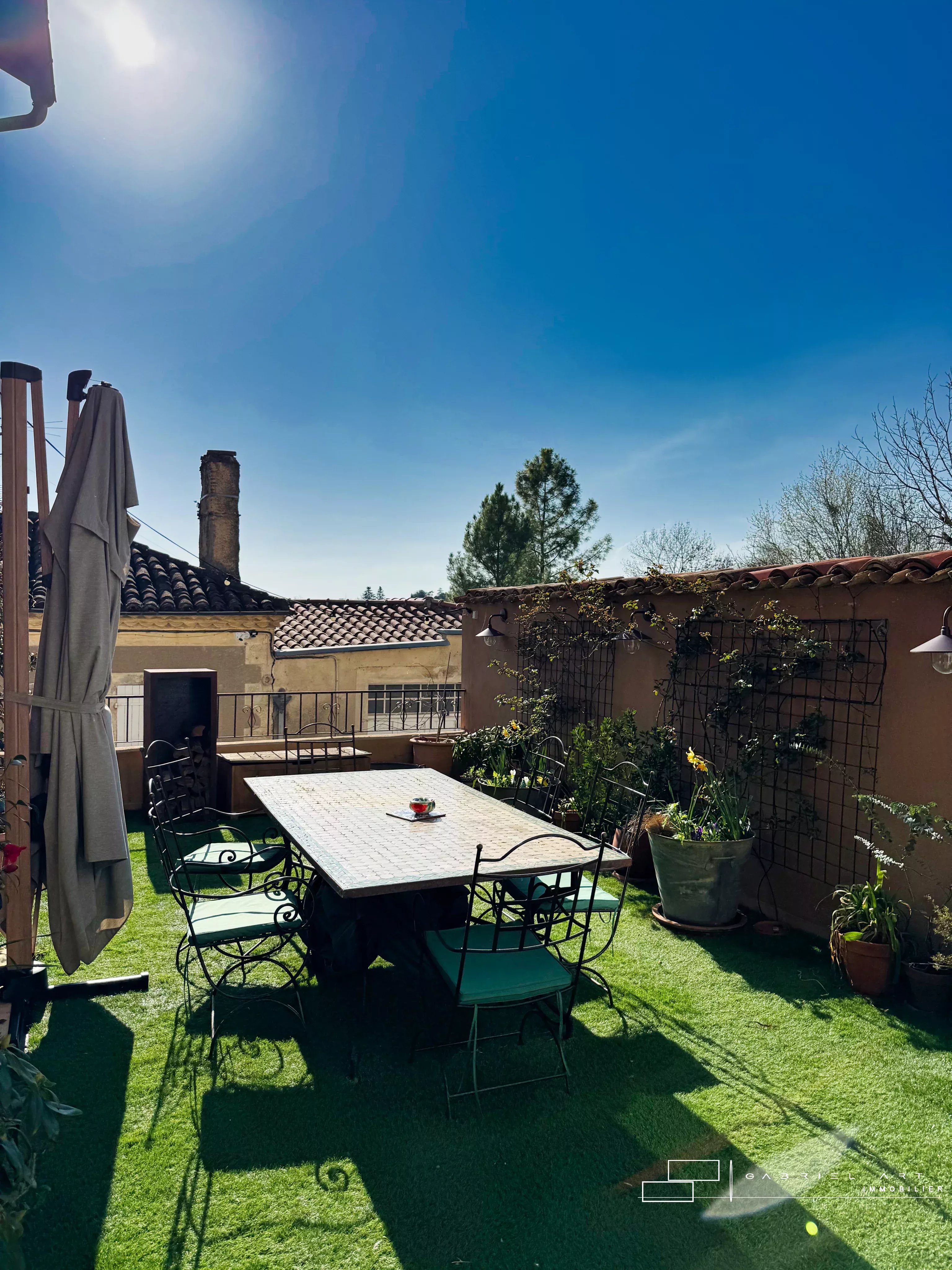 À l’extérieur, profitez d’une agréable terrasse ensoleillée, véritable havre de paix pour vos moments de détente ou vos repas en plein air.