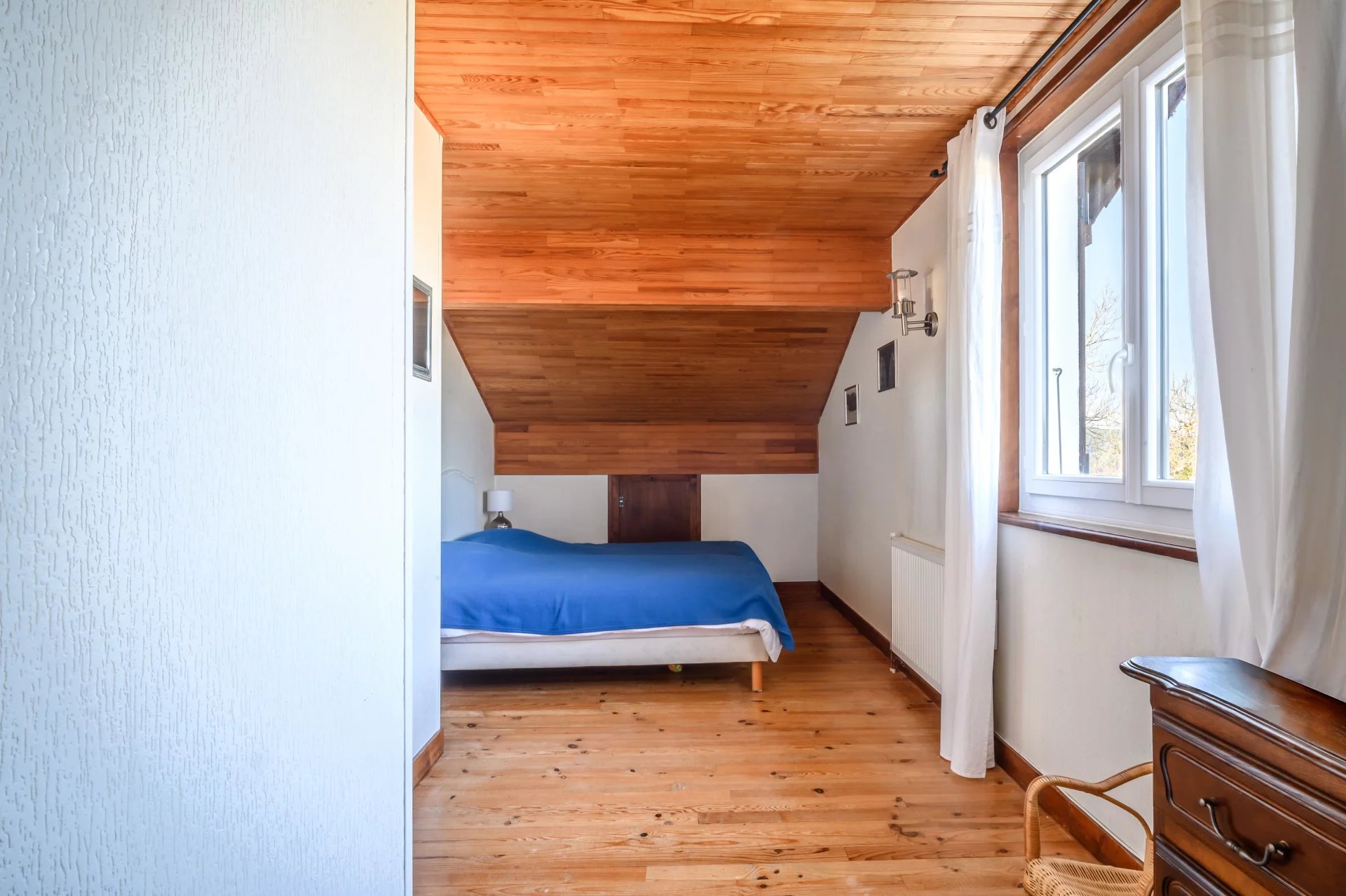 Un agréable petit salon crée un espace de vie supplémentaire, parfait pour un coin détente ou salle de jeux. Ce niveau comprend également deux chambres ainsi qu’une salle d’eau.