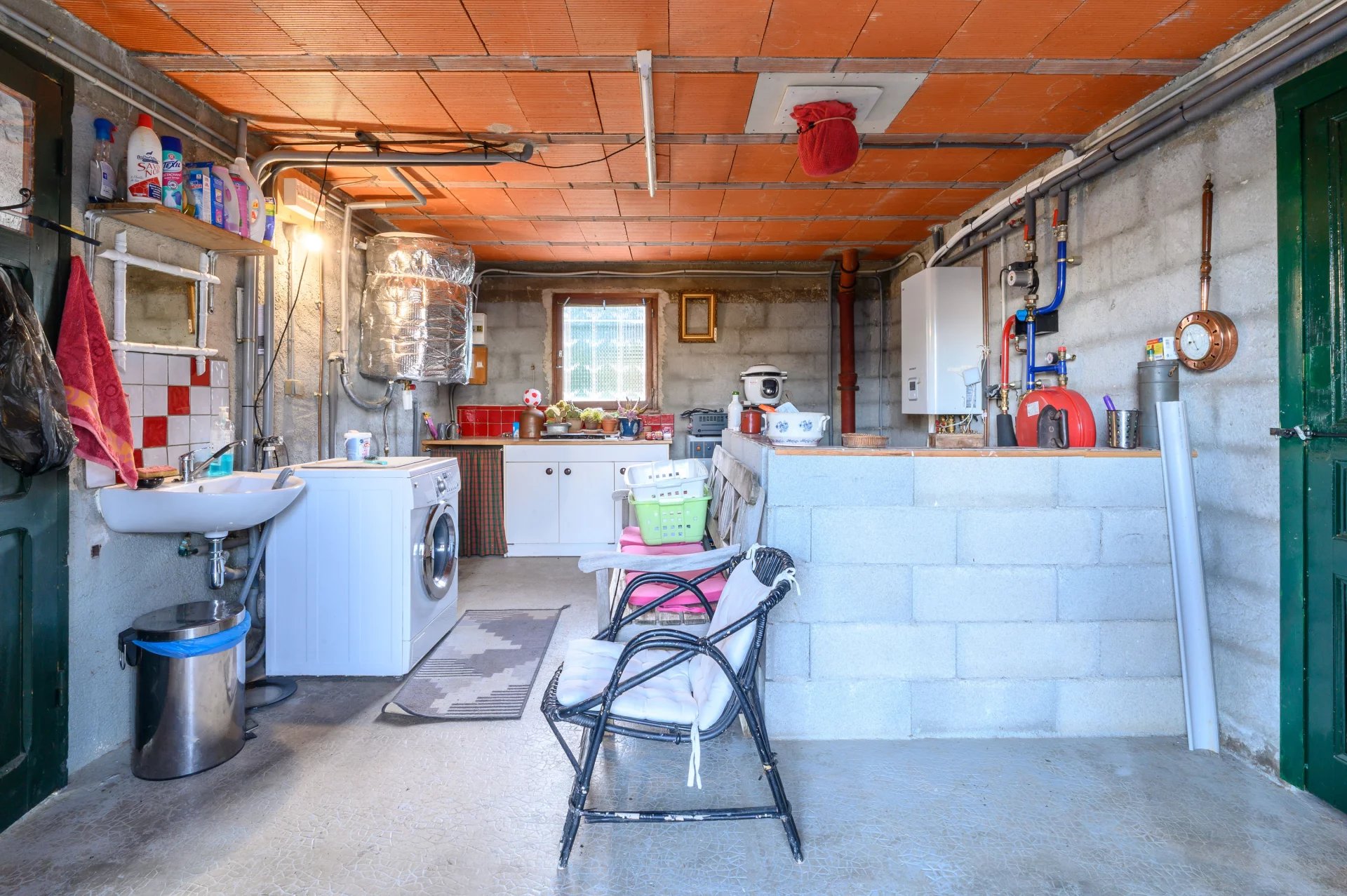 L’ensemble du rez-de-chaussée est dédié aux dépendances et aux garages. Cet espace fonctionnel bénéficie d’un accès direct au vaste terrain de la propriété, particulièrement bien entretenu, idéal pour profiter pleinement des extérieurs.