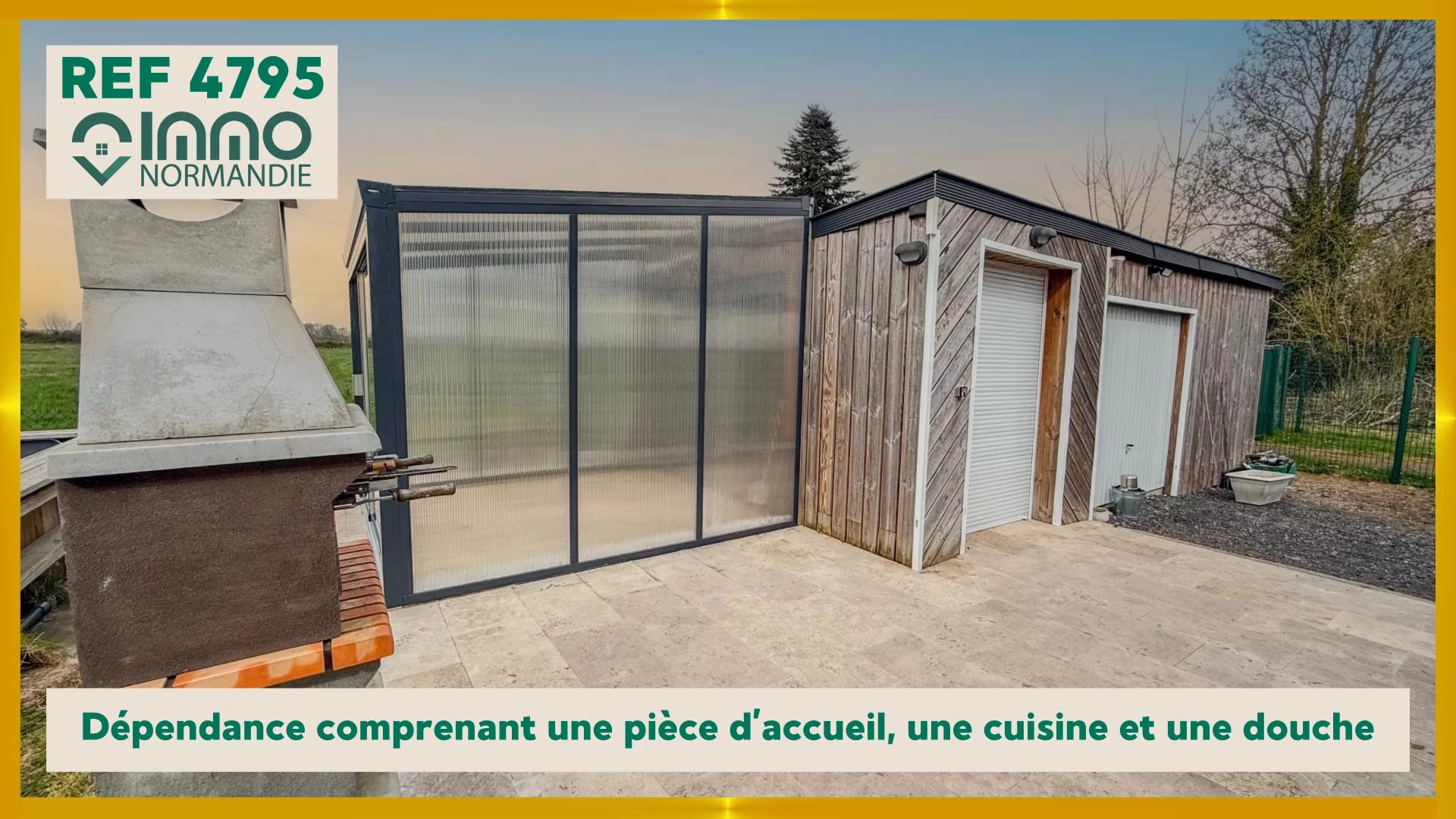 À l’extérieur : Une dépendance comprenant une pièce d’accueil, une cuisine et une douche (idéal pour recevoir famille et amis ou pour un projet locatif)