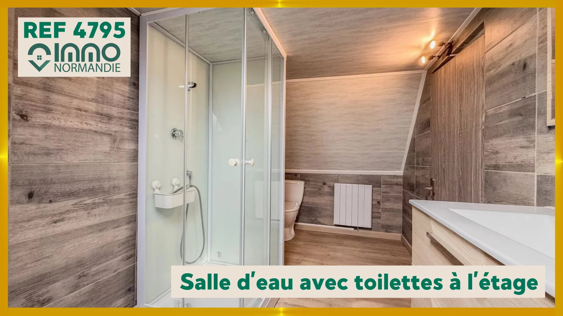 Au rez-de-chaussée : Un séjour, une cuisine fonctionnelle, une buanderie, une chambre, une salle de douche/ WC.