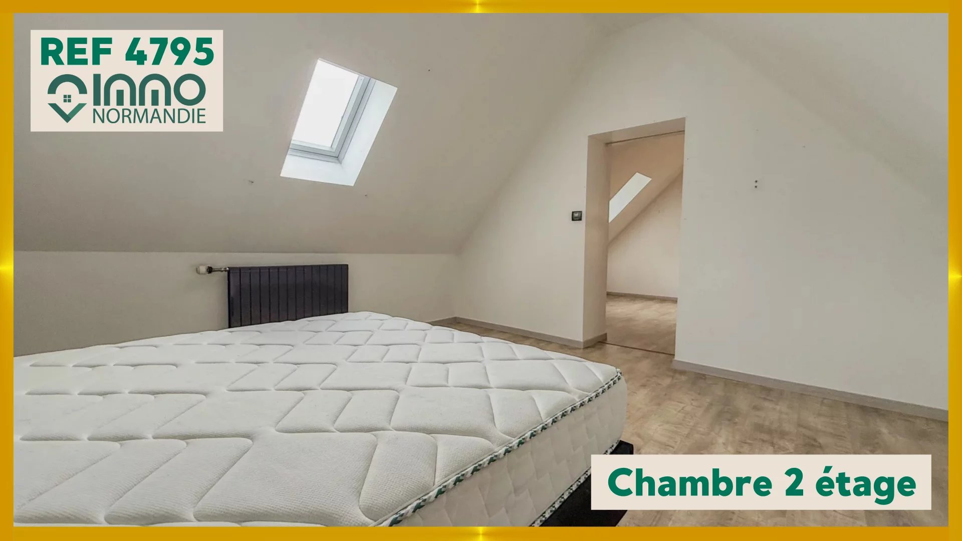 À l’étage : Deux chambres en enfilade, une salle de douche avec WC