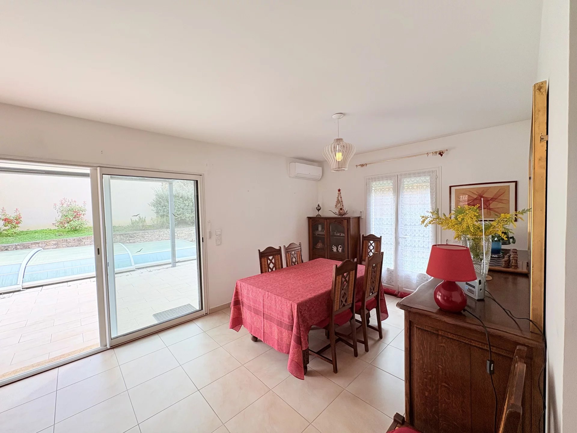 D’une surface de 108 m², la maison se compose de 4 pièces dont 3 chambres. Elle bénéficie d’une exposition sud / sud-ouest, apportant une belle luminosité tout au long de la journée. Le séjour, confortable et chaleureux, est équipé d’un poêle ainsi que de la climatisation. La cuisine indépendante est fonctionnelle et bien agencée.