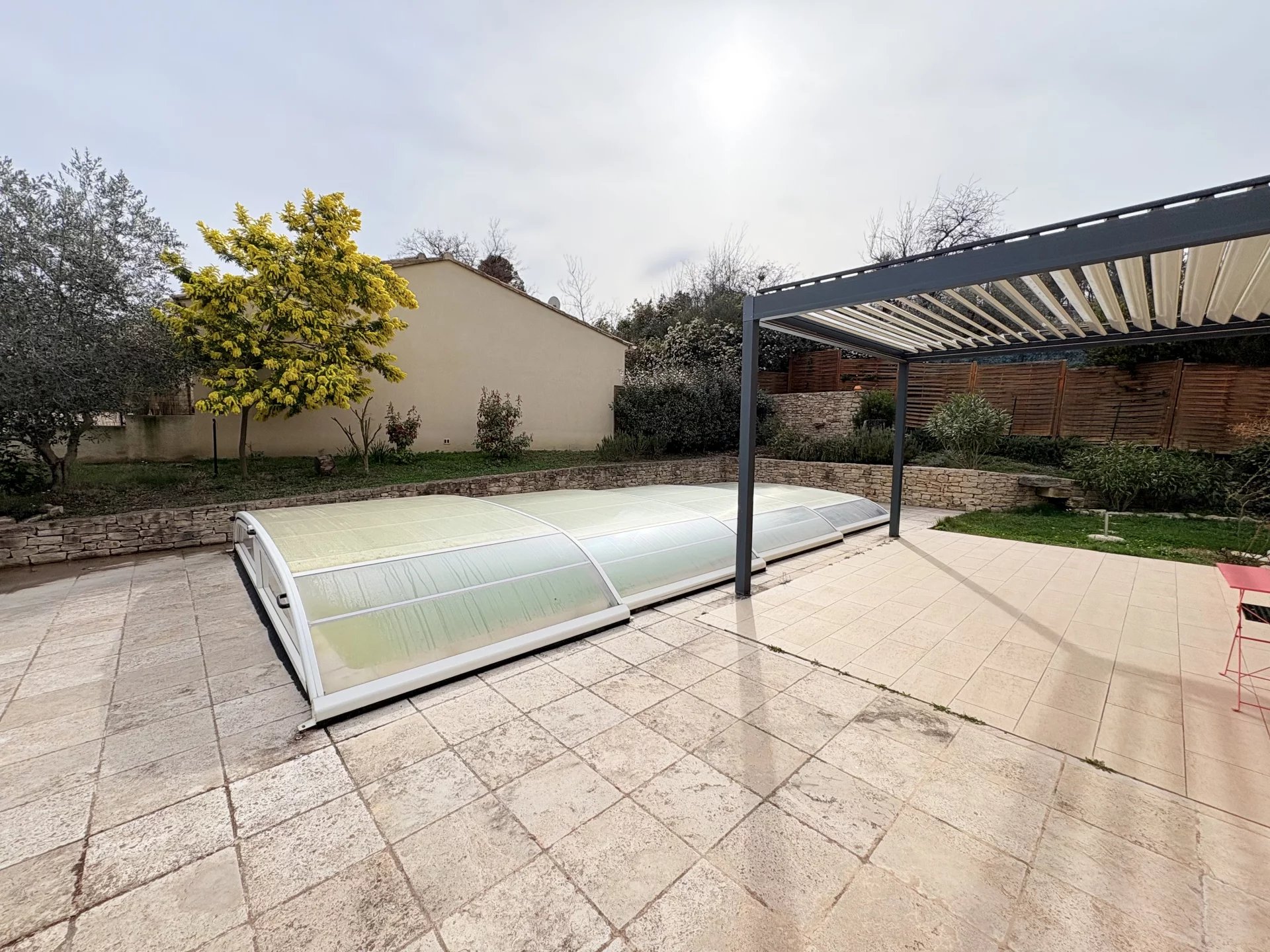 Édifiée sur une parcelle de 806 m², la propriété dispose d’un extérieur soigné avec piscine Desjoyaux, pergola et espaces de détente propices aux beaux jours.