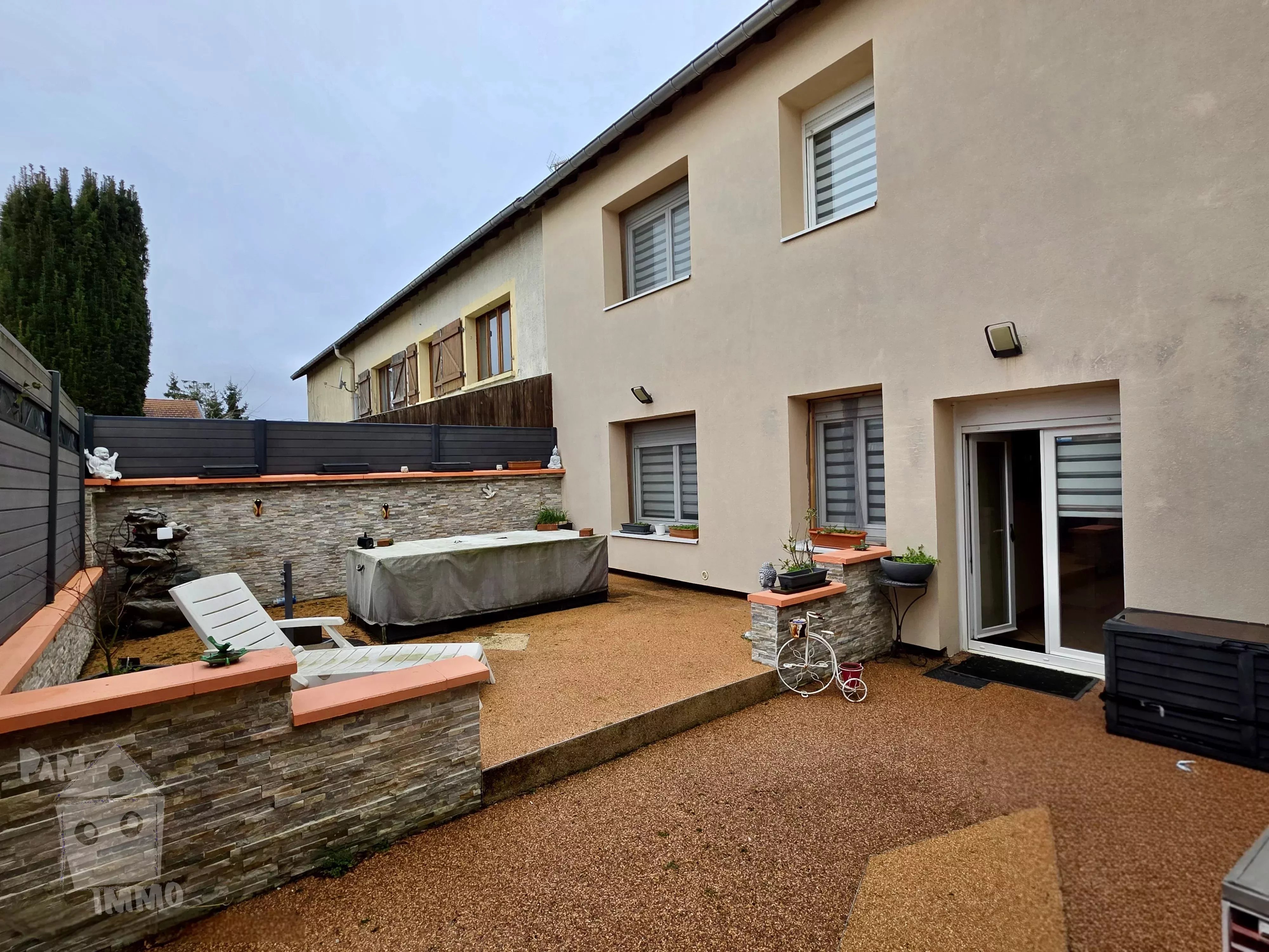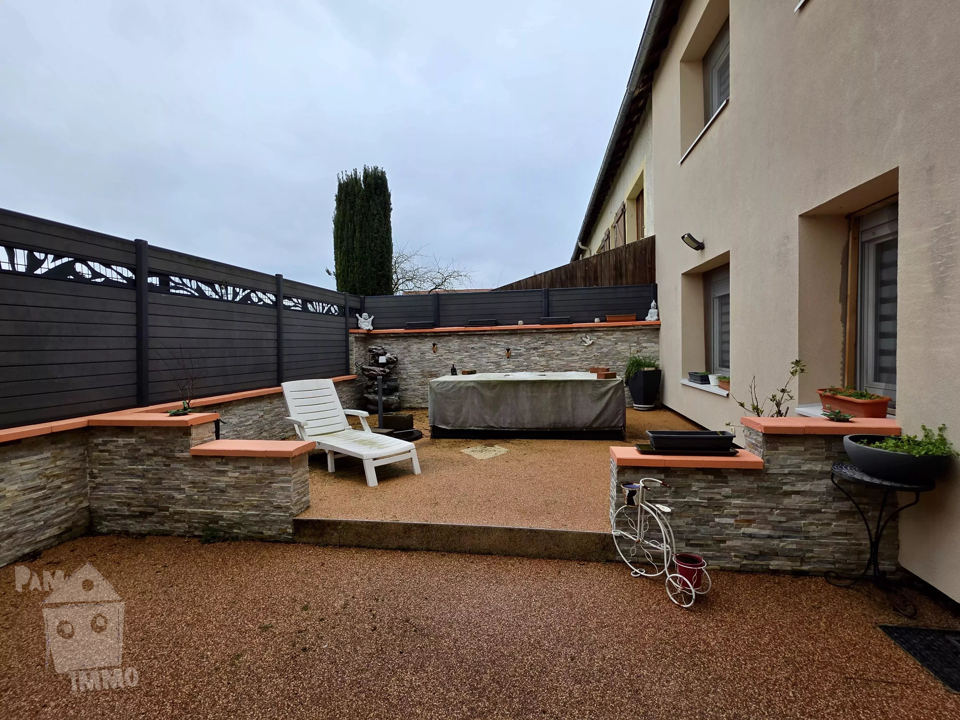 À l’extérieur, le bien bénéficie d’une agréable terrasse aménagée ainsi que d’un espace de stockage. Quatre places de stationnement sont également disponibles directement devant la maison.
