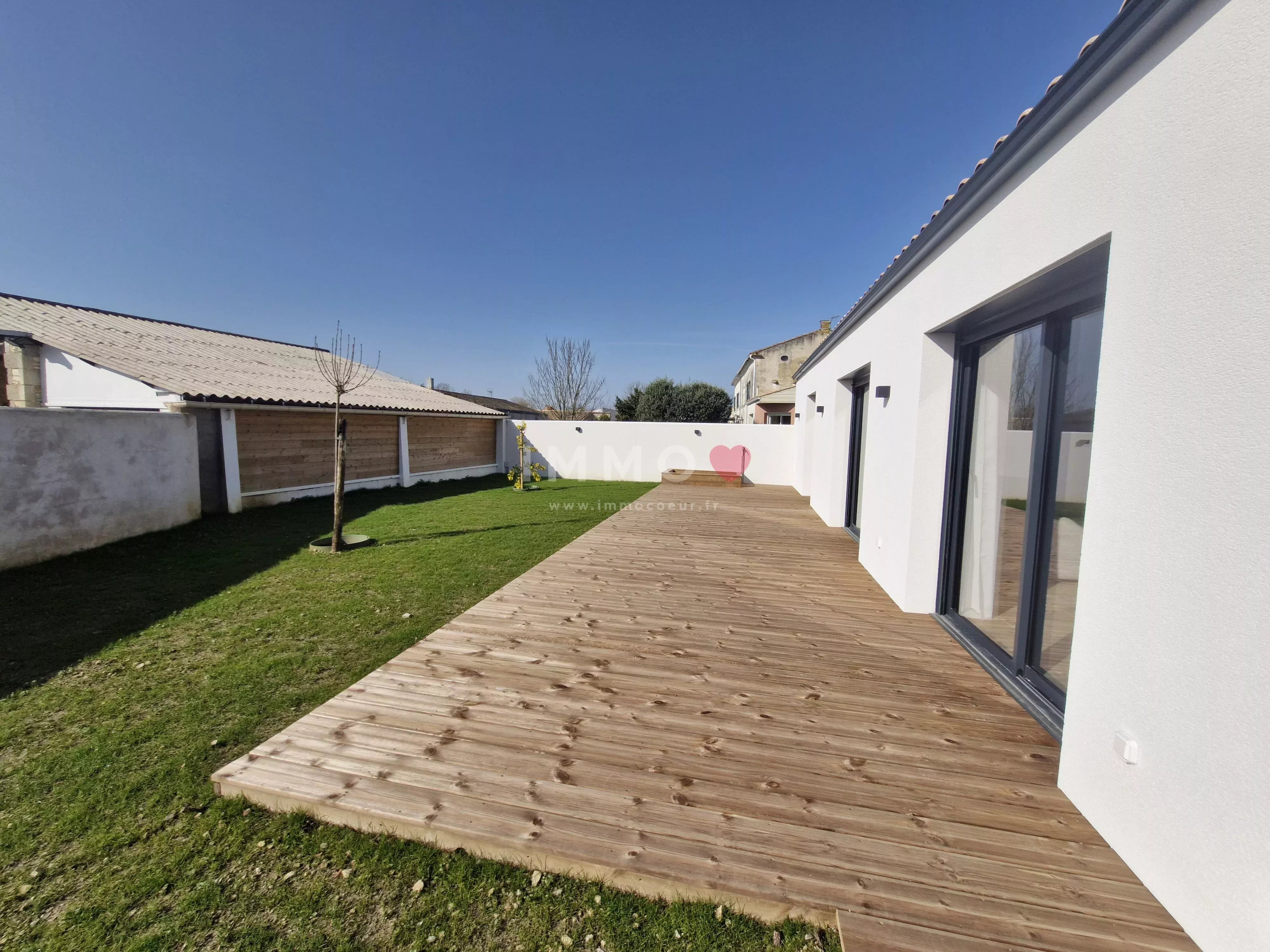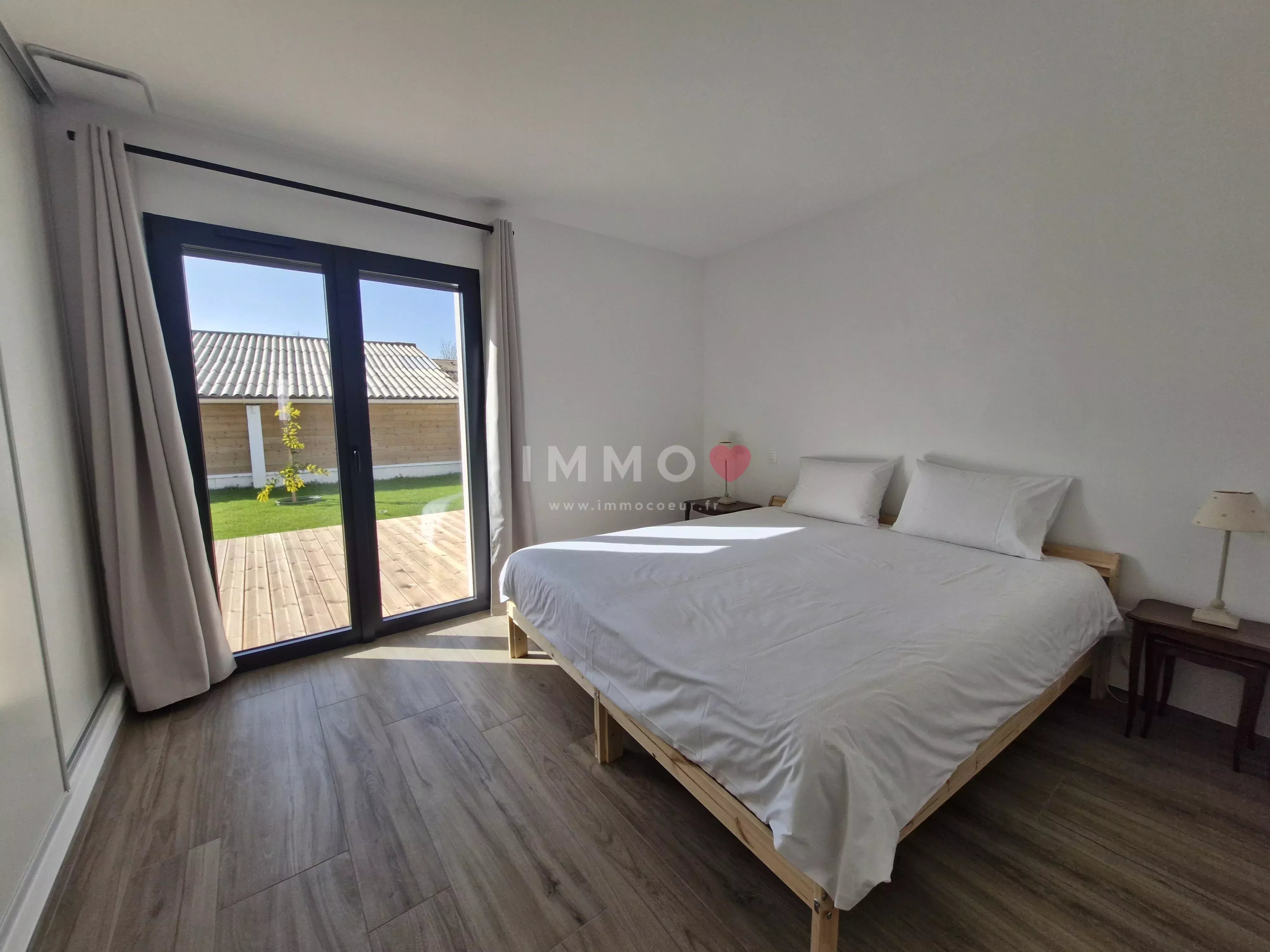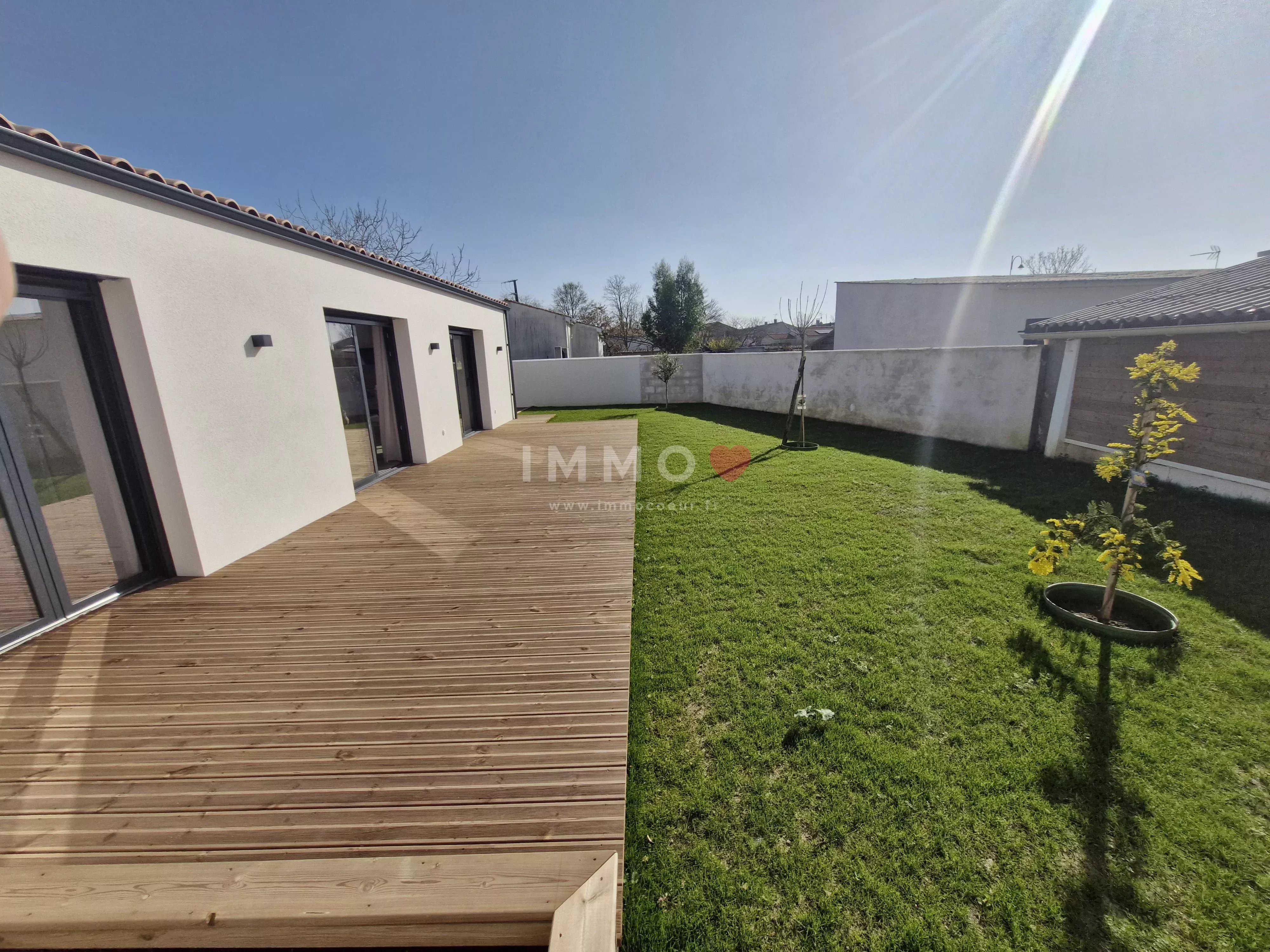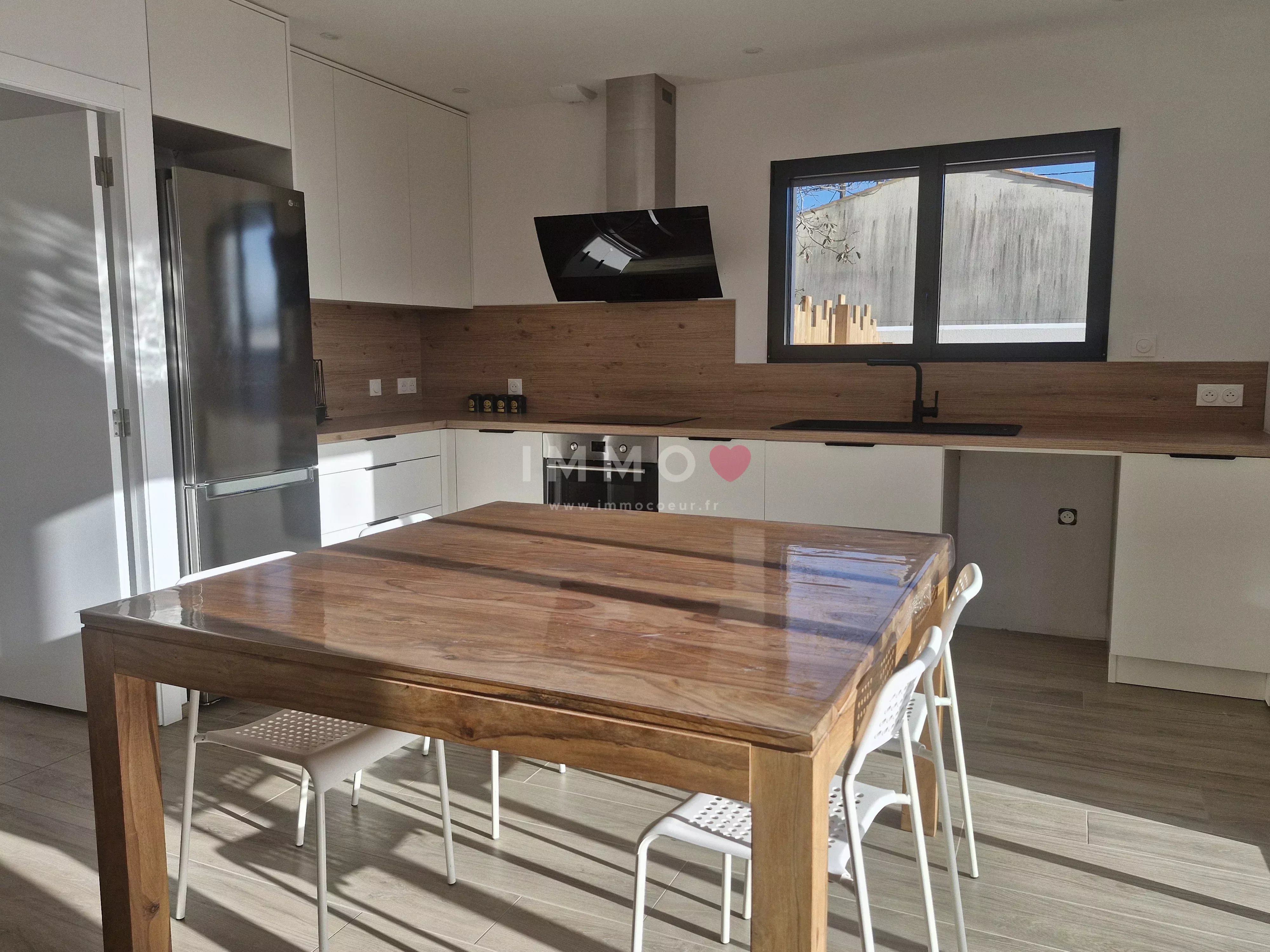 Entre LA ROCHELLE et NIORT, à FERRIERES, plain-pied neuf, meublé, offrant une belle pièce de vie exposée plein sud, cuisine ouverte aménagée et équipée, cellier, 3 chambres, salle d'eau, toilettes, garage, 2 emplacements de stationnement, terrasse bois et jardin clos. Chauffage par pompe à chaleur, ballon d'eau chaude thermodynamique. Entretien de la pompe à chaleur compris. Libre. Honoraires 1 127,53 €