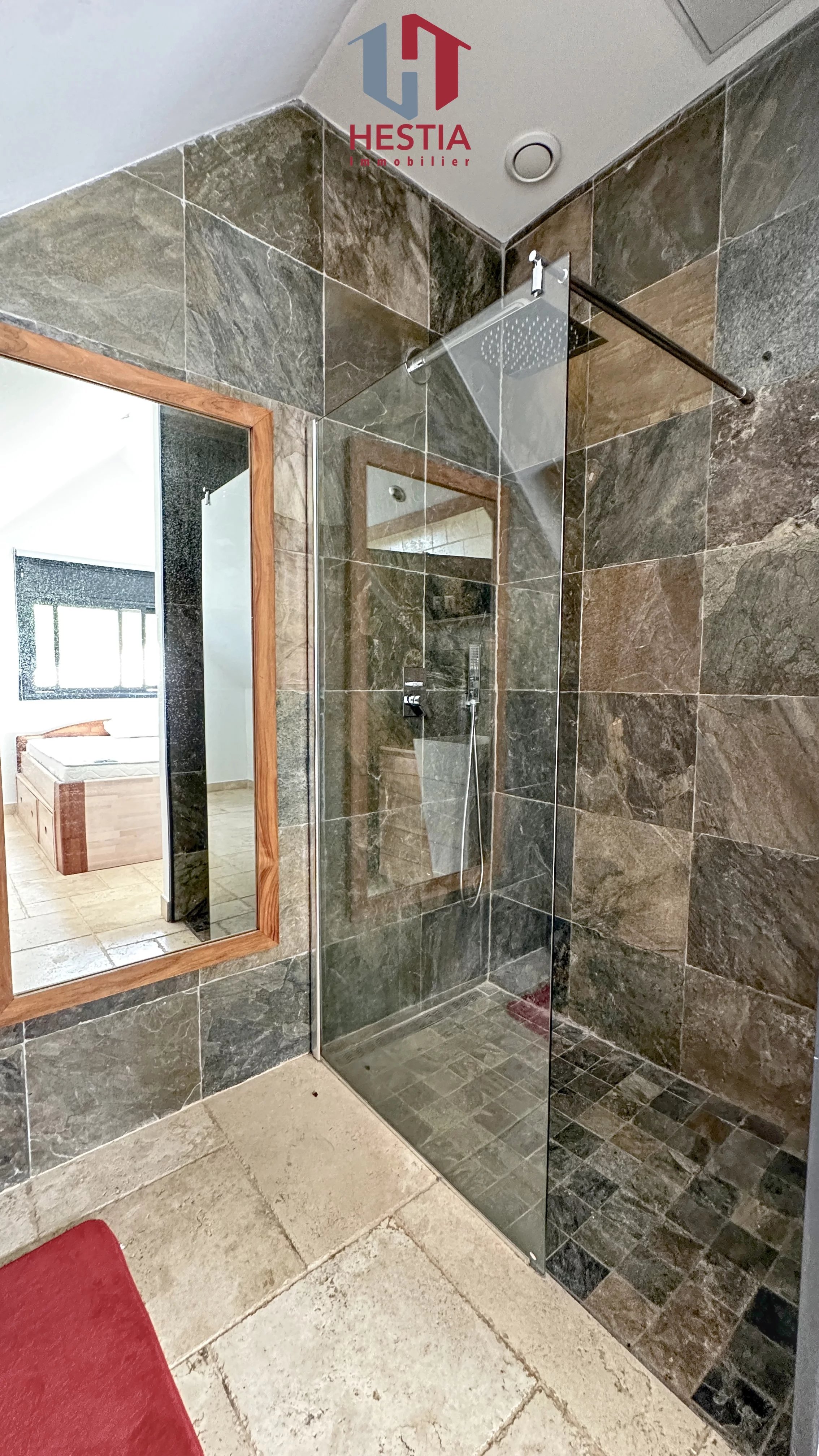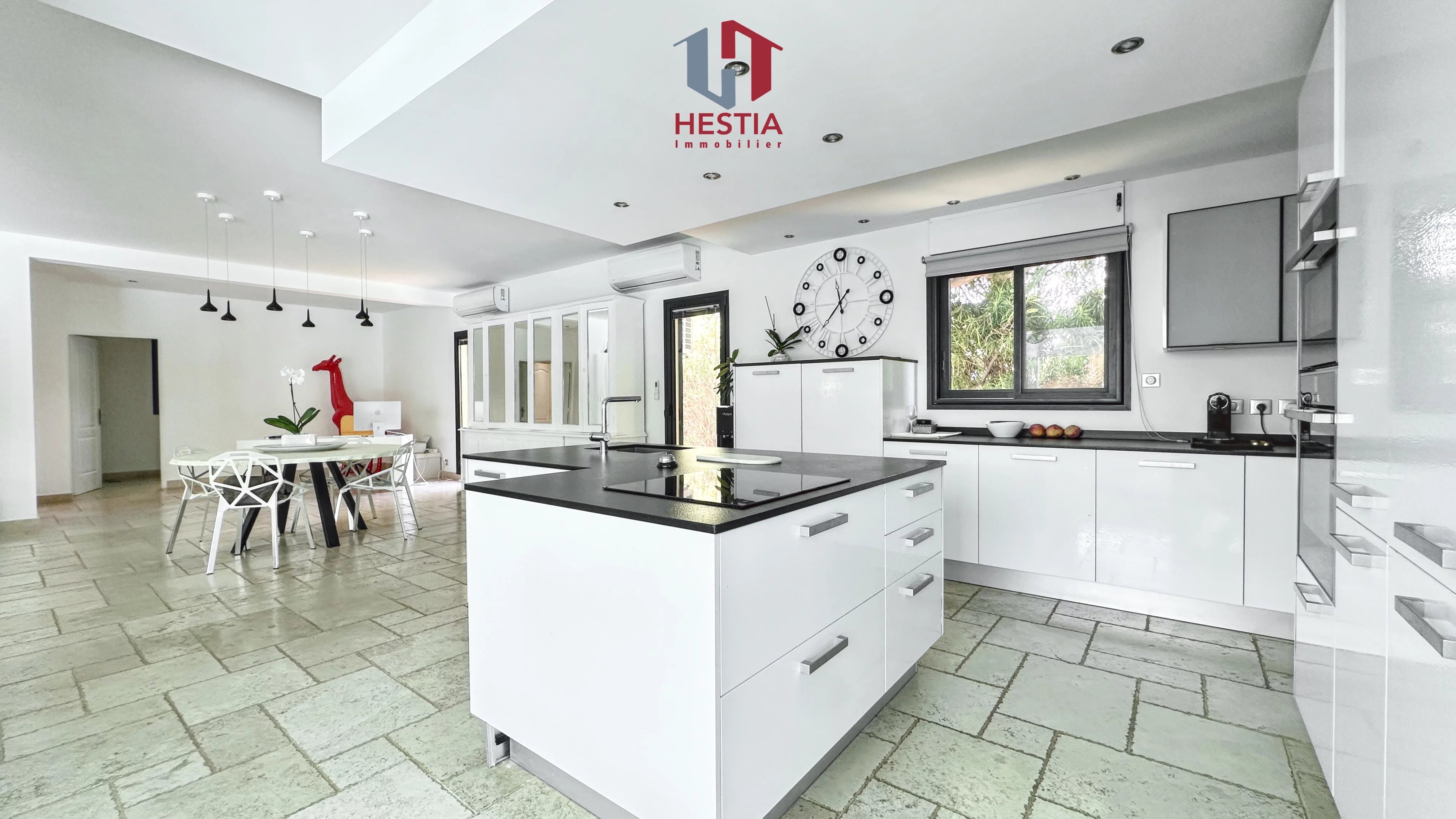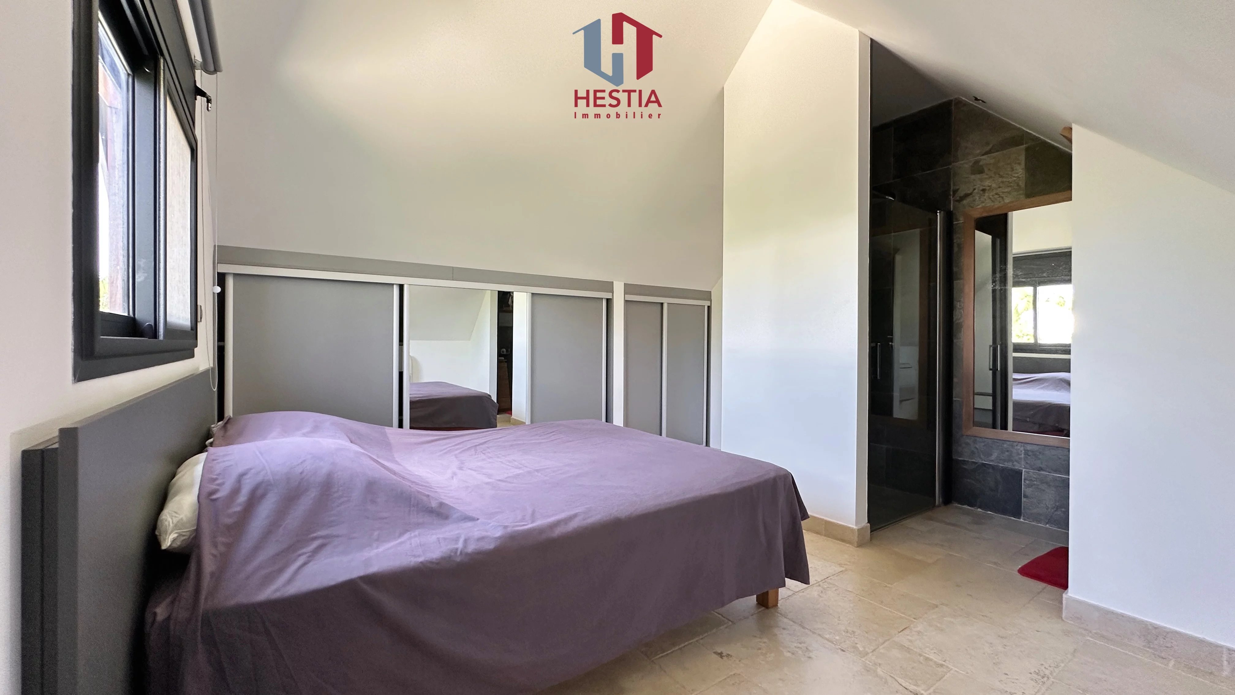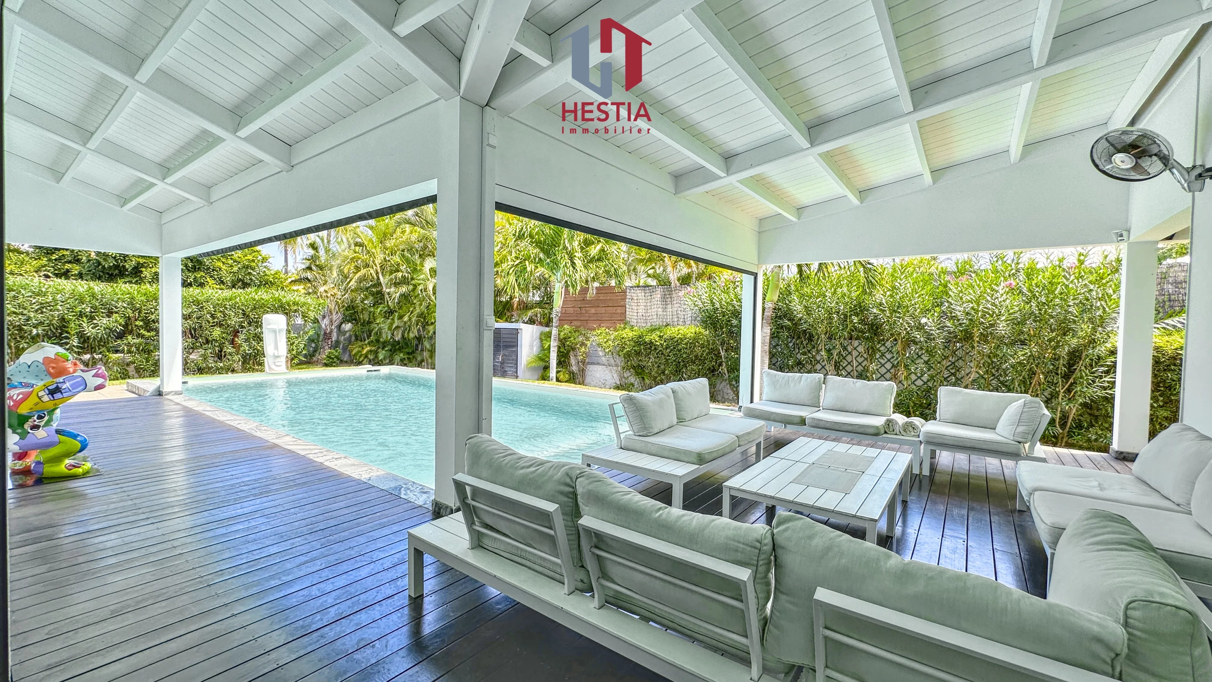 Hestia vous présente à seulement 2 mins à pied du lagon de l'hermitage cette somptueuse villa F4 de 188m2 sur un terrain arboré de plus de 900m2 avec prestations haut de gamme et sa grande piscine. La villa propose de beaux espaces lumineux, ouverts sur l’extérieur, avec au rez-de-chaussée un entrée, un wc séparé, un placard de rangement, un grand salon, une cuisine ouverte donnant sur la varangue, une buanderie, un bureau ainsi qu'une très grande suite parentale avec sa salle d'eau et son wc séparé. A l'étage deux autres chambres chacune disposant de sa salle d'eau et un wc séparé. La propriété bénéficie d’un jardin soigné, au calme et sans vis-à-vis et d'un carport pur stationner deux voitures. Bien rare sur le secteur, idéal pour une résidence principale ou secondaire. Contactez-nous pour plus d’informations ou pour organiser une visite.