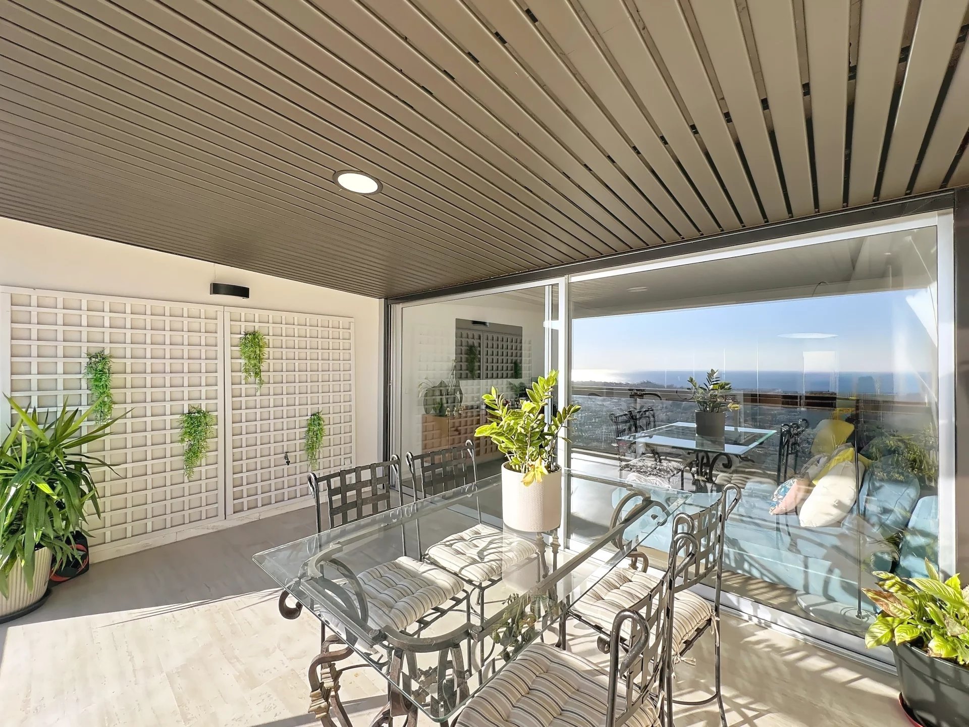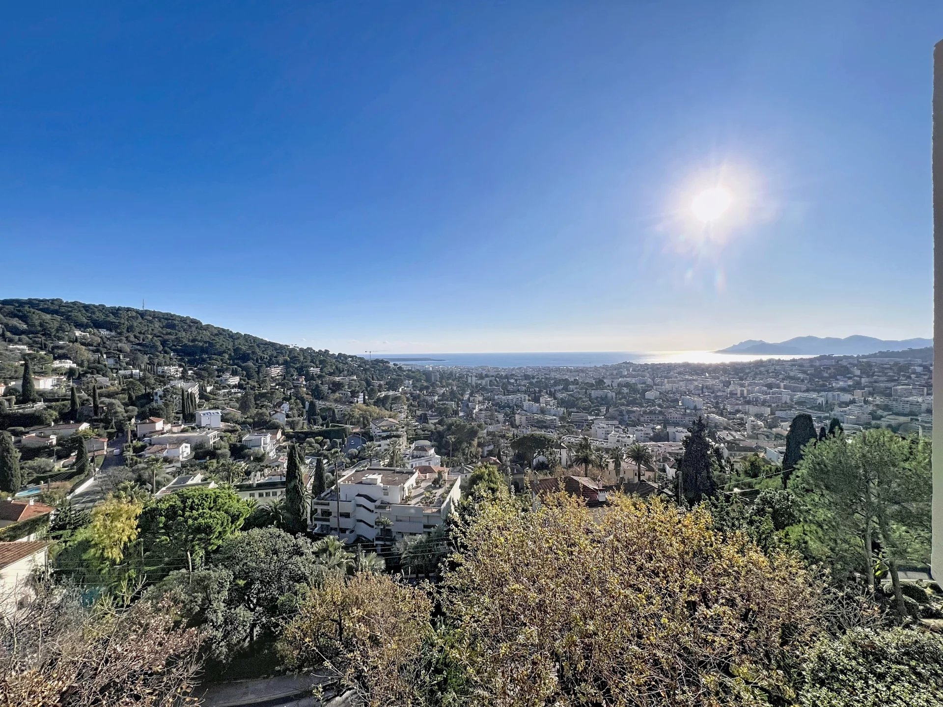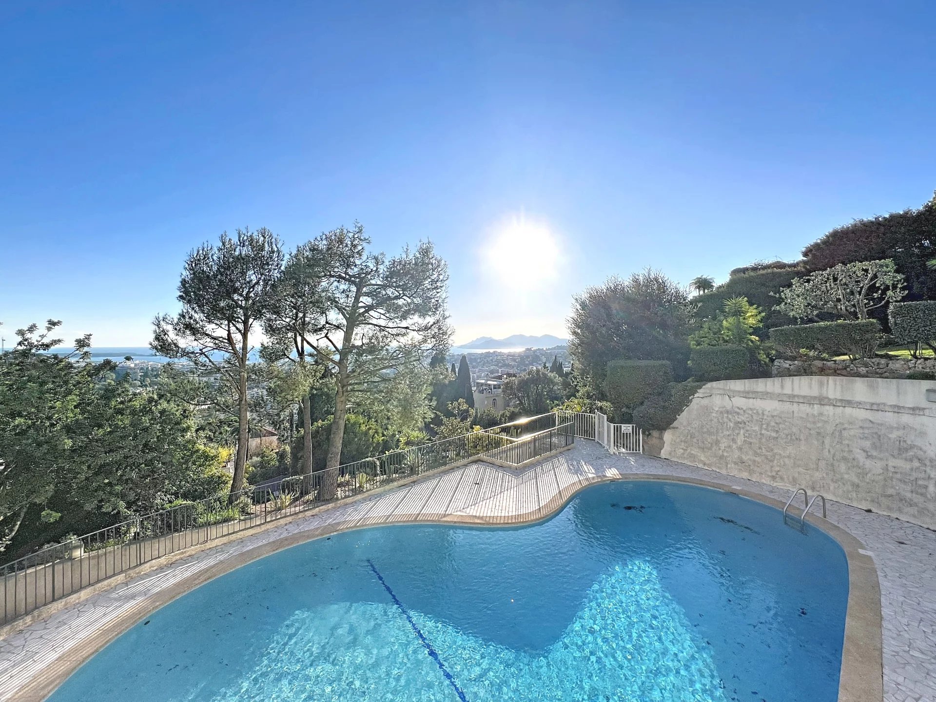 Situé dans le secteur résidentiel très recherché du Cannet, au sein d’une résidence fermée et sécurisée avec gardien et piscine, ce magnifique appartement 3 pièces en étage offre un cadre de vie privilégié, alliant calme absolu, prestations de qualité et vue exceptionnelle. L’appartement a été entièrement rénové, avec des finitions soignées et une décoration contemporaine, prêt à accueillir ses futurs occupants sans aucun travaux. Dès l’entrée, vous serez séduits par une belle entrée élégante menant à un séjour lumineux avec cuisine ouverte, l’ensemble s’ouvrant sur une profonde terrasse offrant une vue panoramique spectaculaire allant jusqu’à la mer. L’appartement est traversant, garantissant une luminosité optimale et une ventilation naturelle très agréable. L’espace nuit se compose de deux chambres, chacune disposant de son propre point d’eau, offrant confort et intimité, idéal pour une résidence principale, secondaire ou pour recevoir. Les volumes sont parfaitement optimisés pour un confort de vie au quotidien. Un garage et une cave viennent compléter ce bien, apportant des solutions de stationnement et de rangement appréciables dans ce secteur prisé. Le Cannet résidentiel est reconnu pour sa qualité de vie et son ambiance paisible, tout en restant à proximité immédiate de toutes les commodités. À quelques minutes, vous trouverez la Mairie du Cannet, des commerces de proximité, supermarchés, restaurants, ainsi que de nombreuses écoles, collèges et lycées. Les transports en commun desservent efficacement Cannes, le centre-ville, la gare et les plages, tandis que les axes routiers principaux permettent un accès rapide vers l’autoroute et les bassins d’activité environnants.