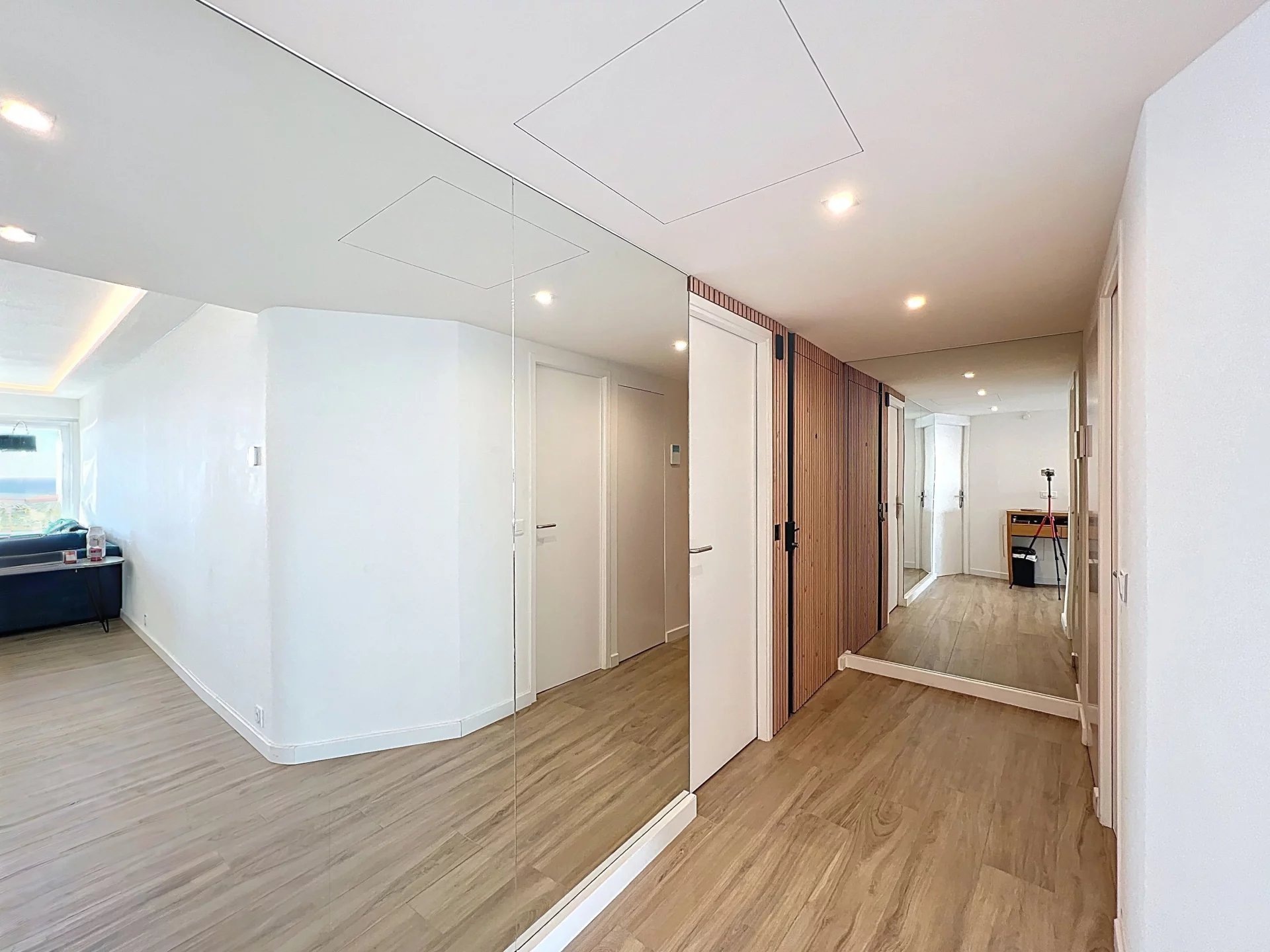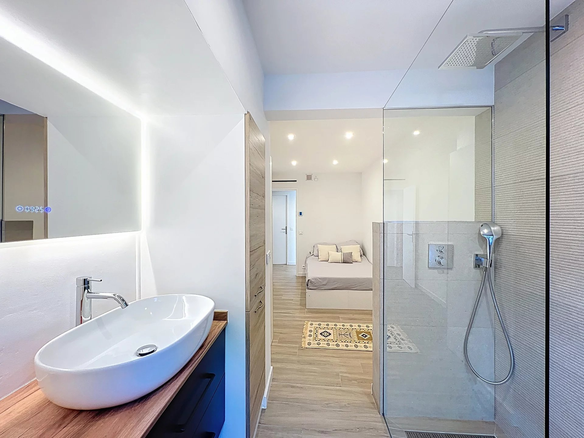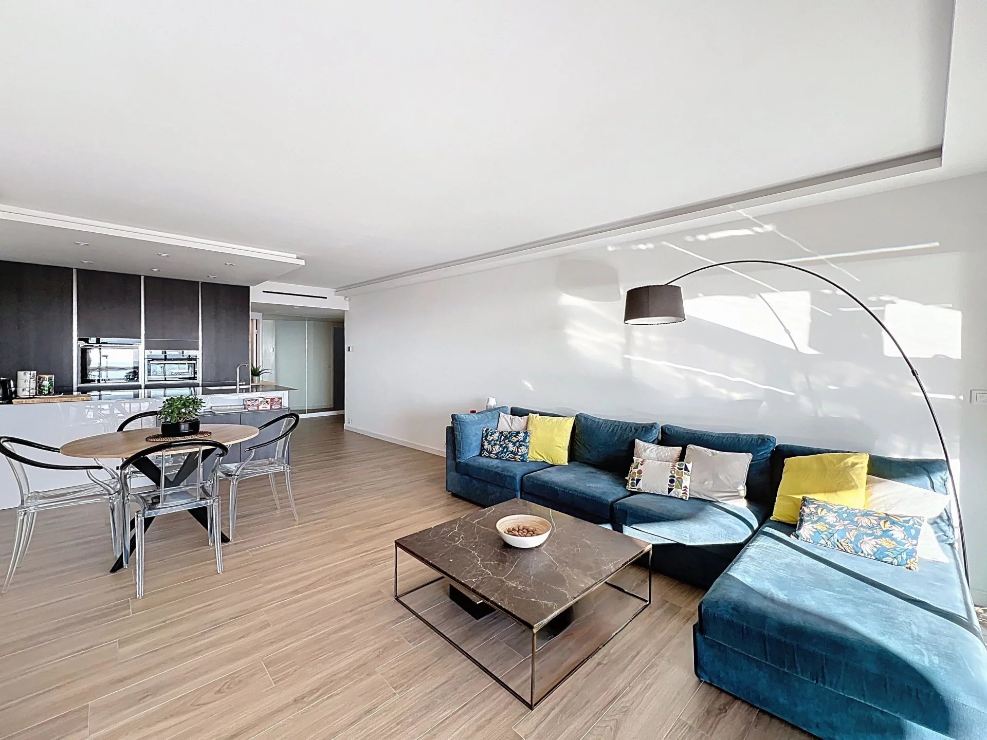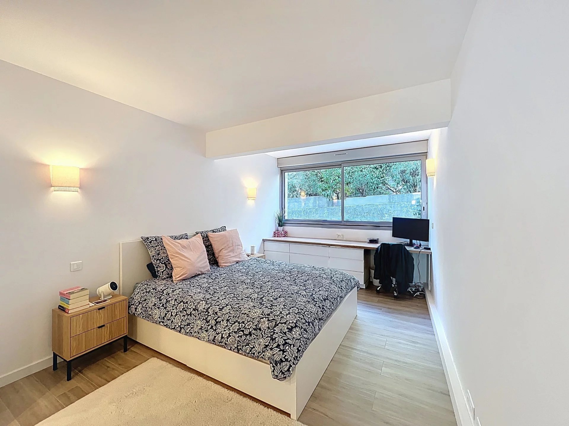 Situé dans le secteur résidentiel très recherché du Cannet, au sein d’une résidence fermée et sécurisée avec gardien et piscine, ce magnifique appartement 3 pièces en étage offre un cadre de vie privilégié, alliant calme absolu, prestations de qualité et vue exceptionnelle. L’appartement a été entièrement rénové, avec des finitions soignées et une décoration contemporaine, prêt à accueillir ses futurs occupants sans aucun travaux. Dès l’entrée, vous serez séduits par une belle entrée élégante menant à un séjour lumineux avec cuisine ouverte, l’ensemble s’ouvrant sur une profonde terrasse offrant une vue panoramique spectaculaire allant jusqu’à la mer. L’appartement est traversant, garantissant une luminosité optimale et une ventilation naturelle très agréable. L’espace nuit se compose de deux chambres, chacune disposant de son propre point d’eau, offrant confort et intimité, idéal pour une résidence principale, secondaire ou pour recevoir. Les volumes sont parfaitement optimisés pour un confort de vie au quotidien. Un garage et une cave viennent compléter ce bien, apportant des solutions de stationnement et de rangement appréciables dans ce secteur prisé. Le Cannet résidentiel est reconnu pour sa qualité de vie et son ambiance paisible, tout en restant à proximité immédiate de toutes les commodités. À quelques minutes, vous trouverez la Mairie du Cannet, des commerces de proximité, supermarchés, restaurants, ainsi que de nombreuses écoles, collèges et lycées. Les transports en commun desservent efficacement Cannes, le centre-ville, la gare et les plages, tandis que les axes routiers principaux permettent un accès rapide vers l’autoroute et les bassins d’activité environnants.