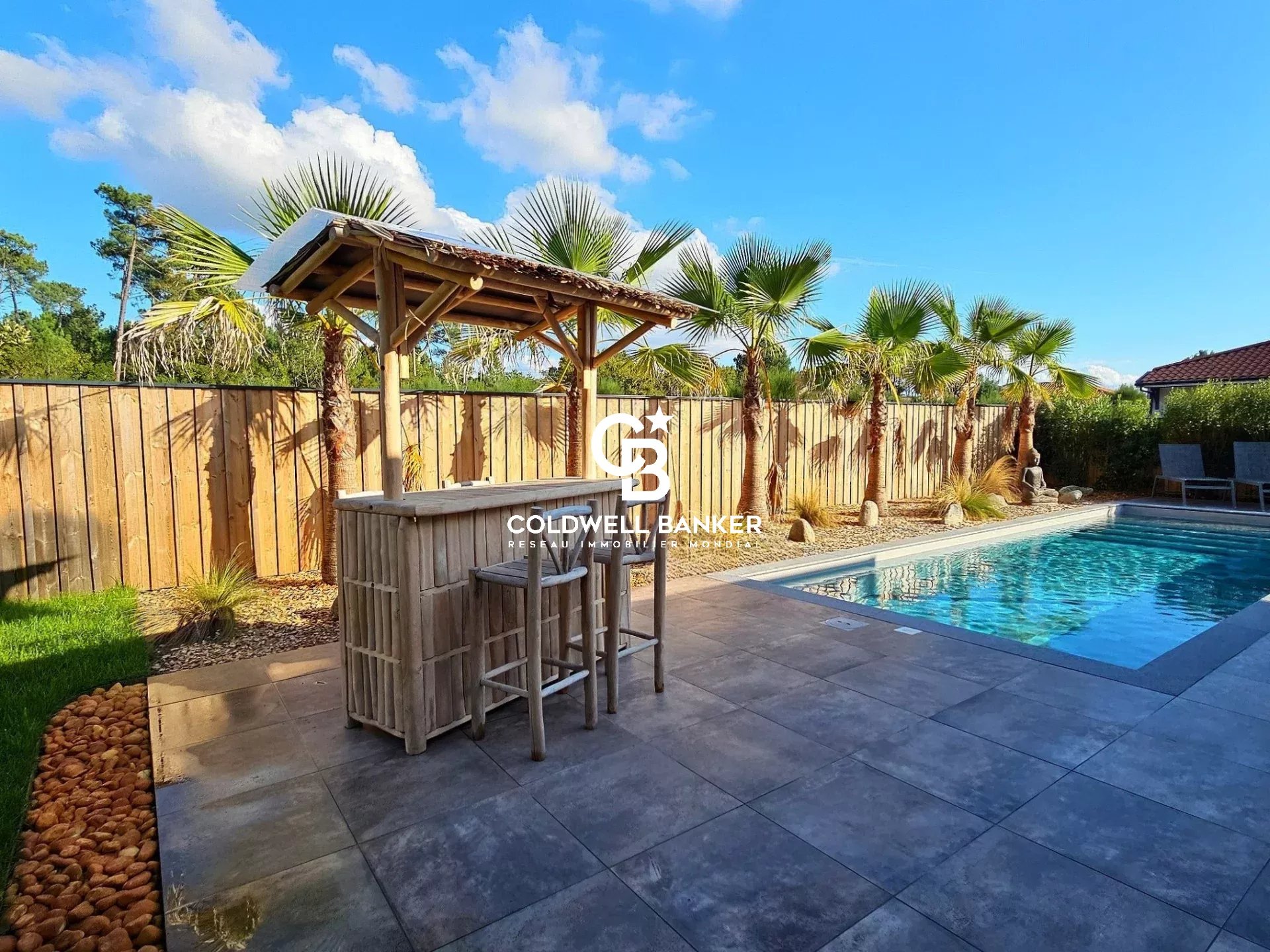 EXCLUSIVITE - Coldwell Banker Immoba Realty Agence Immobilière, vous présente, à BISCARROSSE-BOURG : Dans un cadre paisible et verdoyant, découvrez cette maison contemporaine de plain-pied de 2022, où chaque détail a été pensé pour conjuguer confort et modernité. Sa belle pièce de vie lumineuse profite d’une double exposition et s’ouvre harmonieusement sur l’extérieur, offrant un espace chaleureux et convivial. Elle dispose de 4 chambres et 3 salles d'eau, idéales pour accueillir famille et amis en toute intimité. À l’extérieur, vous profiterez d’une piscine chauffée pour prolonger la saison des baignades, et d’un jardin paysager facile à entretenir. Pratique et écoresponsable, la maison est également équipée d’une borne pour véhicule électrique, de panneaux photovoltaïques, d'un puits foré et d'un arrosage automatique programmable. Enfin, elle dispose d'un spa pour des instants de détente en toute saison. Maison prête à vivre, aucun travaux n'est à prévoir, tout a été pensé pour le confort immédiat de ses occupants, en toute sérénité. Une belle opportunité de maison familiale clés en mains, parfaitement adaptée aussi bien pour une résidence principale que secondaire. Possibilité de la conserver meublée, pour un projet facilité. À visiter sans tarder : une alliance parfaite entre confort moderne et art de vivre au naturel. Contactez : Stéphanie GUEBEL Agent Commercial Indépendant RSAC 892 794 124 - RCP 127 100 479 DPE A (45 kWhEP/m2.an), GES A (1 kgéqCO2/m2.an) Estimation des coûts annuel d'énergie : 360-520 € Honoraires à la charge du vendeur. Retrouvez tous nos biens sur IMMOBA. Les informations sur les risques auxquels ce bien est exposé sont disponibles sur demande ou sur le site Géorisques : www.georisques.gouv.fr