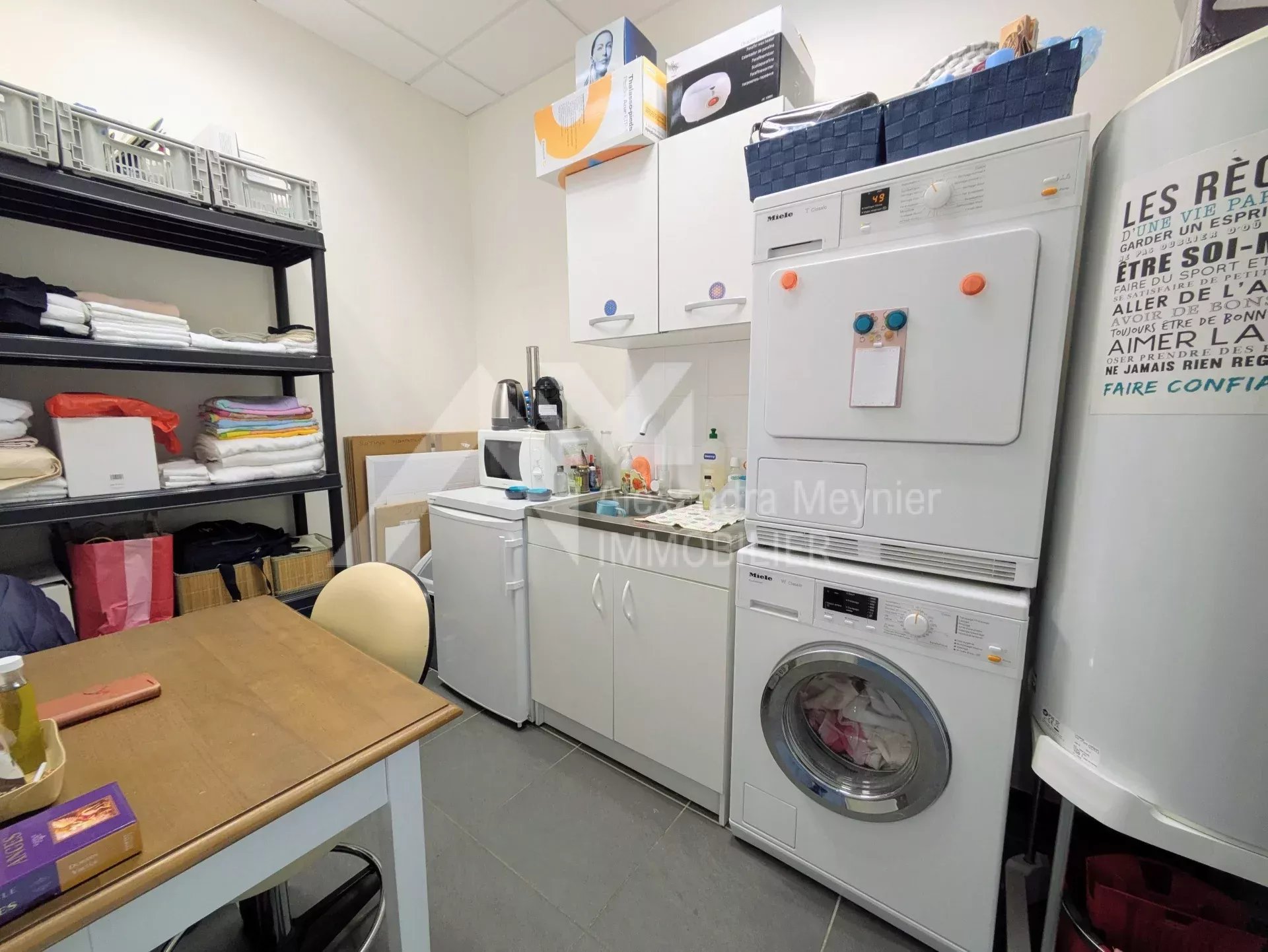Une première cabine de soins équipée d’une douche et d’un évier et une seconde cabine de soins avec évier. Un espace buanderie et cuisine.