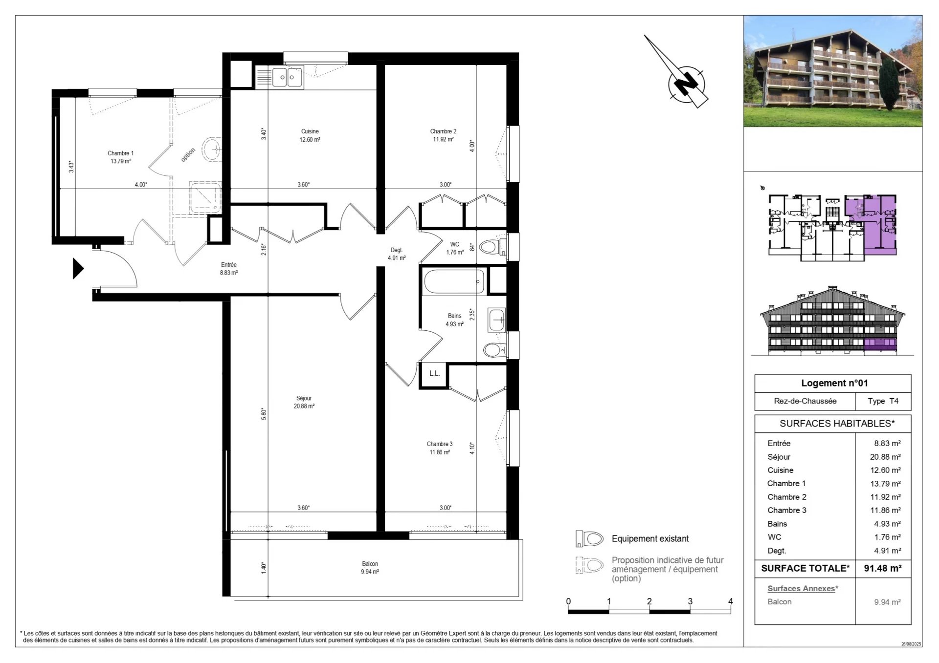 Cet appartement situé au rez-de-chaussée, se compose comme suit: Une grande entrée de 8.83 m2, une première chambre de 13.79 m2, une cuisine séparé de 12.60 m2, une deuxième chambre de 11.92 m2, une troisième chambre 11.86 m2 ouvert sur le balcon, une salle de bain de 4.93 m2 et un WC séparé de 1.76 m2. Une grande pièce de vie de 20.59 m2 ouverte sur un balcon de 9.94 m2.