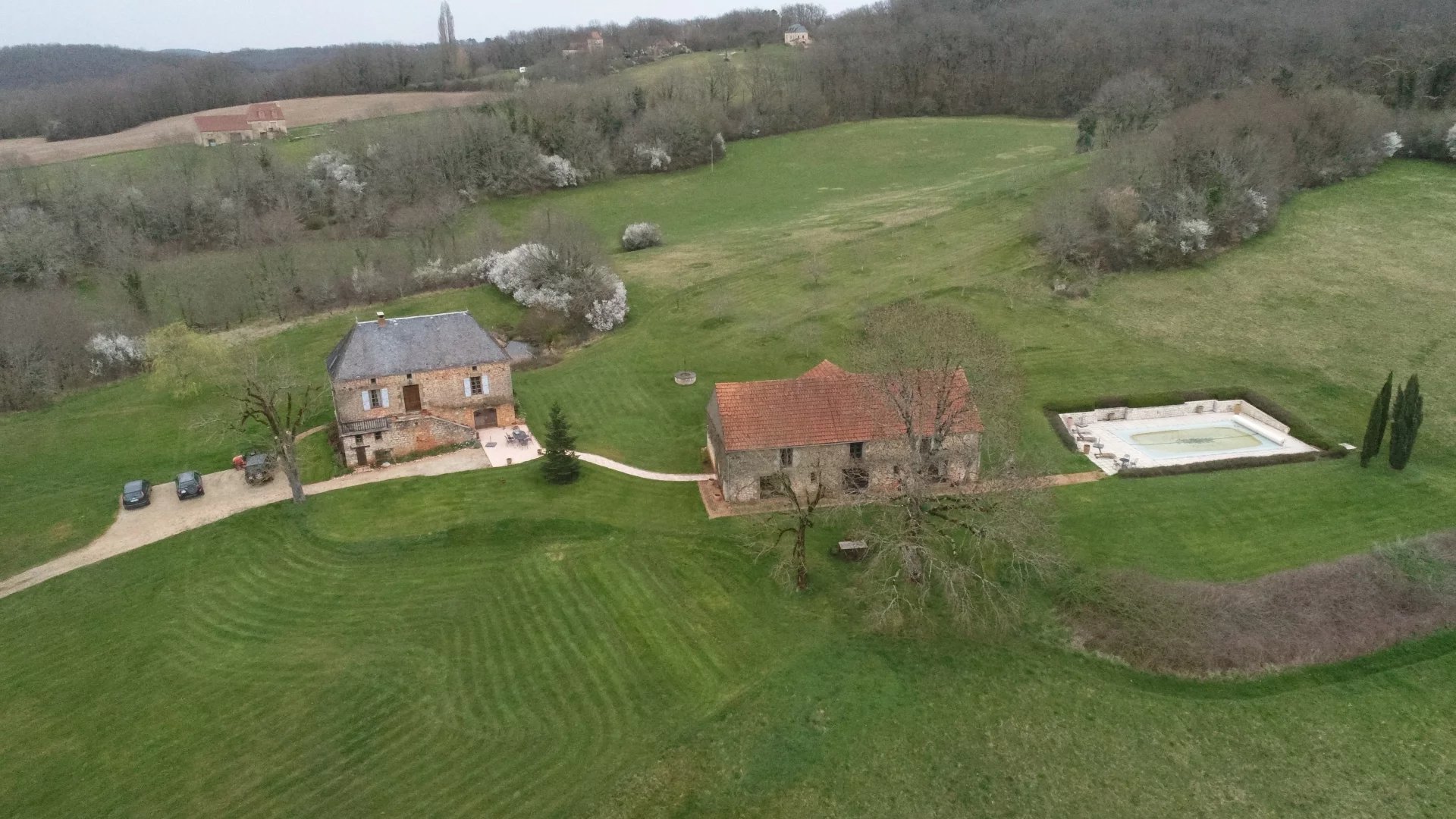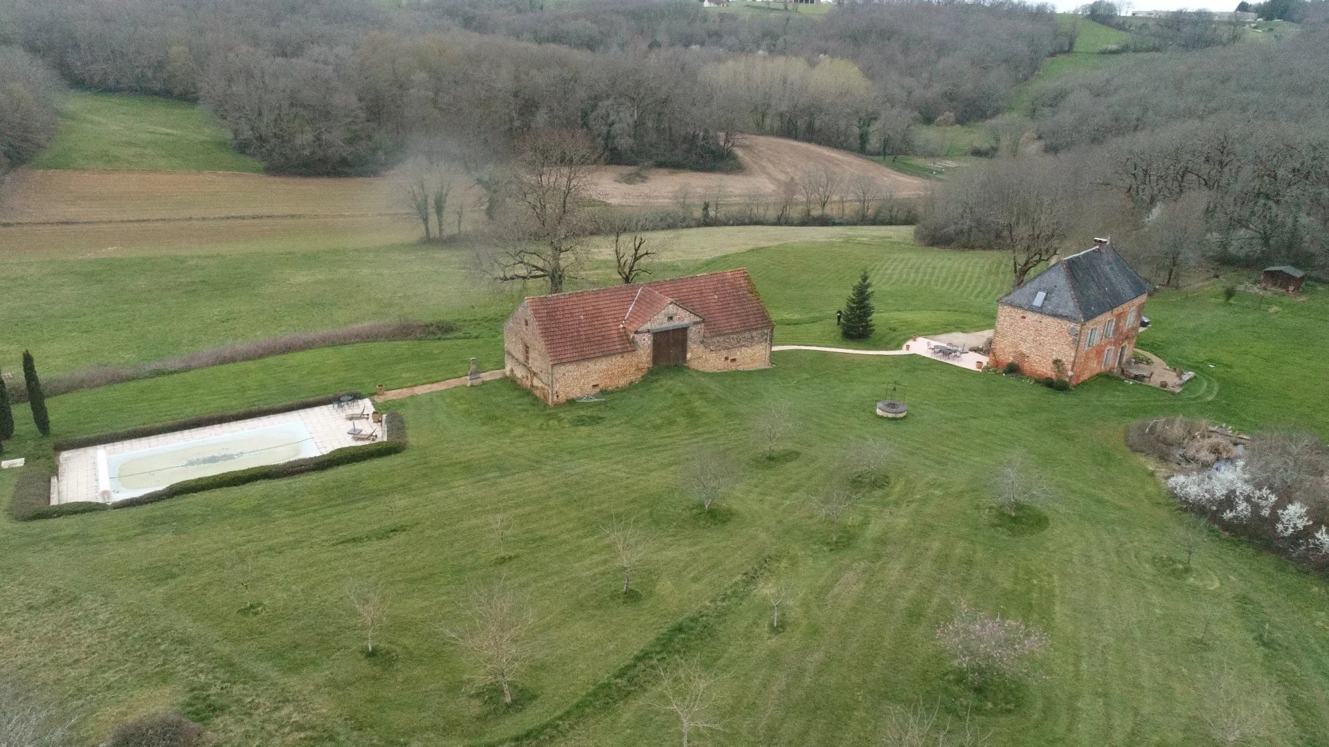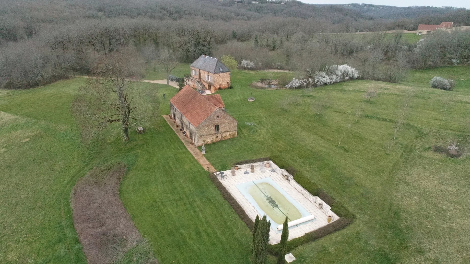 Au cœur de 12 hectares de nature, dans un environnement paisible, préservé et sans nuisance, cette superbe propriété de caractère séduit par son authenticité, ses volumes généreux et son fort potentiel d’accueil. La maison principale propose une organisation à la fois chaleureuse et fonctionnelle. Dès le rez-de-chaussée, vous découvrirez une cuisine équipée ouverte sur un vaste séjour lumineux, avec accès direct aux terrasses à l’avant et à l’arrière, ainsi qu’une buanderie/cellier et des toilettes. À l’étage, un agréable salon avec cheminée dessert deux chambres, dont une disposant de sa propre salle d’eau avec toilettes. Le dernier niveau accueille une spacieuse suite parentale, offrant un espace intime avec salle de bains et toilettes. Le gîte indépendant constitue un véritable atout pour un projet d’accueil touristique ou familial. Il comprend en rez-de-chaussée un grand espace de vie avec cuisine, trois chambres, dont une suite parentale, ainsi qu’une salle de bains. À l’étage, accessible de plain-pied par l’arrière, un vaste volume supplémentaire laisse envisager de nombreuses possibilités : création d’un second gîte, espace de réception, atelier ou zone de stockage importante. L’ensemble a conservé tout le charme de l’ancien avec de très beaux éléments d’origine : sols en terre cuite, cheminées, ambiance authentique et chaleureuse. À l’extérieur, les lieux sont parfaitement aménagés pour profiter pleinement du cadre : piscine 12 x 6 m, abri de jardin, jolie mare et vastes espaces naturels composent un environnement rare, propice au calme et à la détente. Une propriété pleine de charme, idéale pour une résidence principale ou secondaire, un projet de gîtes ou une activité d’accueil touristique, dans un cadre bucolique offrant une tranquillité absolue.