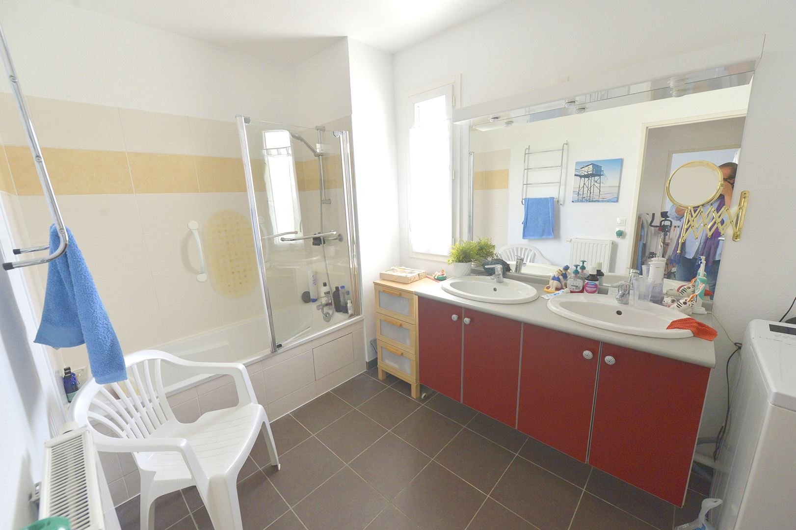 Royan - Maison individuelle de deux étages située dans un quartier résidentiel calme. Elle comprend un séjour avec cuisine ouverte, un grand WC et un espace de rangement sous l'escalier.
