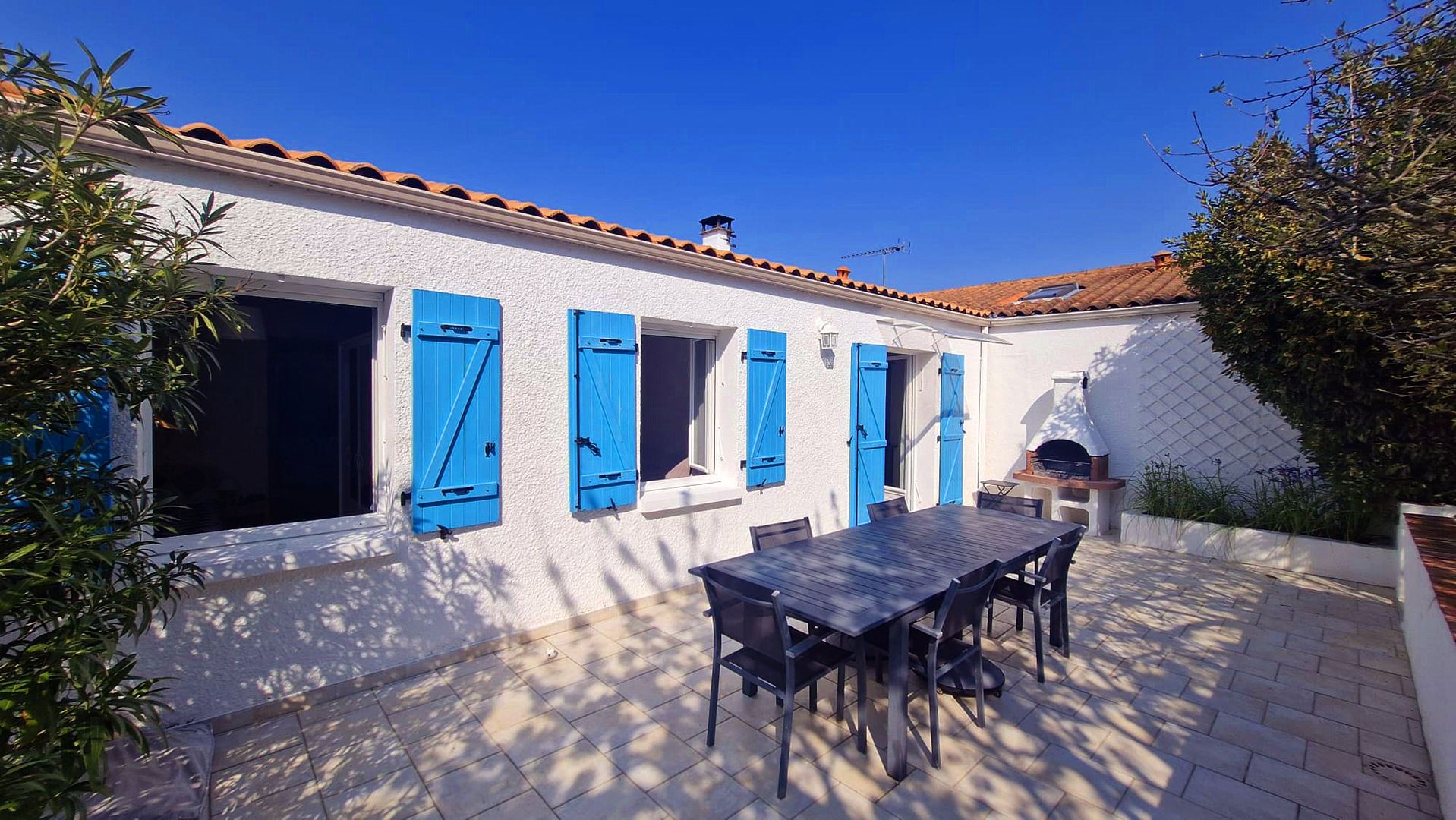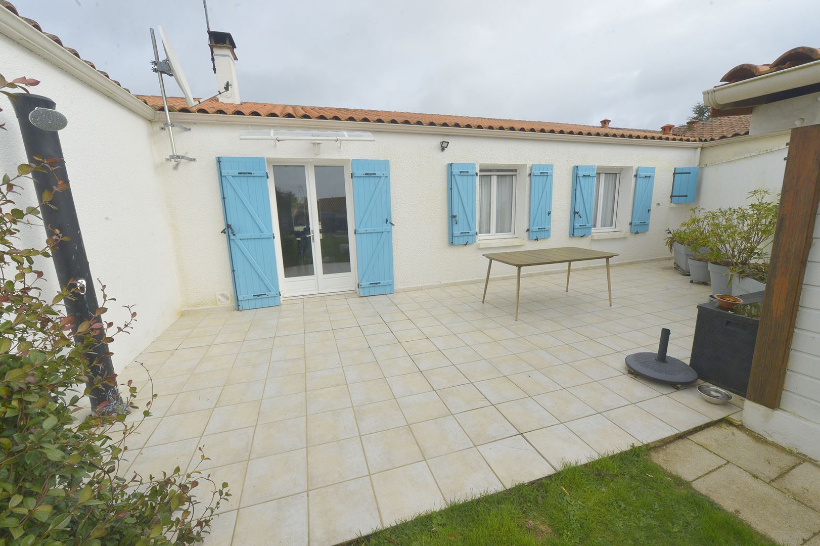 Saint-Georges-de-Didonne - Maison familiale de plain-pied d'environ 100 m² sur une parcelle close et arborée d'environ 508 m². Vous disposez d'un joli séjour traversant donnant sur 2 très belles terrasses, exposée Est pour l'une et exposée à Ouest pour l'autre, une cuisine indépendante, de 3 chambres, une salle d'eau avec douche, baignoire et buanderie, une toilette indépendante et un joli séjour traversant donnant sur 2 très belles terrasses, exposé est pour l'une et exposé à l'ouest pour l'autre. C'est une maison lumineuse située dans un quartier calme et résidentiel. Il y a un grand cabanon de jardin. Le terrain est piscinable. Vous trouverez 3 places de stationnement sur la parcelle. Le bien est situé non loin des plages et des commodités.