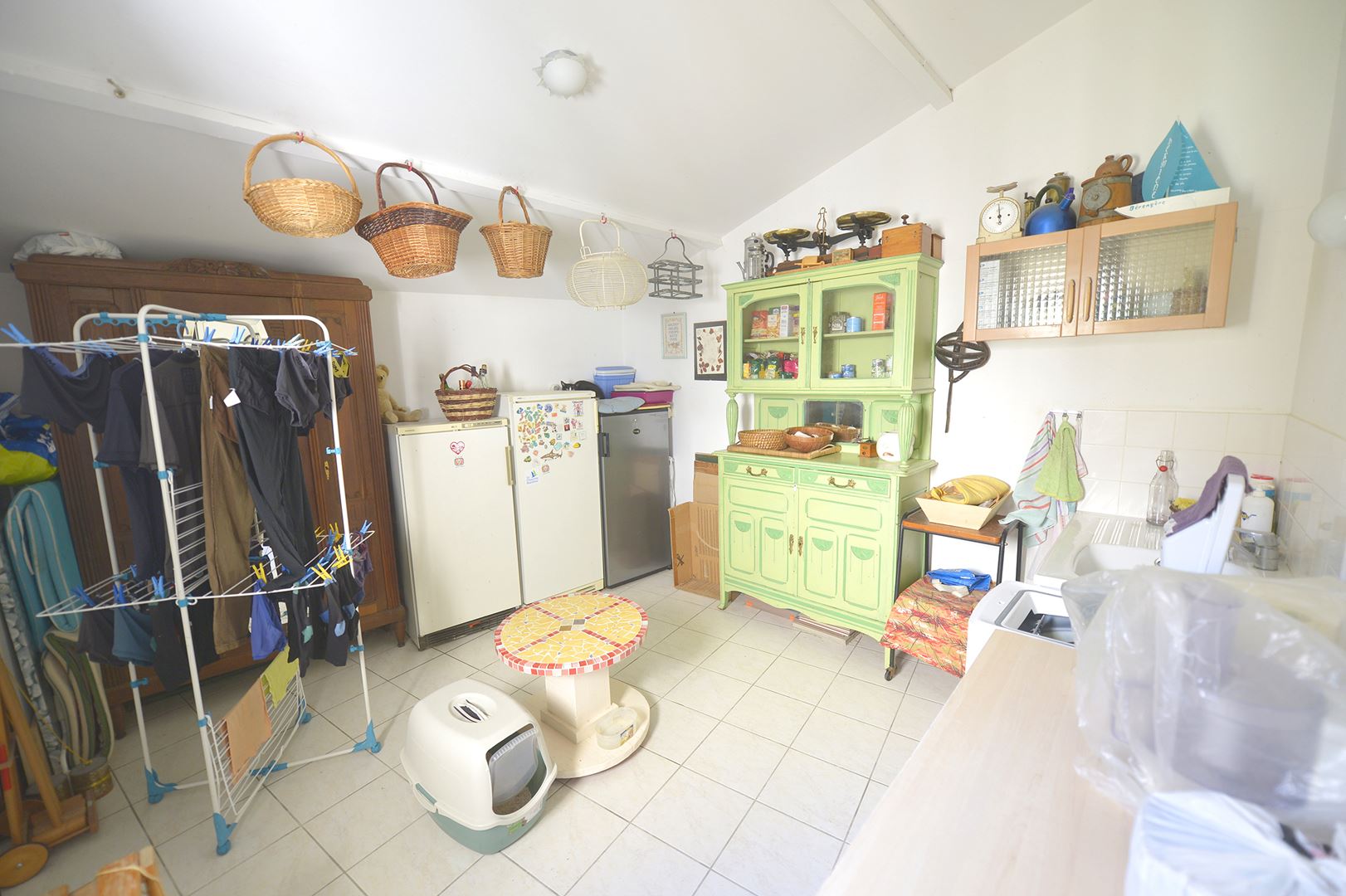 La cuisine aménagée et équipée, complète harmonieusement cet espace chaleureux et fonctionnel.