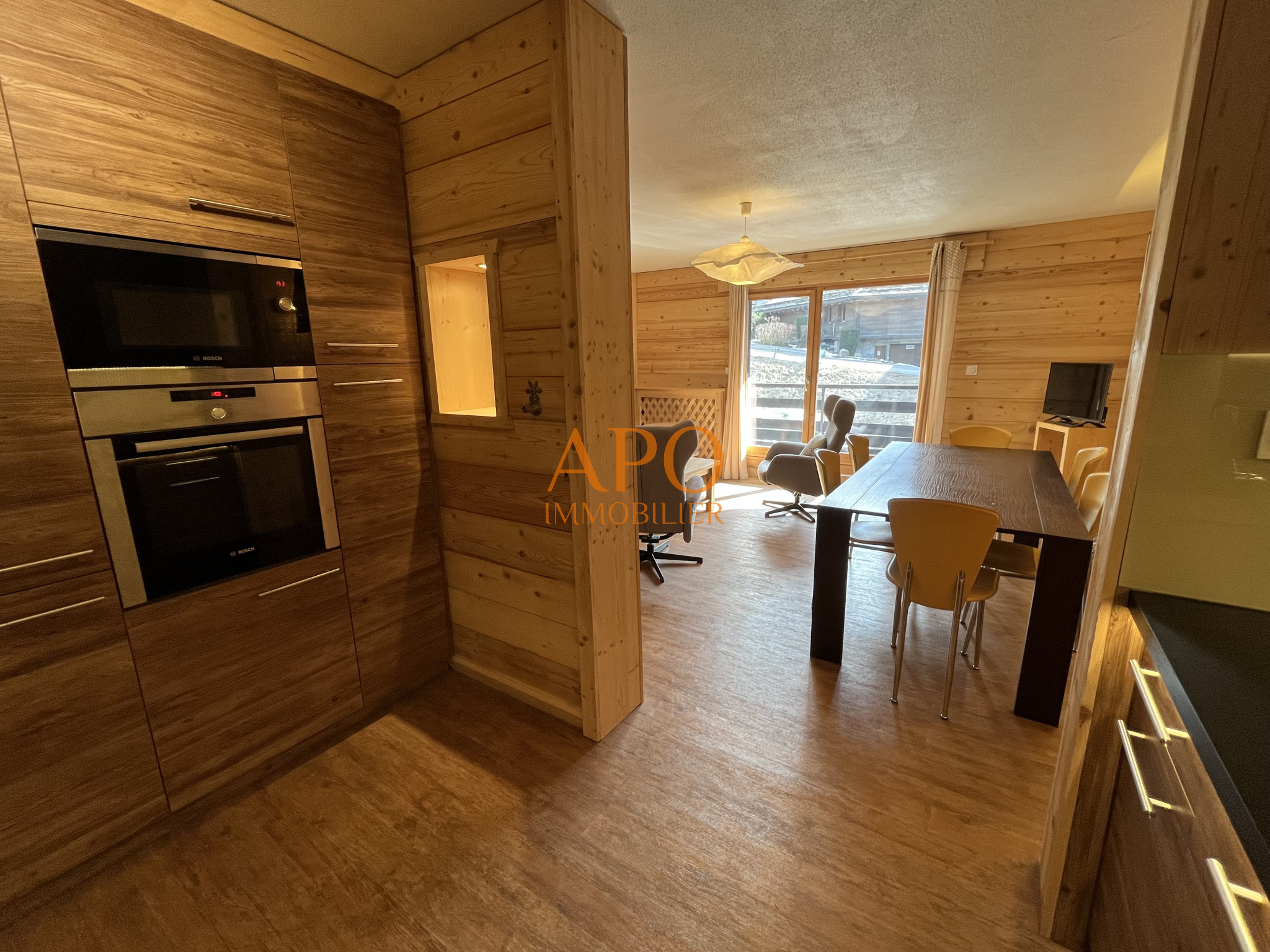 Cet appartement qui est vendu entièrement meublé et équipé se trouve à proximité immédiate d'un arrêt de ski-bus et à pied de toute commodité du village tout en étant au calme.